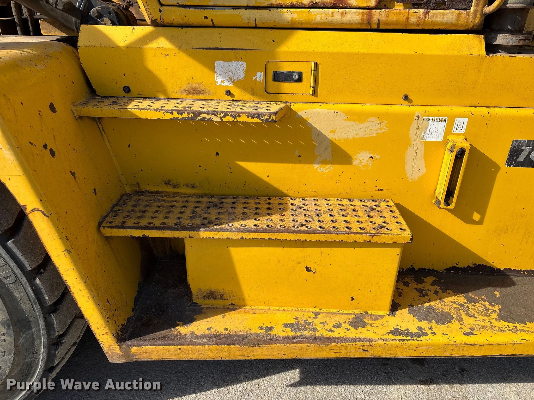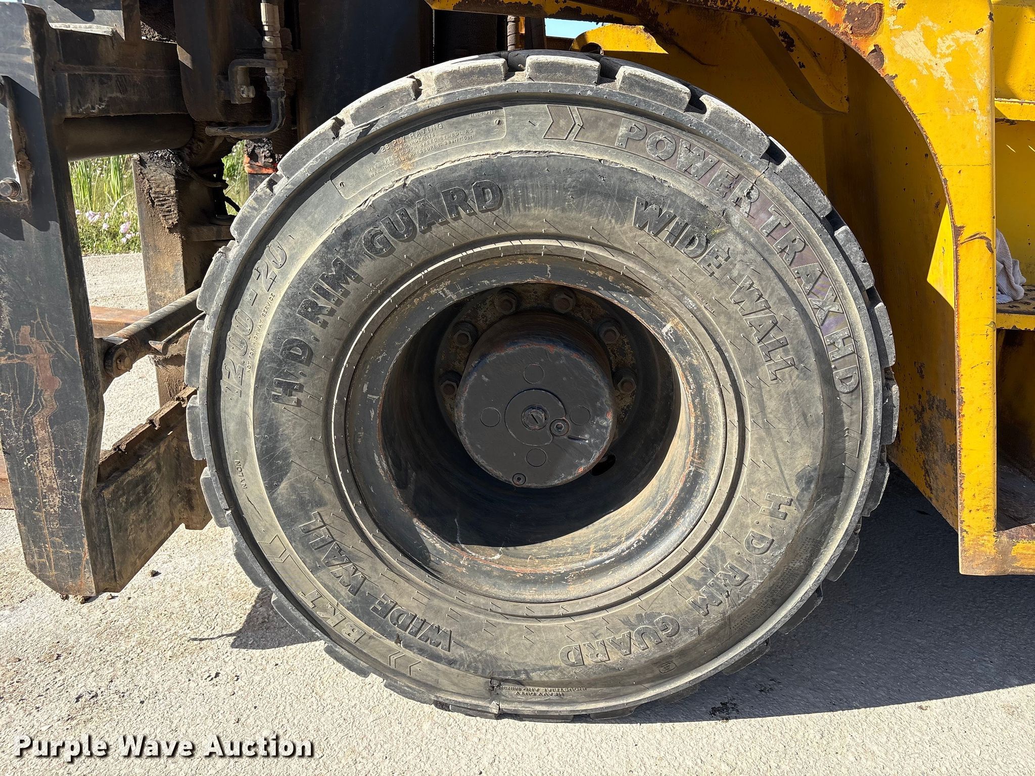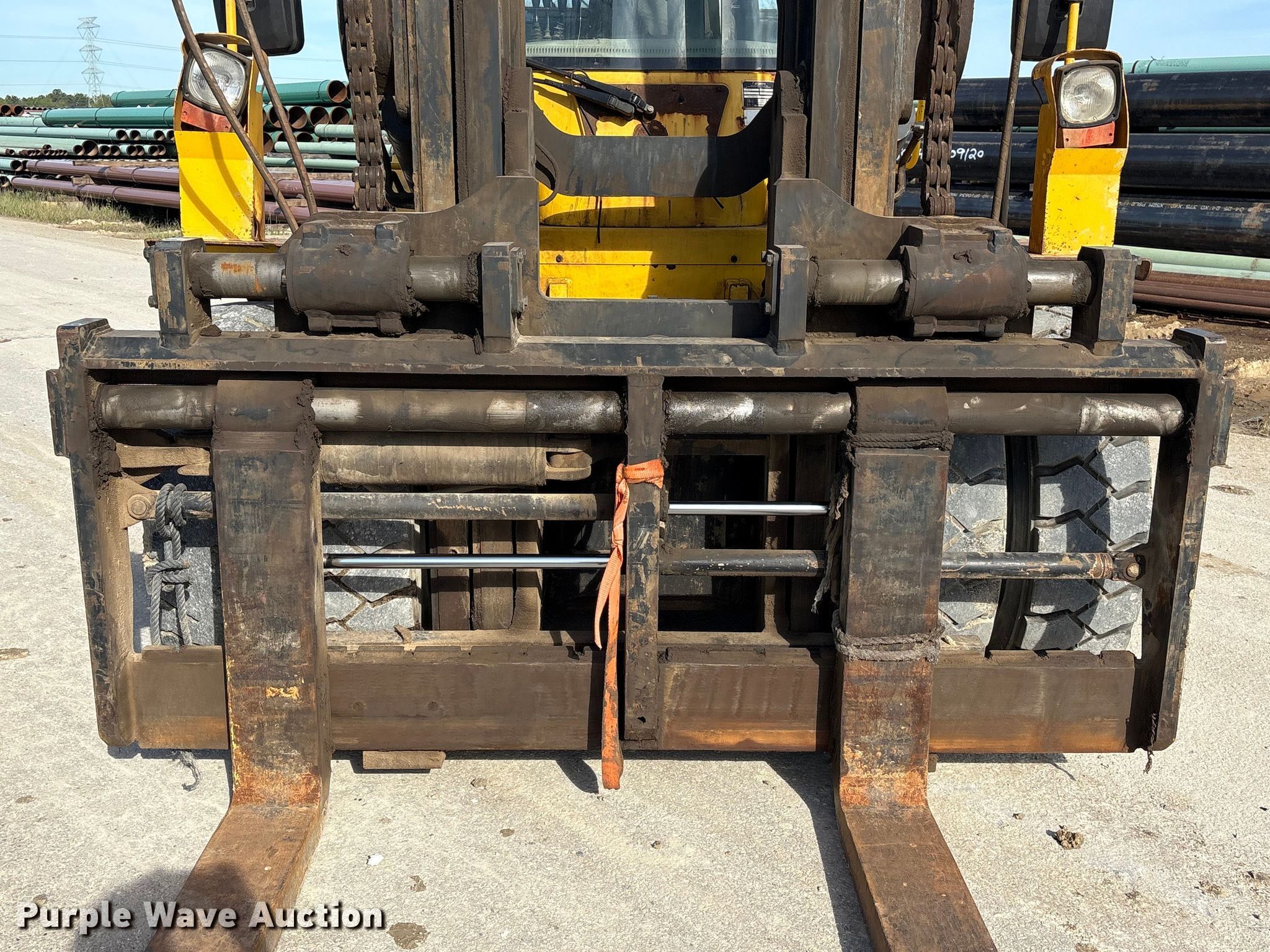 Hyundai 160D-7E forklift. Serial: HHIHFT08VB0000469. Engine Cummins QSB6.7, Serial: 73304715, Displacement: 6.7, Cylinders: 6, Fuel type: Diesel. Transmission Powershift, 3F - 3R. Operators station Enclosed cab, AC, Heat. Features Maximum lift height: 157", Collapsed mast height: 148", Mast stages: 2, Fork length: 90". Tires Size: 12.00-20. Notes Glass cracked, Non-operational cluster, Hydraulic issues, Non-operational HVAC. Jindal Saw USA, LLC. Baytown, TX 77523