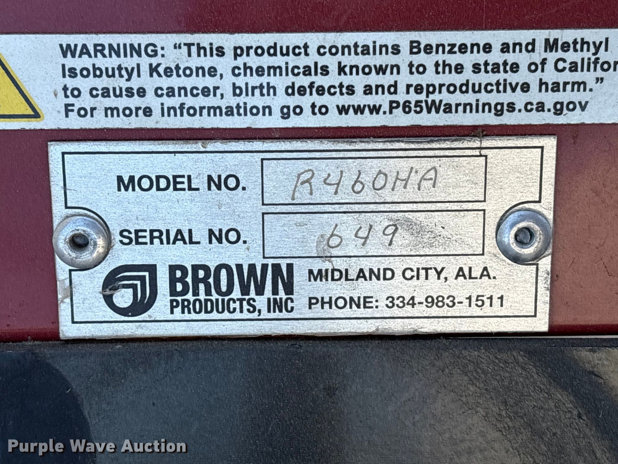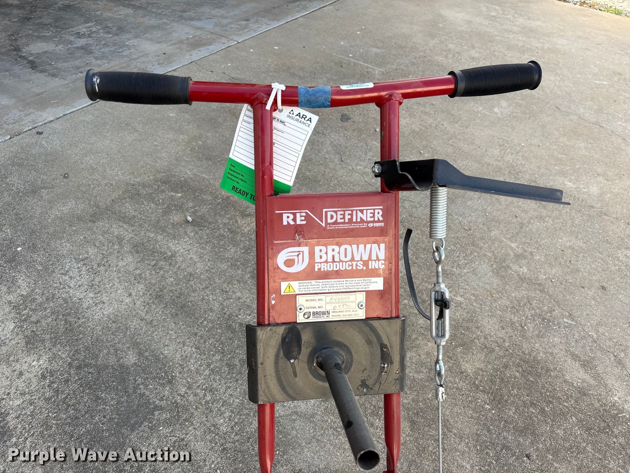 Purple Wave is selling a used Lawn and Garden in Alabama. This item is a Brown Redefiner R460HA trencher with the following: Serial: 649, Unit #: 23572