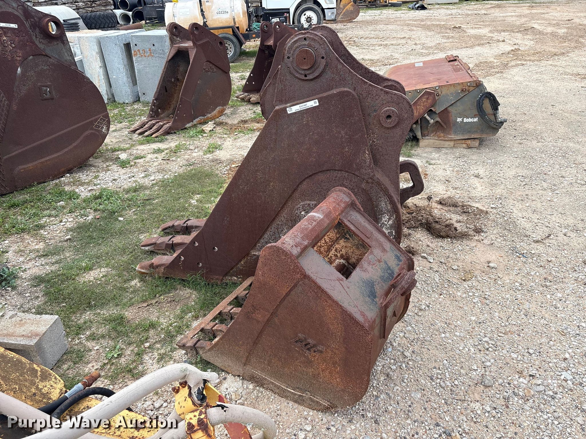 Purple Wave is selling a used Bucket or Loader Attach. in Texas. This item is a (3) buckets with the following: (2) backhoe buckets, Widths:, 24", 18",, Excavator bucket, Width: 26"