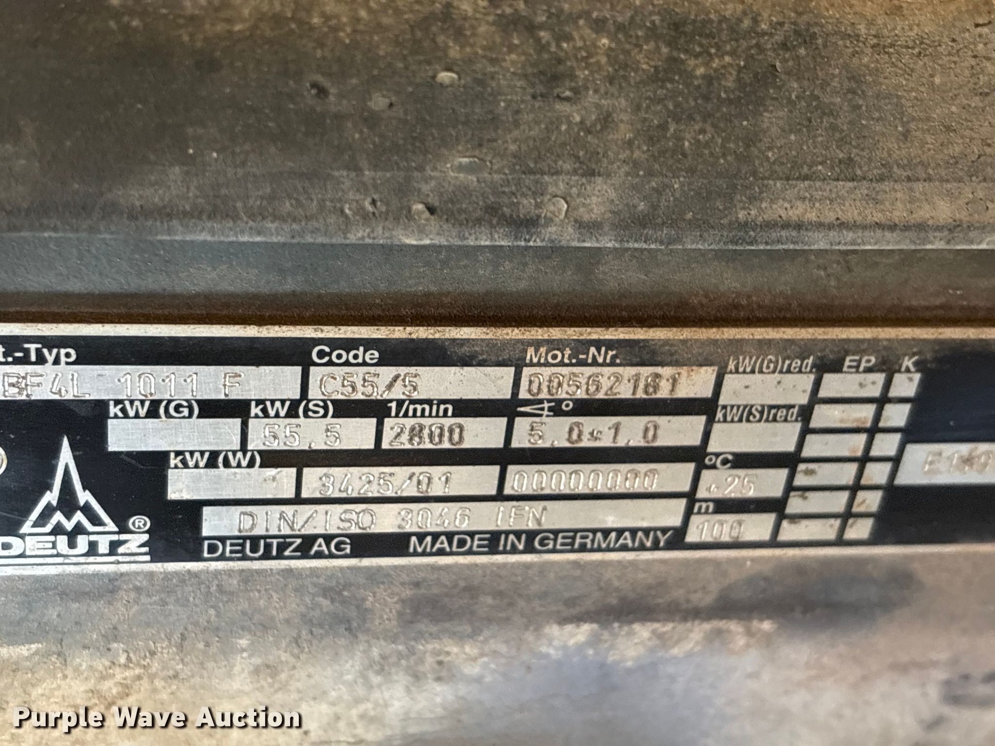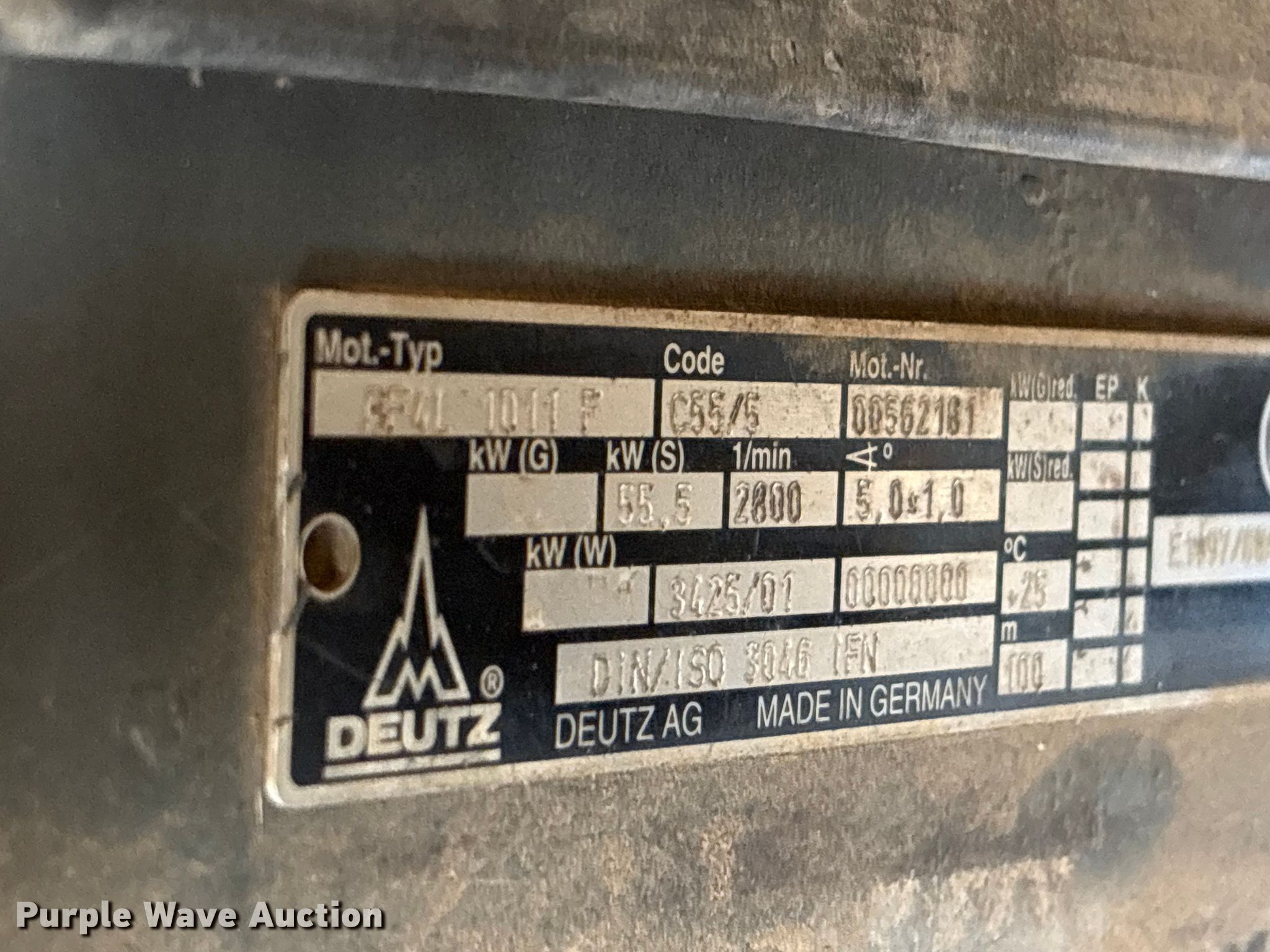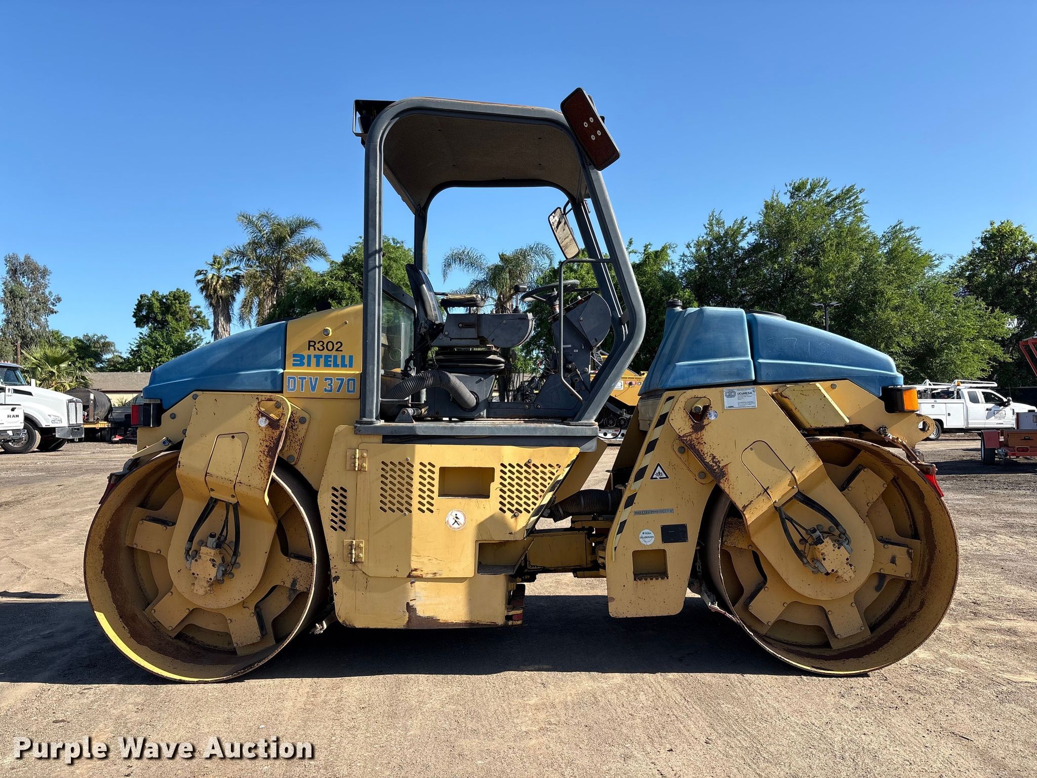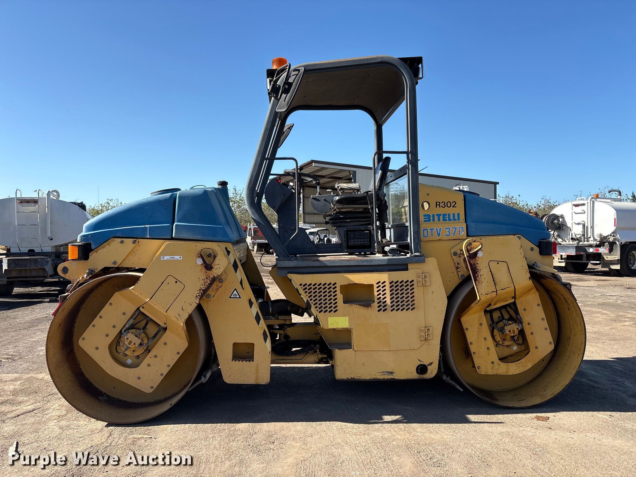 2001 Bitelli DTV 370 double drum vibratory roller. Hours: 2,649 on meter, Serial: 099010026. Engine Deutz DF4L1011T, Cylinders: 4, Fuel type: Diesel, HP: 75, kW: 55. Transmission Hydrostatic. Operators station OROPS. Features Drum type: Smooth, Vibratory system: Double, Front drum Width: 59", Diameter: 44", Rear drum Width: 59", Diameter: 44", Drum scrapers: Front, Rear, Water spray applicator: Front, Dual propel system. Hughson, CA 95326