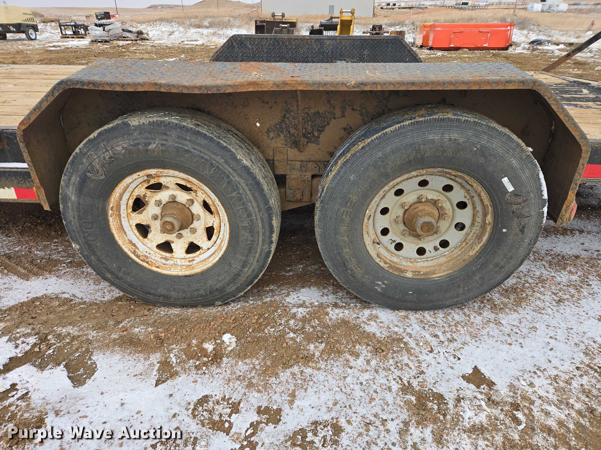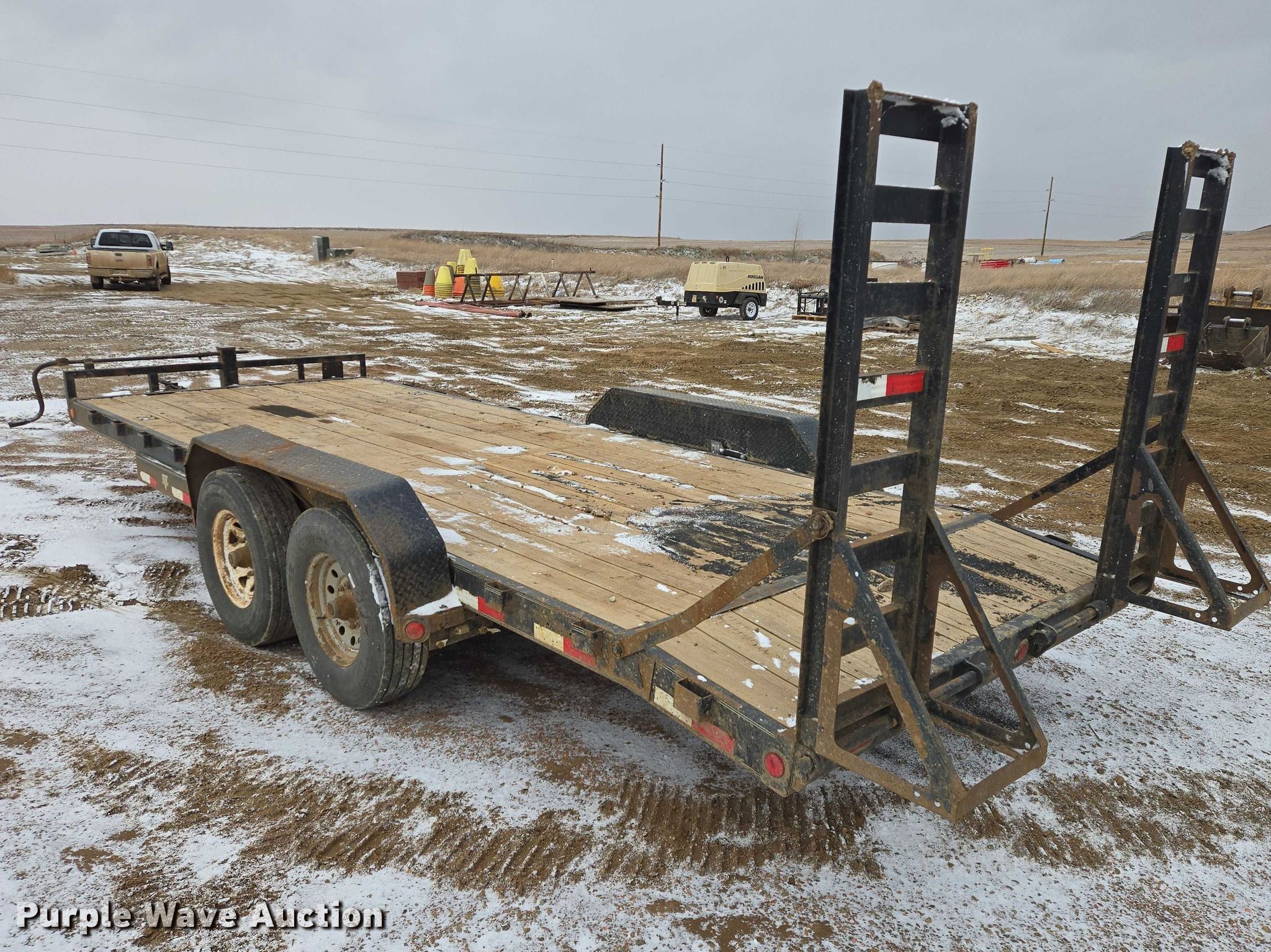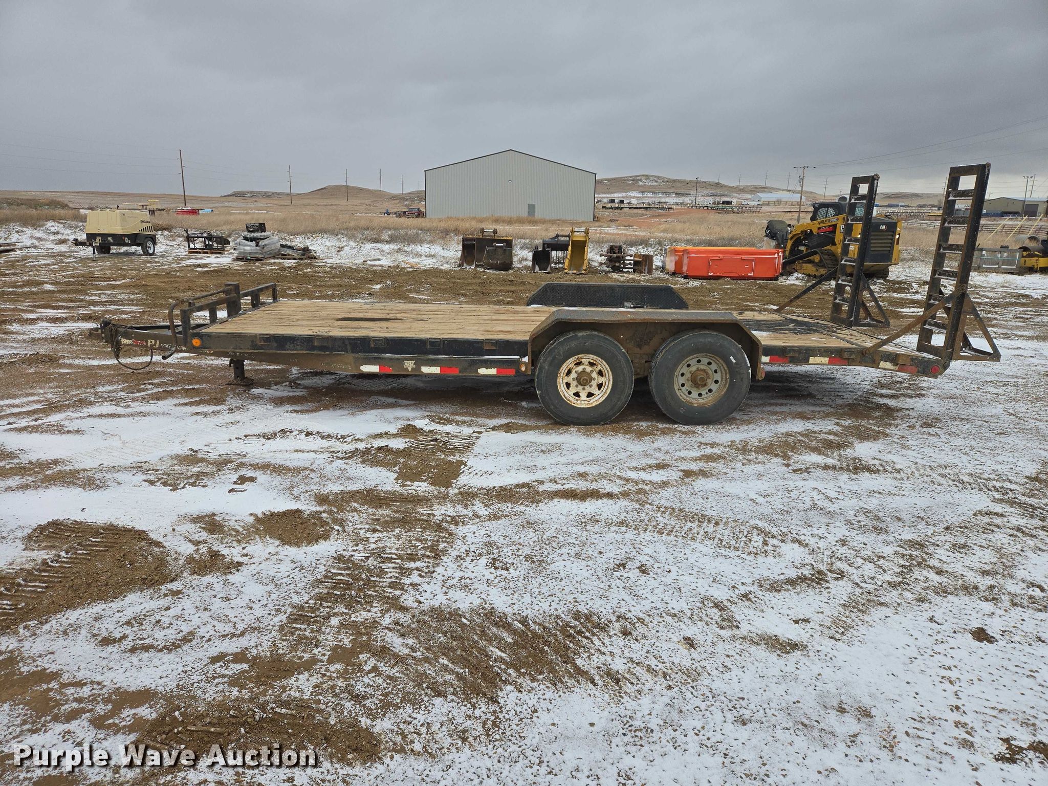 Purple Wave is selling a used Car or Utility Trailer in North Dakota. This item is a PJ utility trailer with the following: Overall, Length: 26' 4", Width: 104", Deck, Length: 20', Width: 83", Deck height: 27", Ramps: Manual, Length: 5'