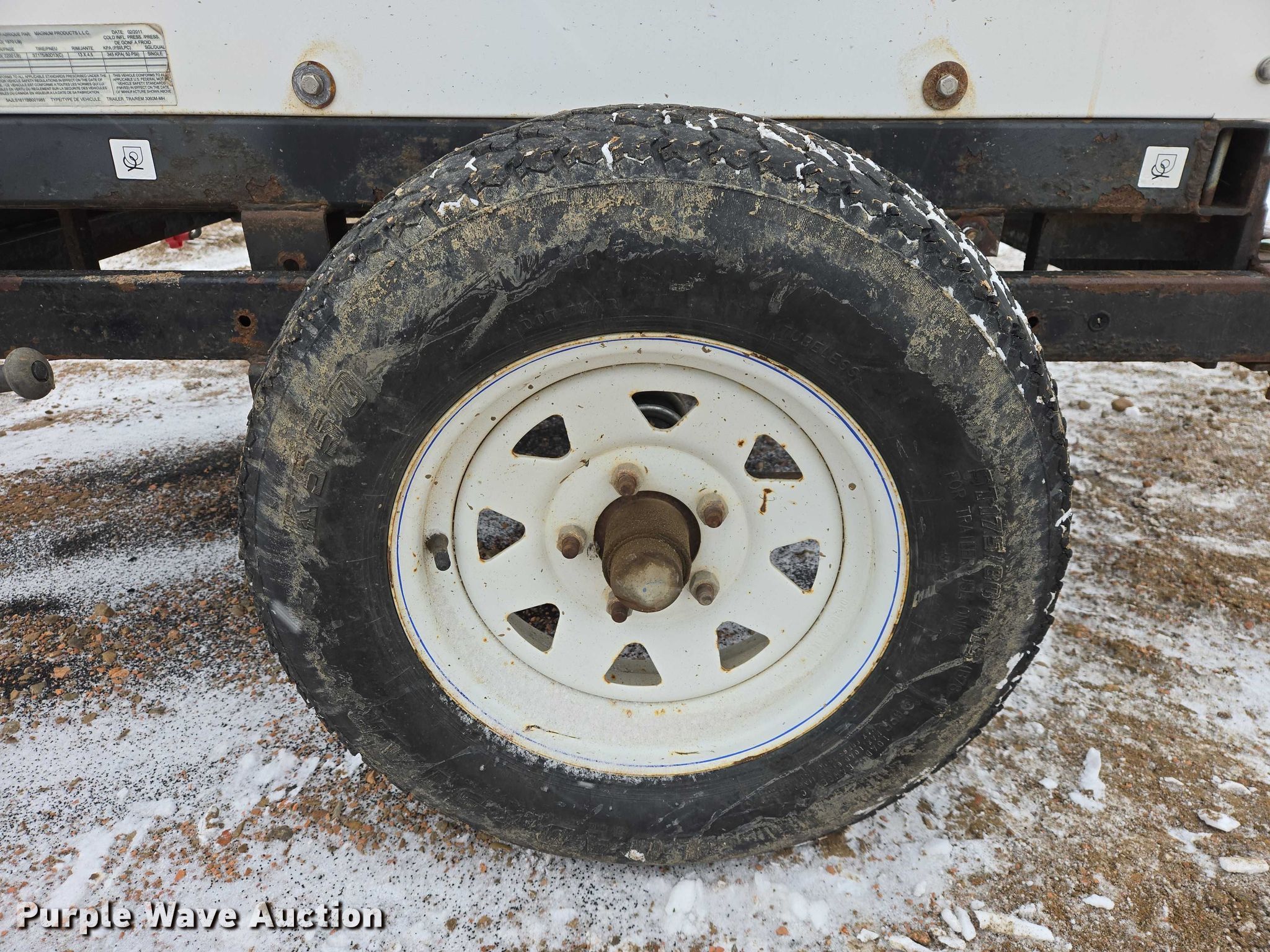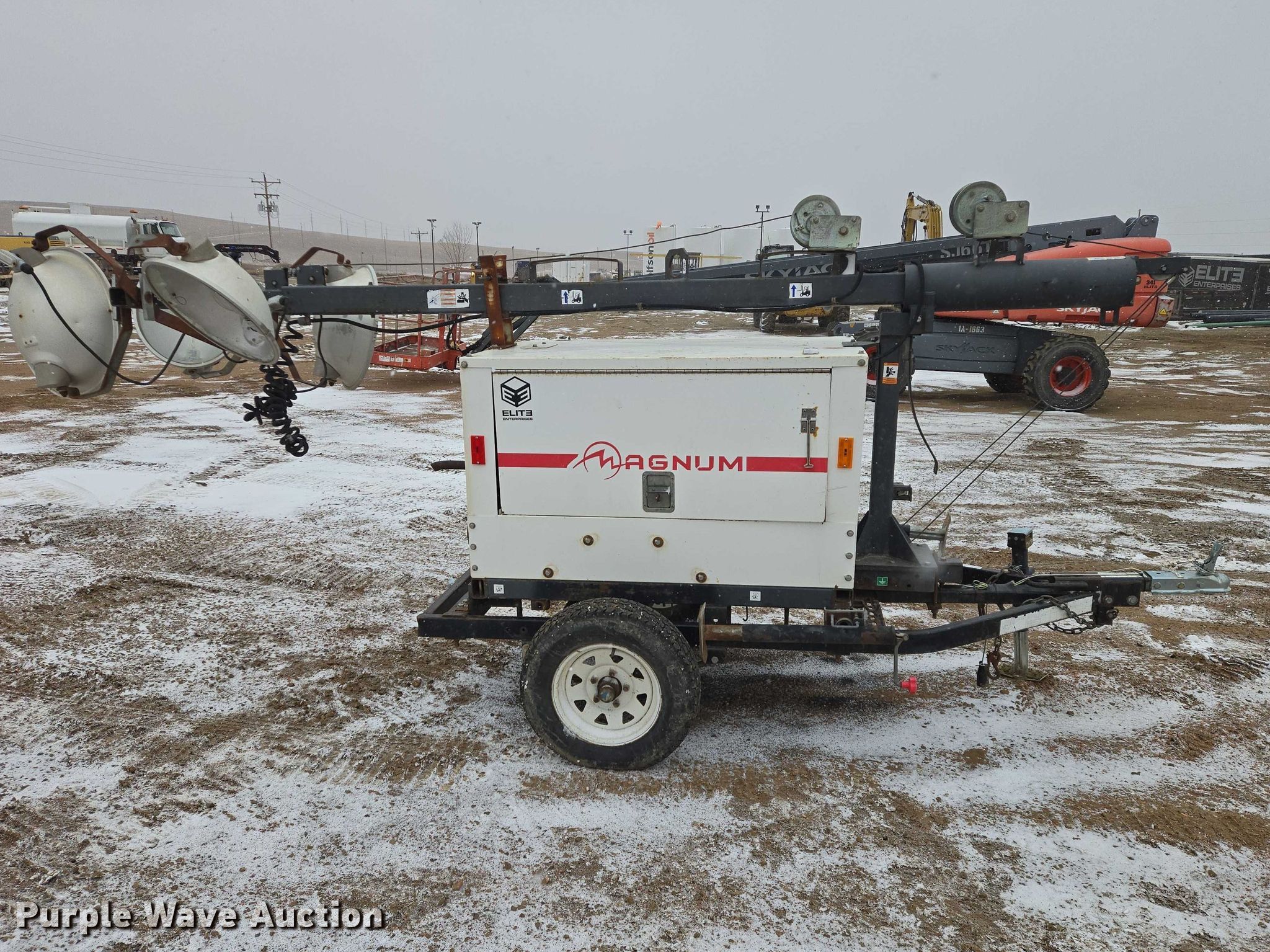 2011 Magnum MLT3060M light plant. Hours: 5,940 on meter, VIN: 5AJLS1611BB001985, Serial: 1101985. Engine Mitsubishi L3E, Displacement: 1.0L, Cylinders: 3, Fuel type: Diesel. Features Generator kVA: 6, kW: 6, Phase: Single, Electric start, Fuel tank, Light plant Bulbs: 4, Watts: 1,500, Hoist: Manual, Stabilizers. Trailer Ball hitch size: 2", Suspension: Spring, Axles: Single, Tire size: 175/80D13. This is worksite support equipment and will not come with a title. Transfer of ownership documentation will be a bill of sale. Elite Enterprises, LLC. Watford City, ND 58854