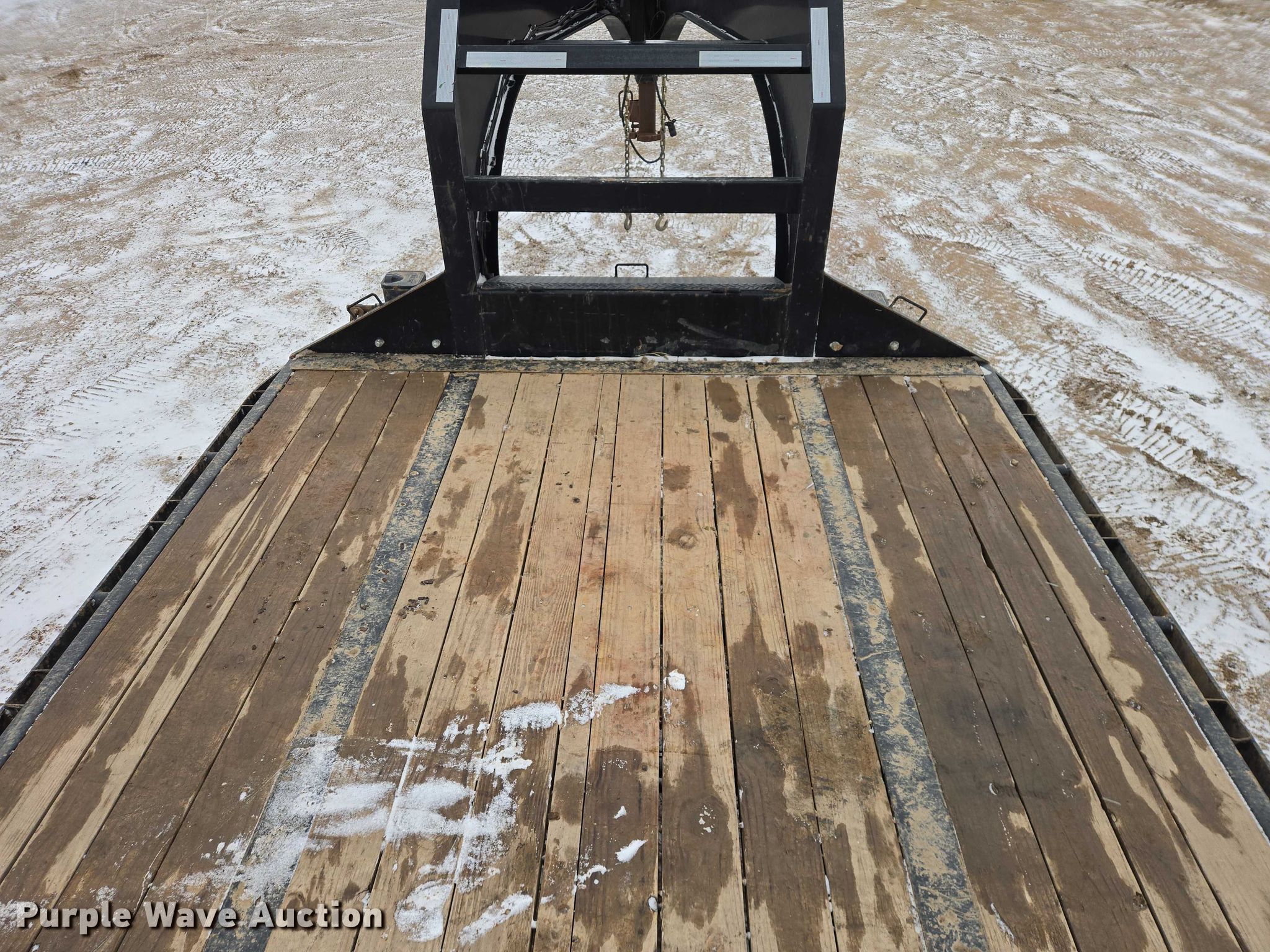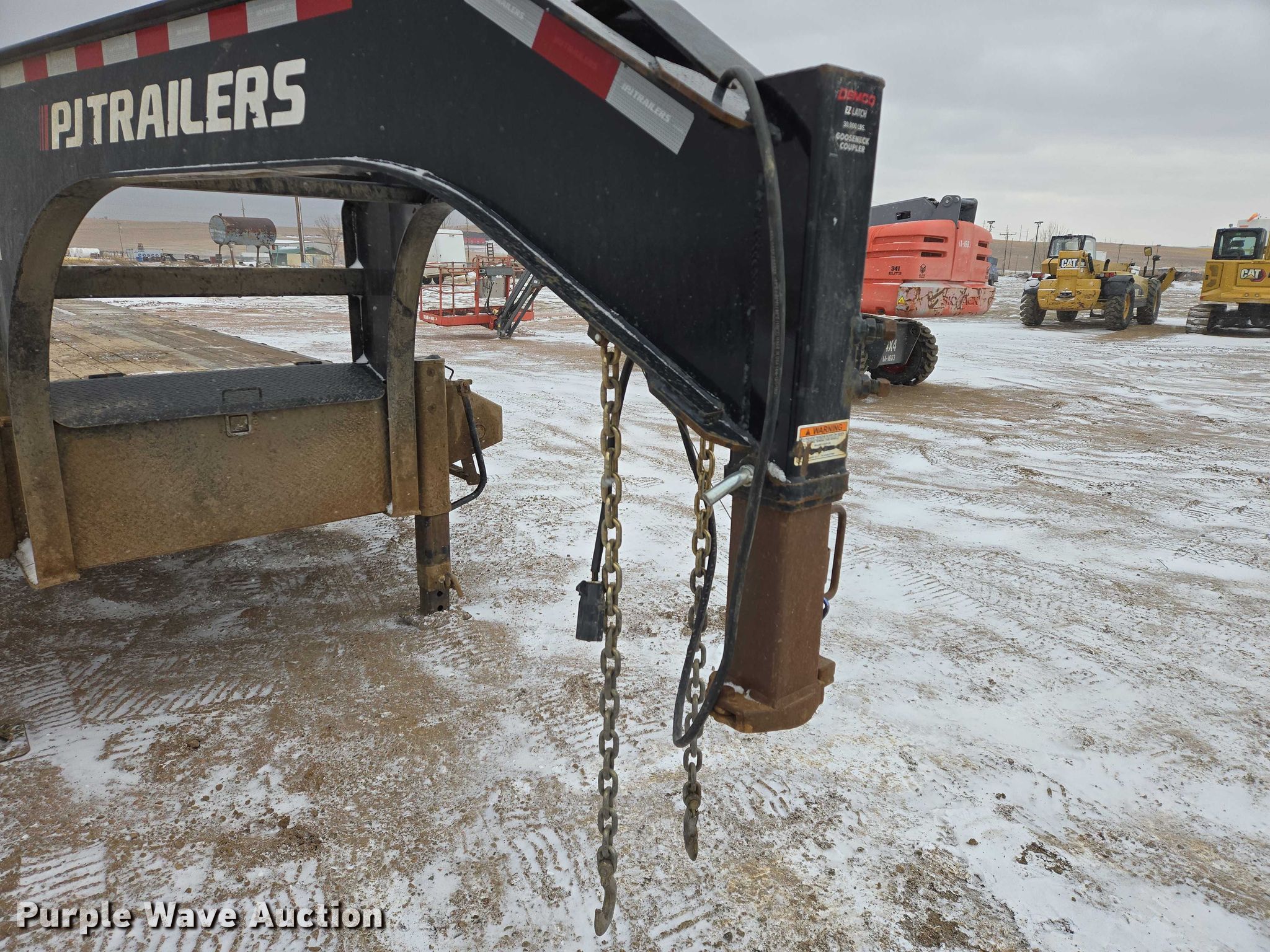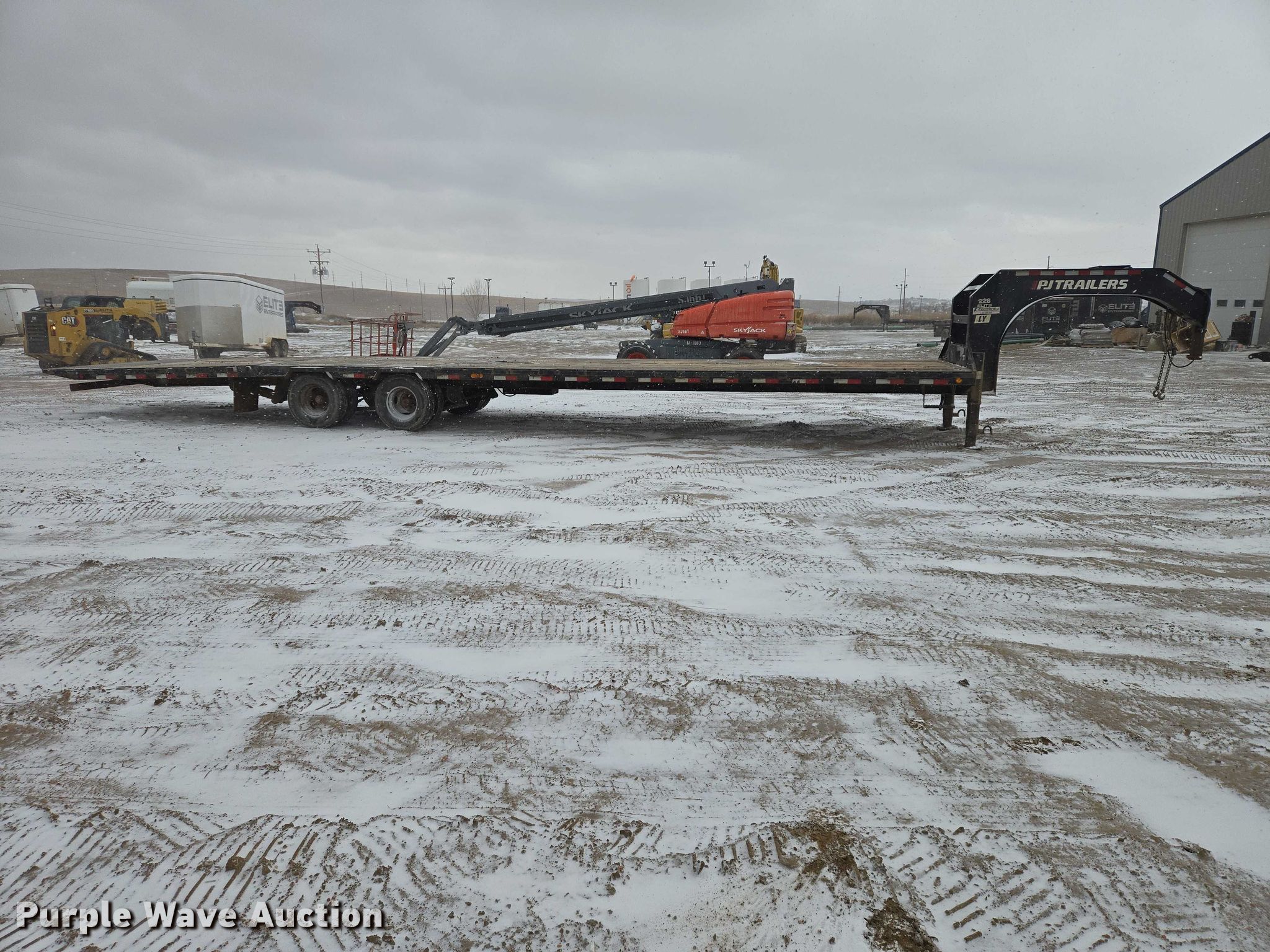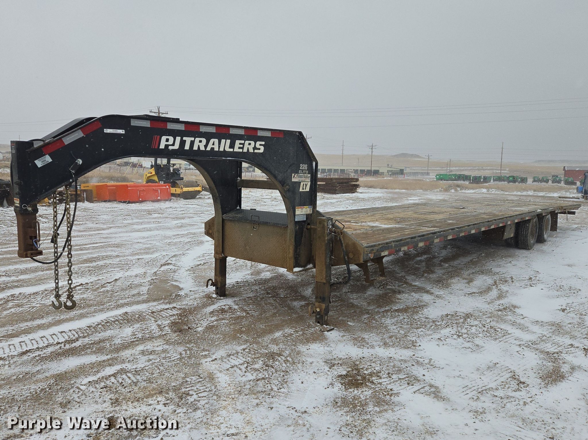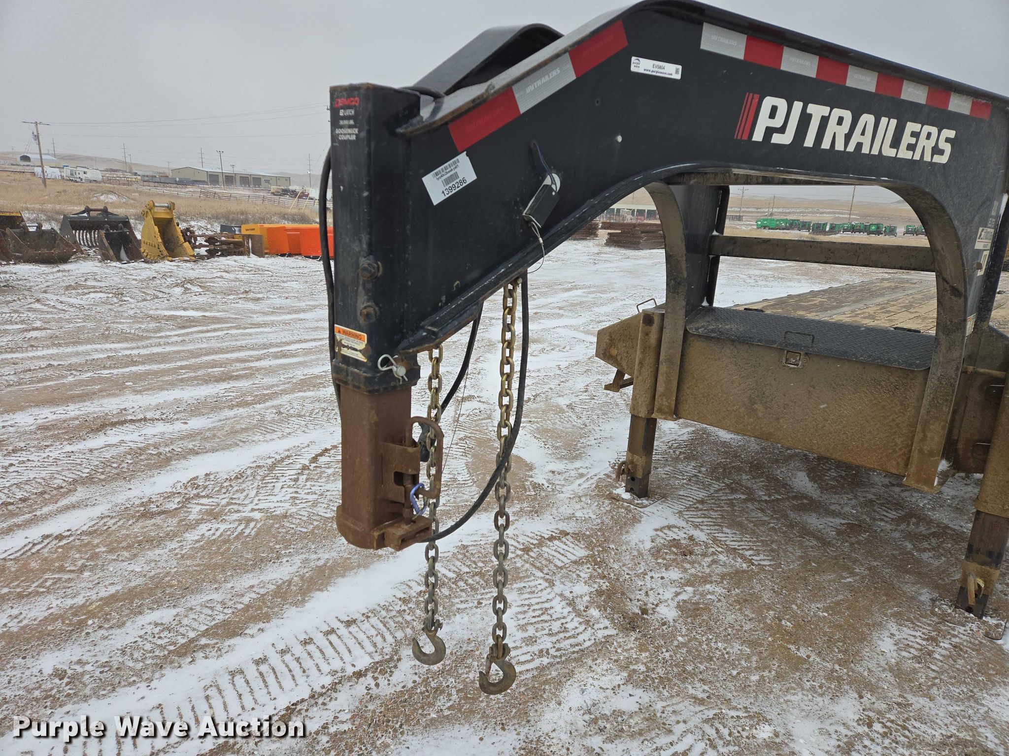 2023 PJ Trailers equipment trailer. VIN: 4P53H4923P1399286. Dimensions Overall Length: 49' 3", Width: 102", Deck Length: 40' 4", Width: 102", Deck height: 33", Hydraulic tail length: 10' 4". Features Deck type: Wood. Chassis Hitch: Gooseneck, Landing gear: Dual, Suspension: Spring, Brakes: Electric, Axles: Tandem, GVWR: 25,900 lbs. Tires Steel wheels, Size: 235/80R16. South Dakota title. Title distribution may be delayed up to 14 days from verification of funds. Elite Enterprises, LLC. Watford City, ND 58854