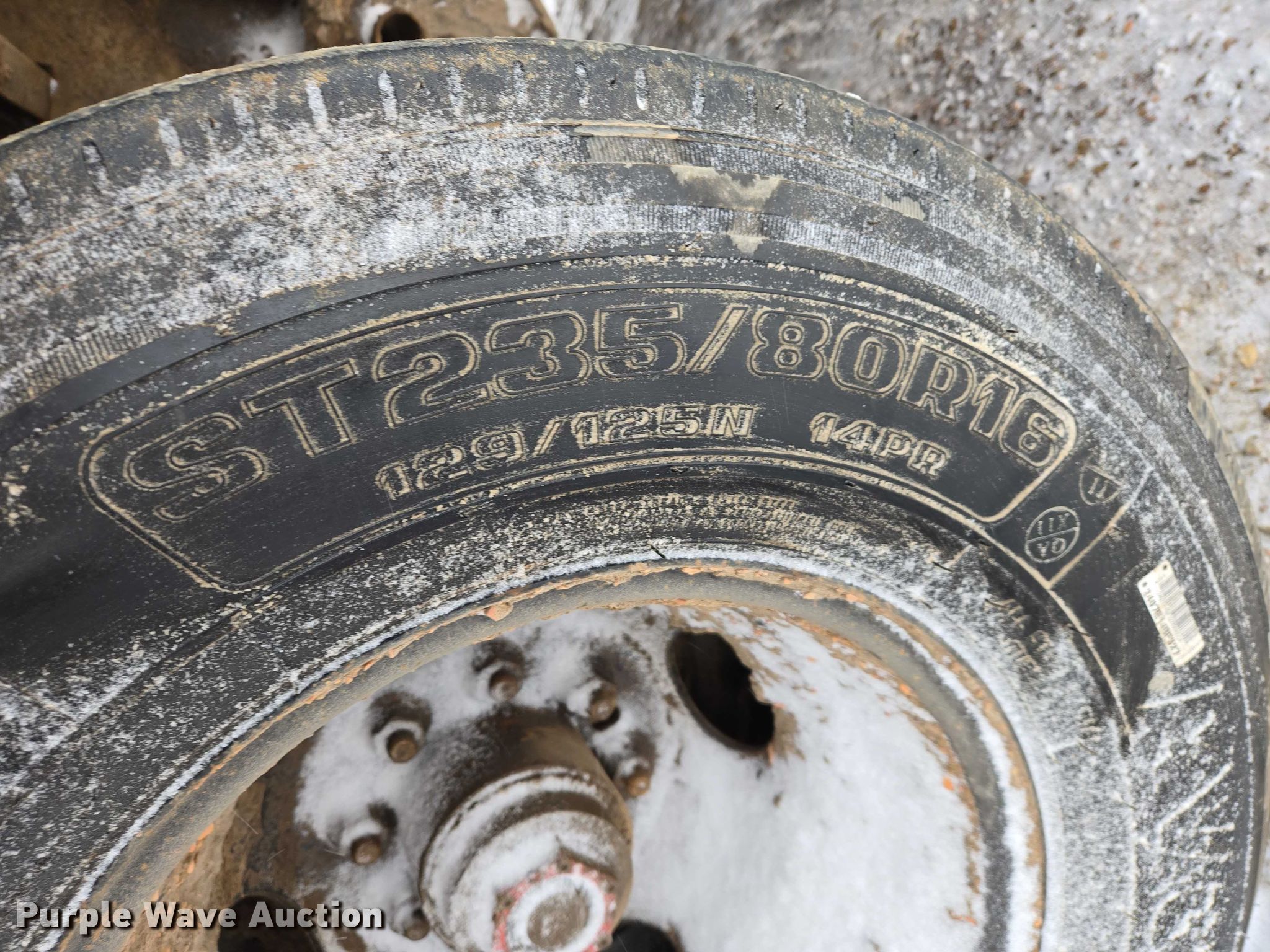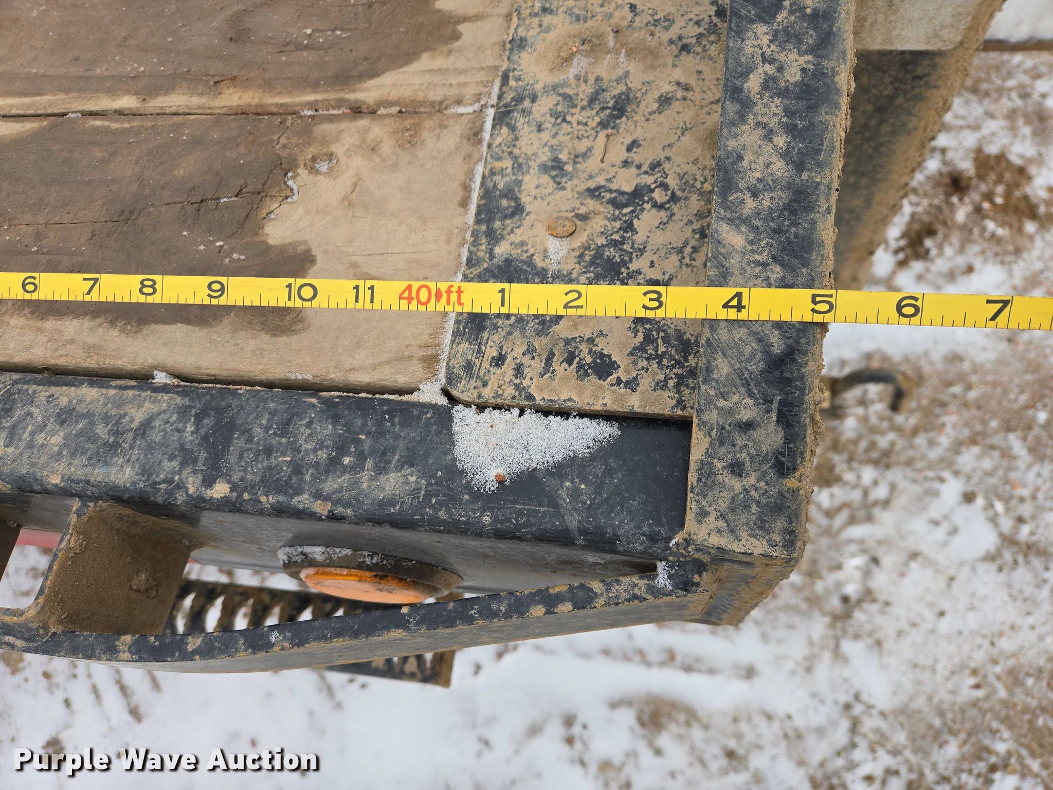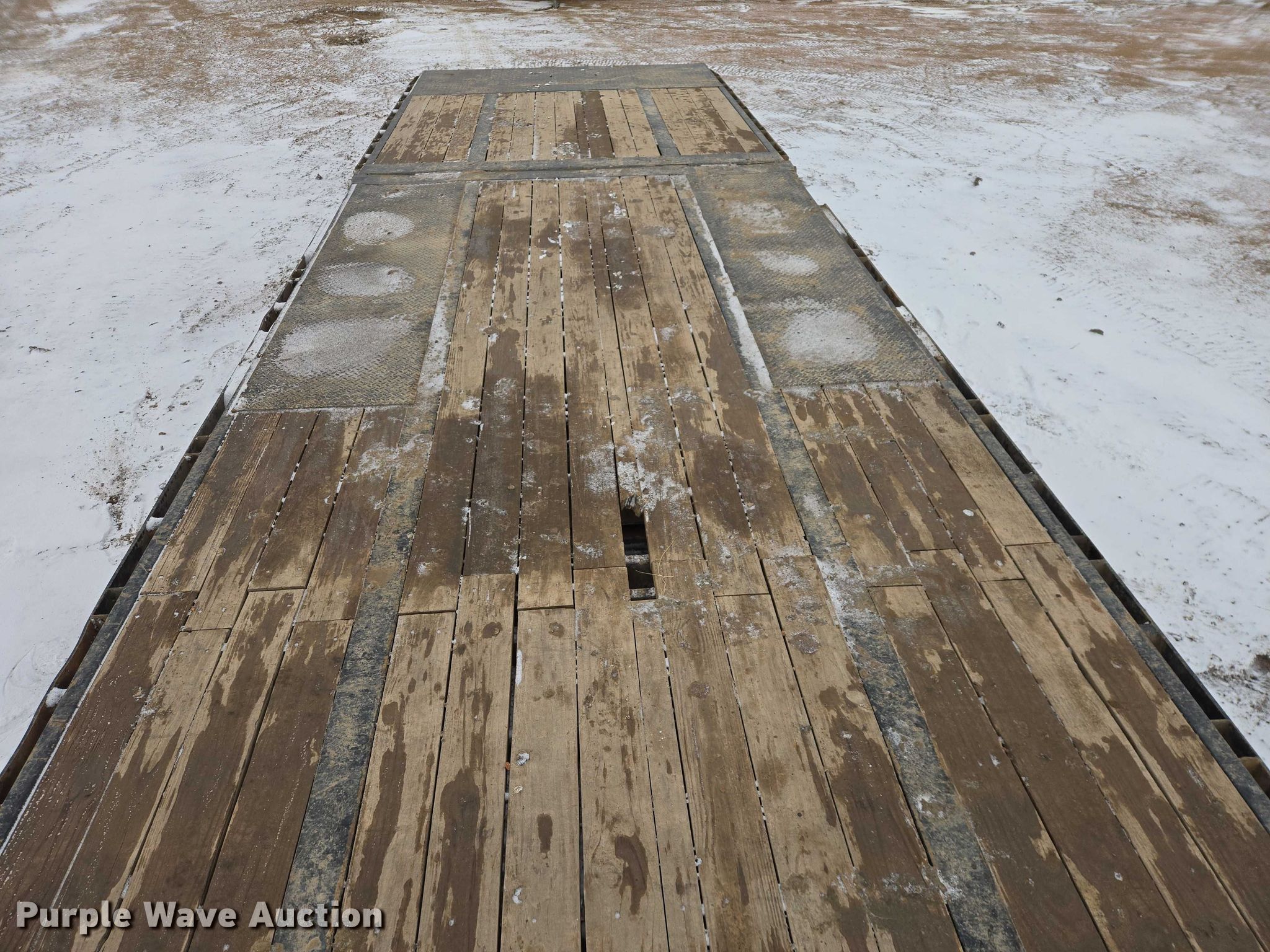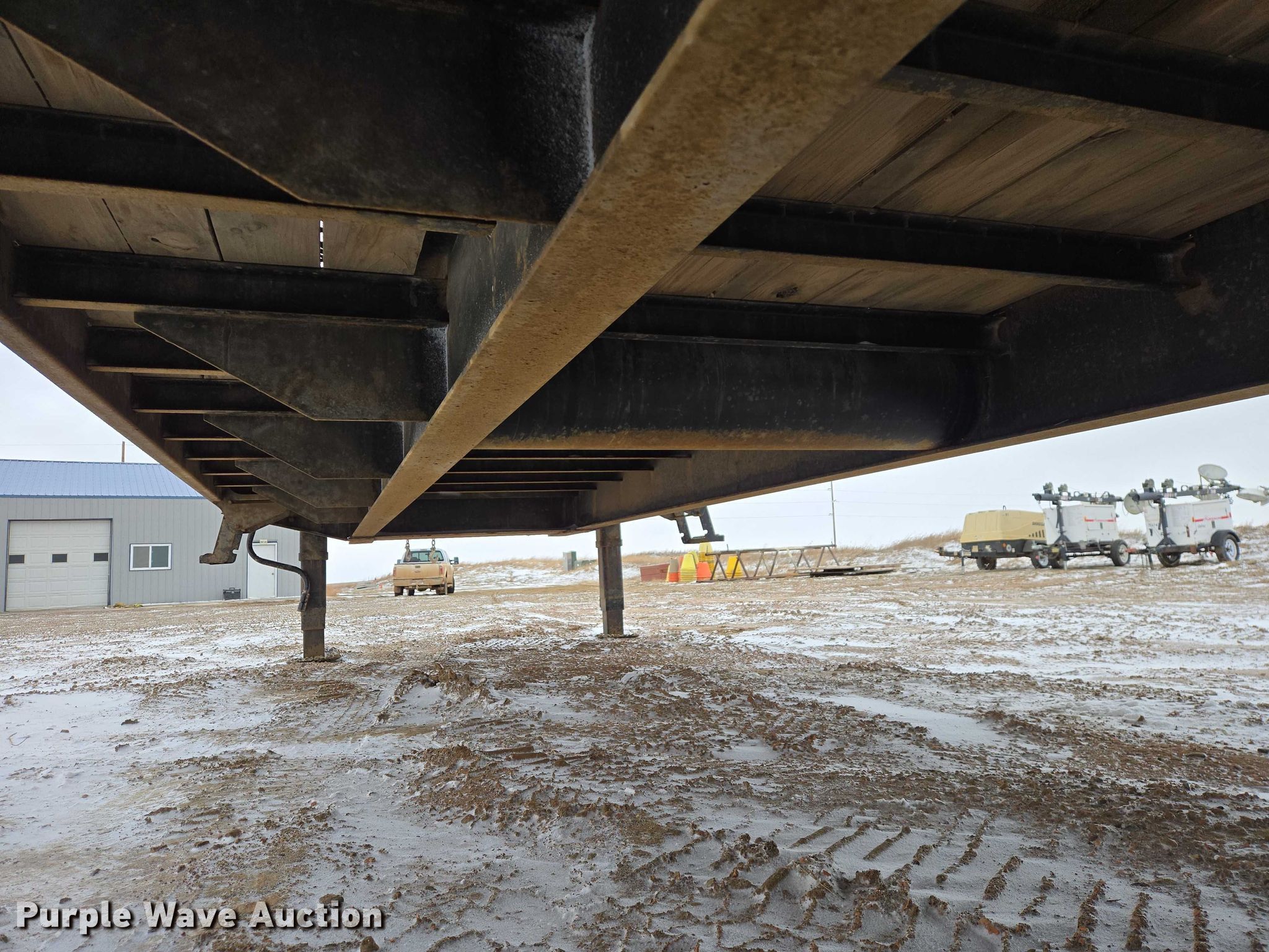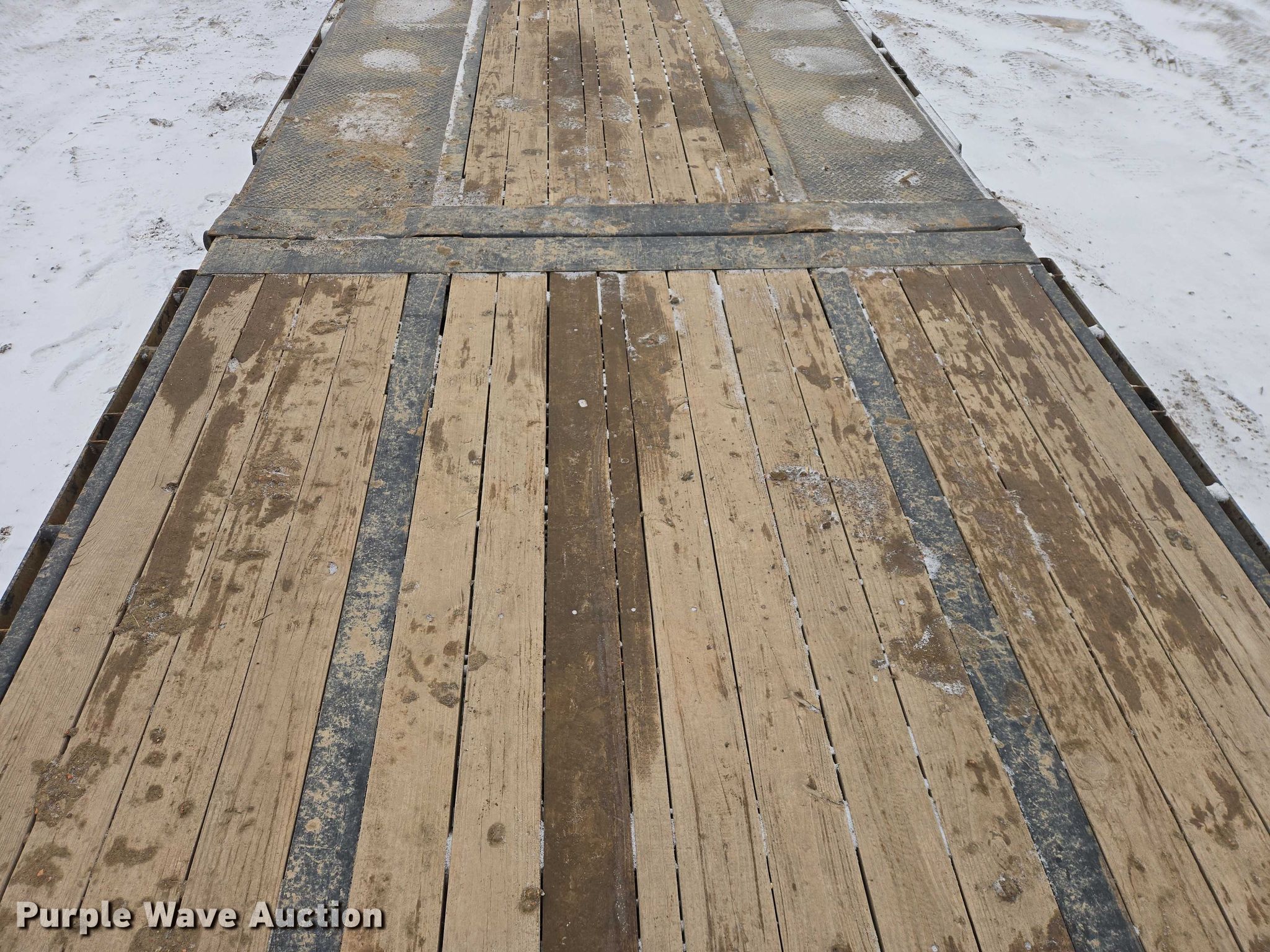 2023 PJ Trailers equipment trailer. VIN: 4P53H4923P1399286. Dimensions Overall Length: 49' 3", Width: 102", Deck Length: 40' 4", Width: 102", Deck height: 33", Hydraulic tail length: 10' 4". Features Deck type: Wood. Chassis Hitch: Gooseneck, Landing gear: Dual, Suspension: Spring, Brakes: Electric, Axles: Tandem, GVWR: 25,900 lbs. Tires Steel wheels, Size: 235/80R16. South Dakota title. Title distribution may be delayed up to 14 days from verification of funds. Elite Enterprises, LLC. Watford City, ND 58854