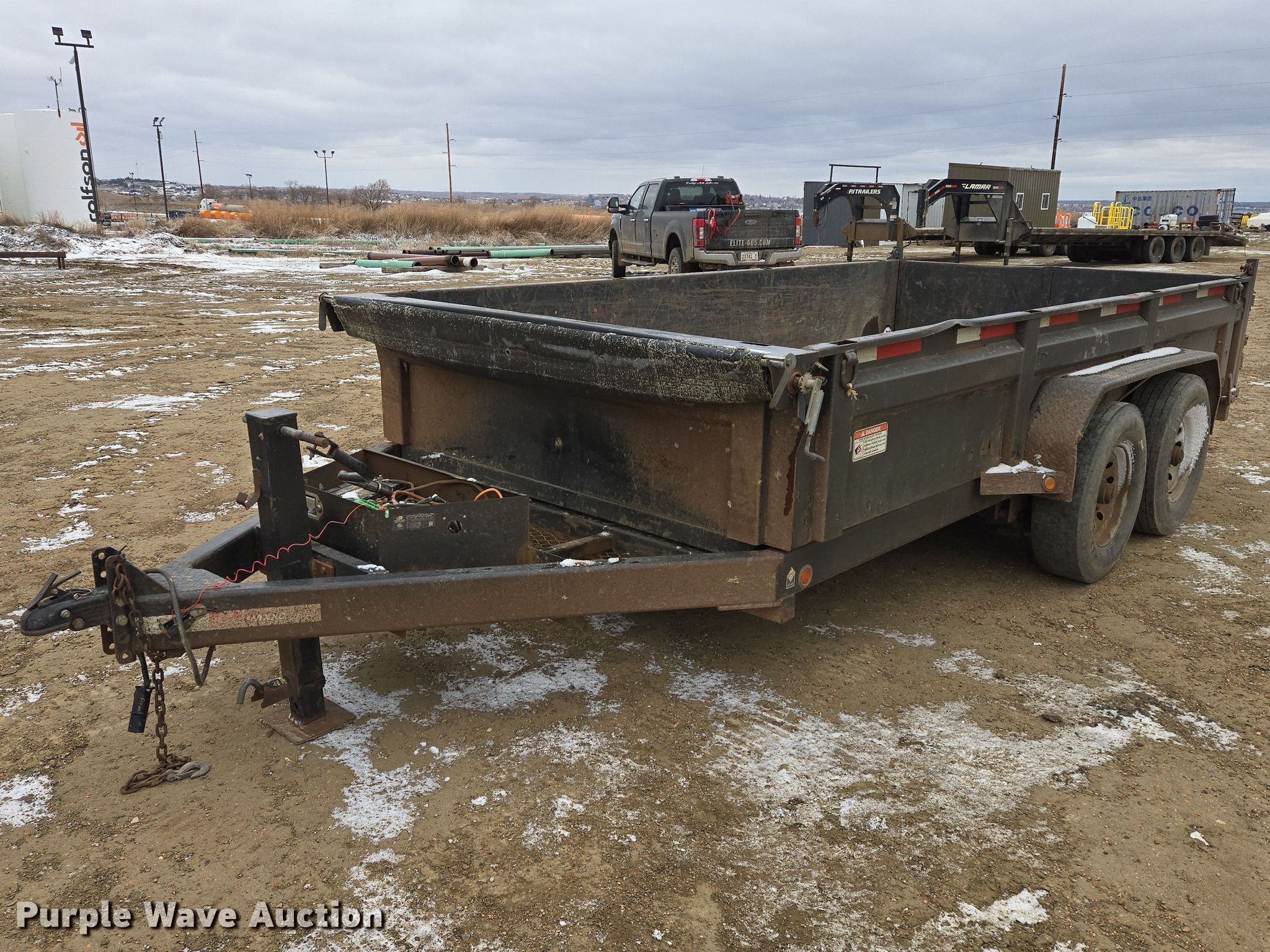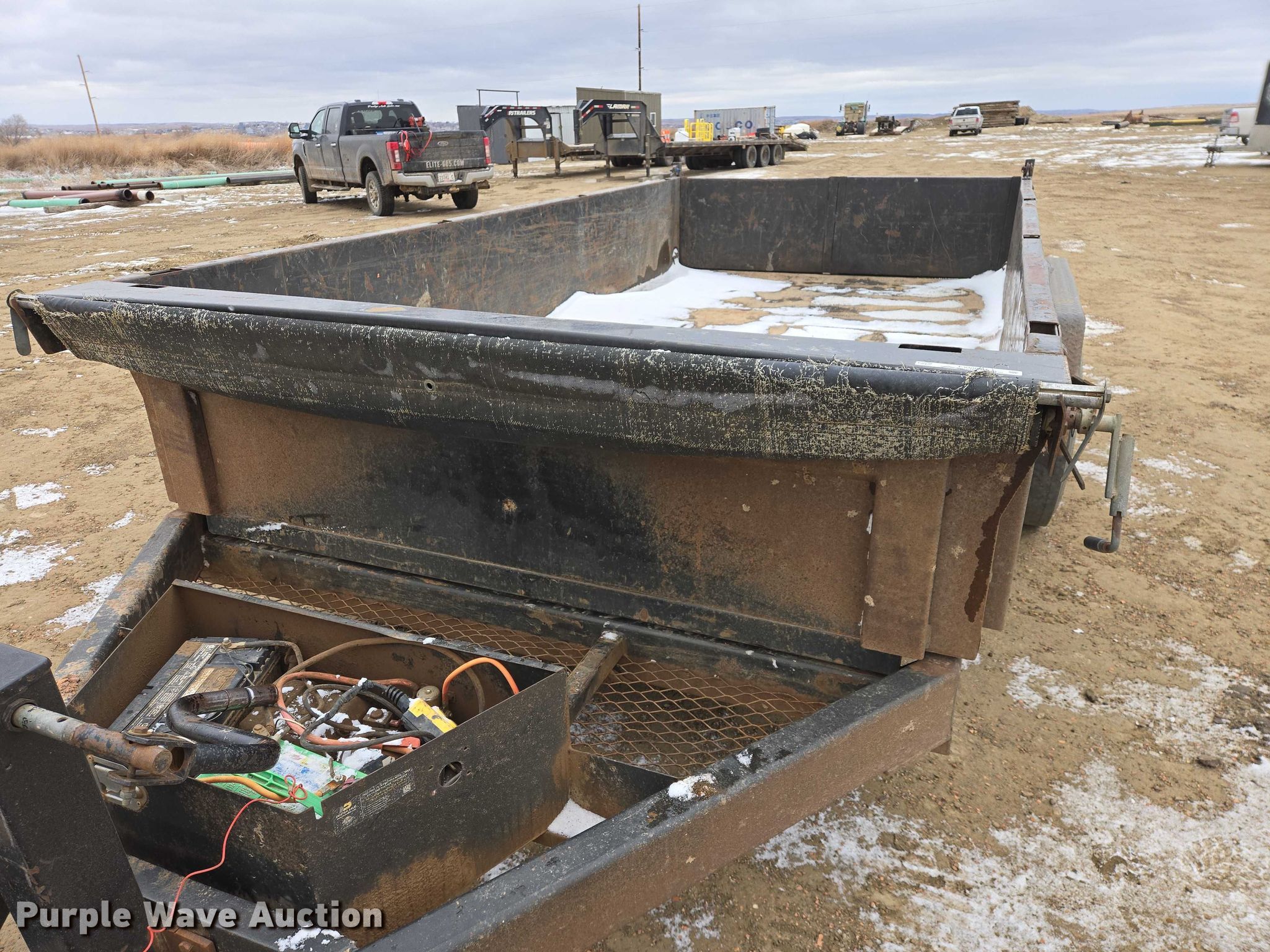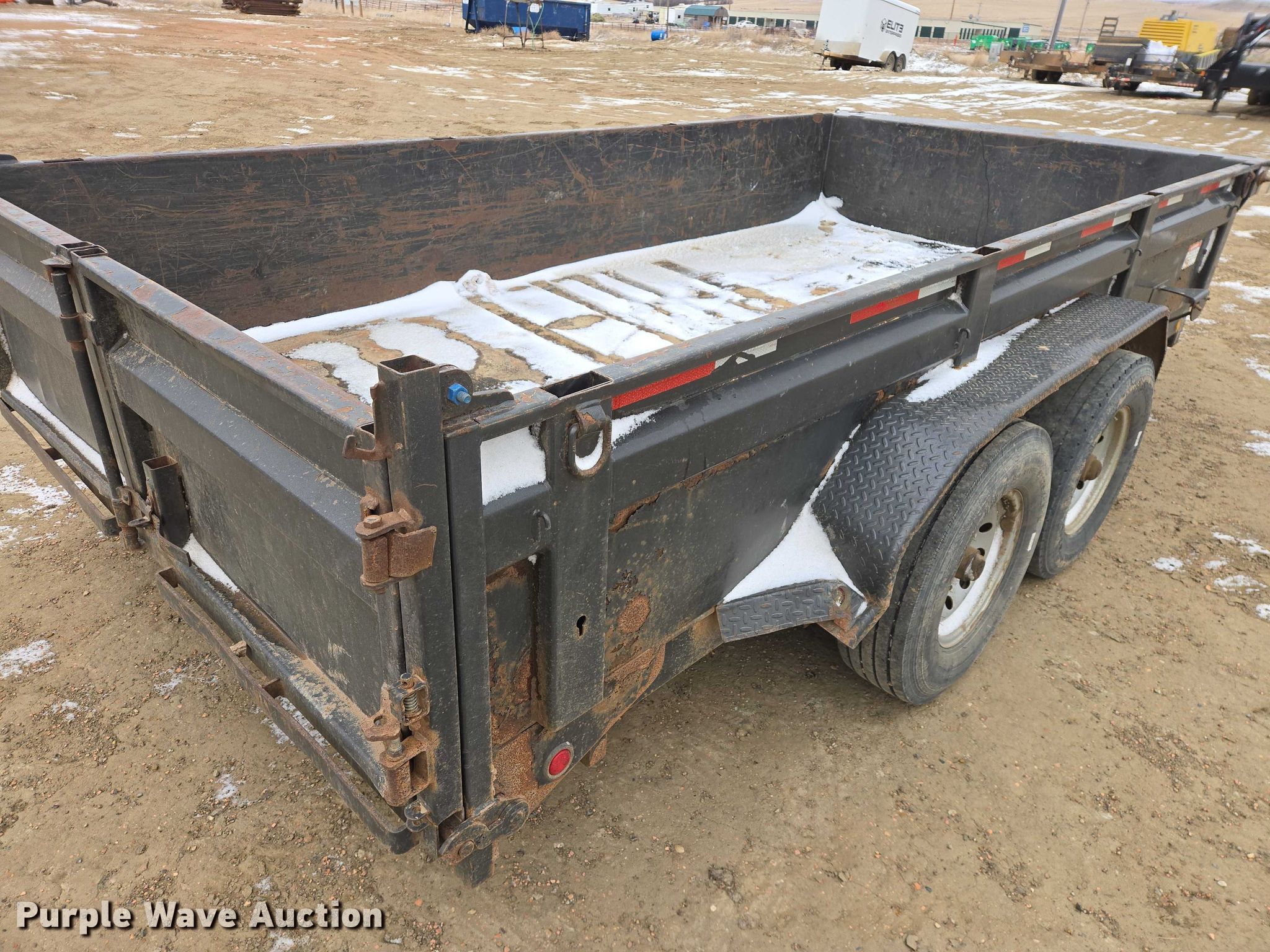 2017 MaxxD dump trailer. VIN: 5R8DL1426HM048416. Dimensions Overall Length: 19' 9", Width: 102", Body Length: 14' 2", Width: 87", Side height: 24". Features Body type: Steel, Ram: Single, End gate: Manual, Roll tarp. Chassis Ball hitch: 2 5/16", Landing gear: Single, Suspension: Spring, Brakes: Electric, Axles: Tandem. Tires Steel wheels, Size: 235/80R16. South Dakota title. Title distribution may be delayed up to 14 days from verification of funds. Elite Enterprises, LLC. Watford City, ND 58854