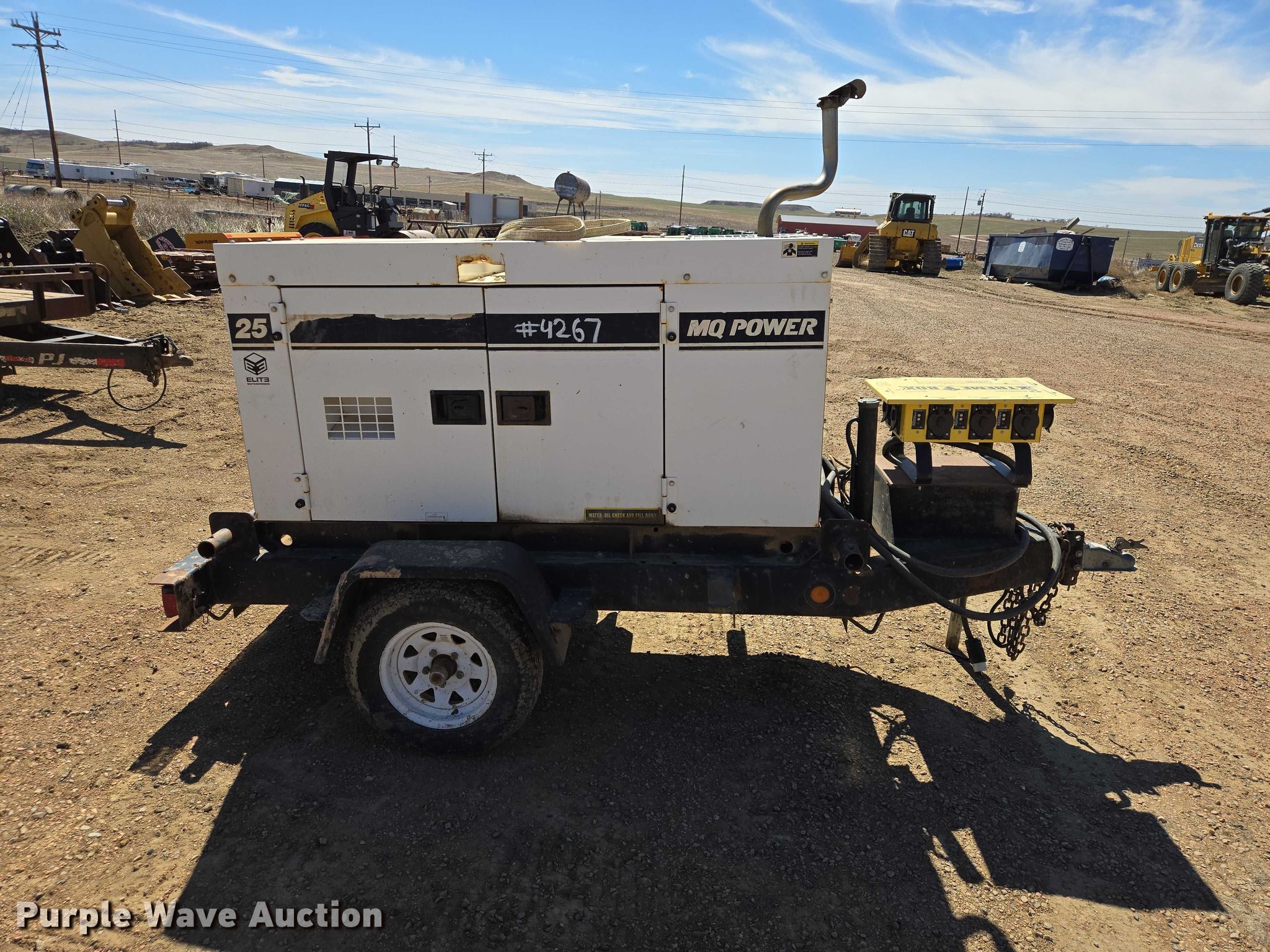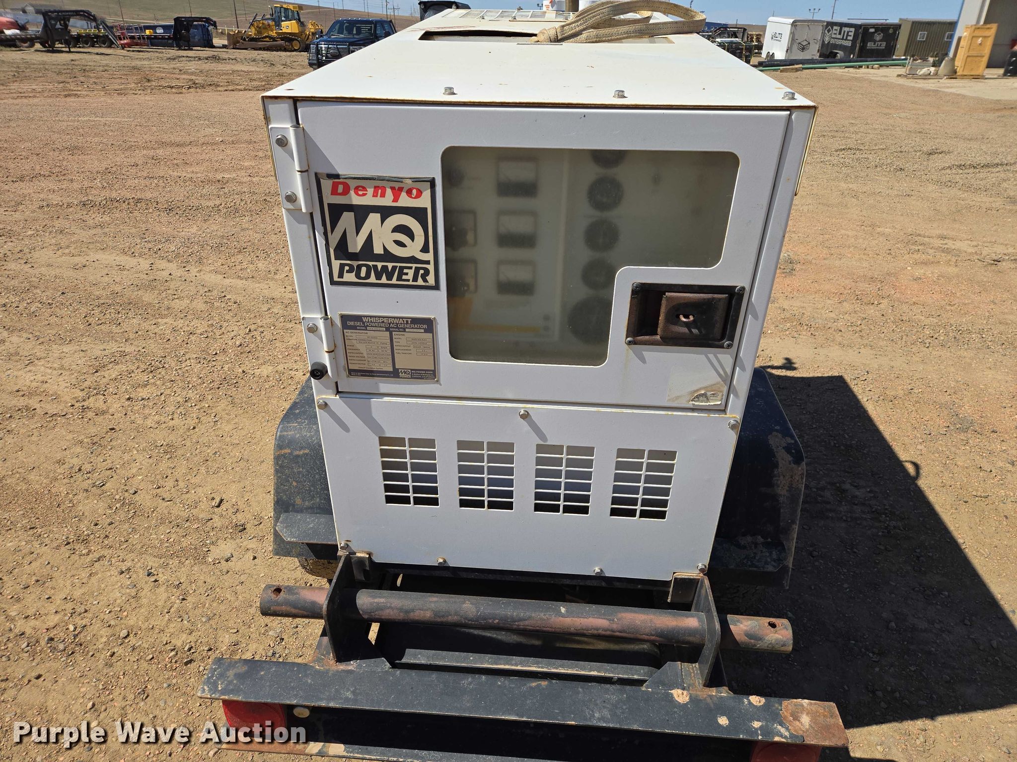 2007 MQ Power DCA-25SSIU2 generator. Hours: 28,450 on meter, VIN: 4GNFD10107B021648, Serial: 7109304. Engine Isuzu AA-4LE2, Cylinders: 4, Fuel type: Diesel. Features Generator MQ Power DF-0270I2, kVA: 25, kW: 20, Phase: Single, Three, Electric start, Fuel tank. Trailer Ball hitch size: 2", Suspension: Spring, Axles: Single, Tire size: 175/80R13. This is worksite support equipment and will not come with a title. Transfer of ownership documentation will be a bill of sale. Elite Enterprises, LLC. Watford City, ND 58854
