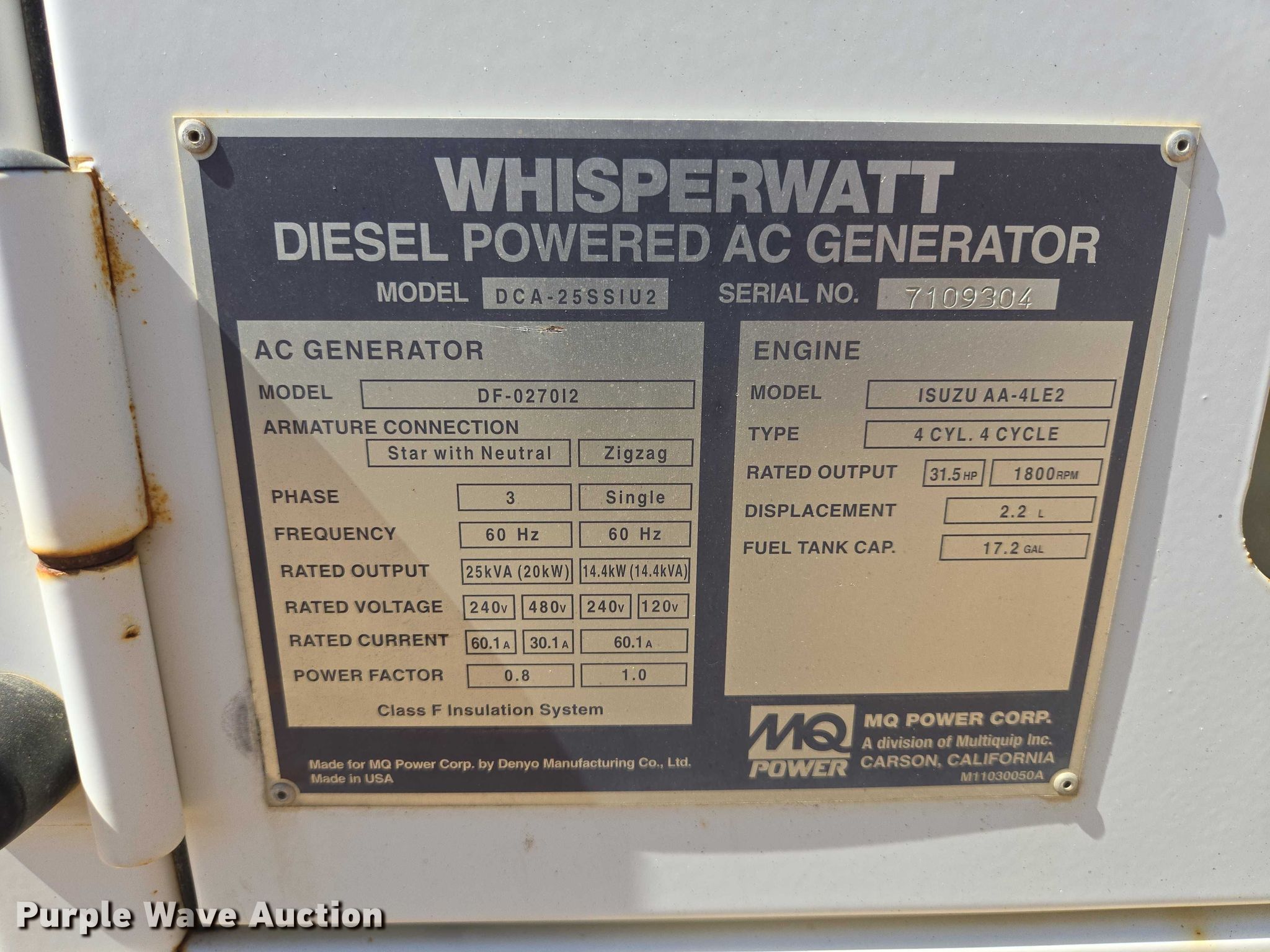 • EV5907 image for item EV5907 2007 MQ Power DCA-25SSIU2 generator