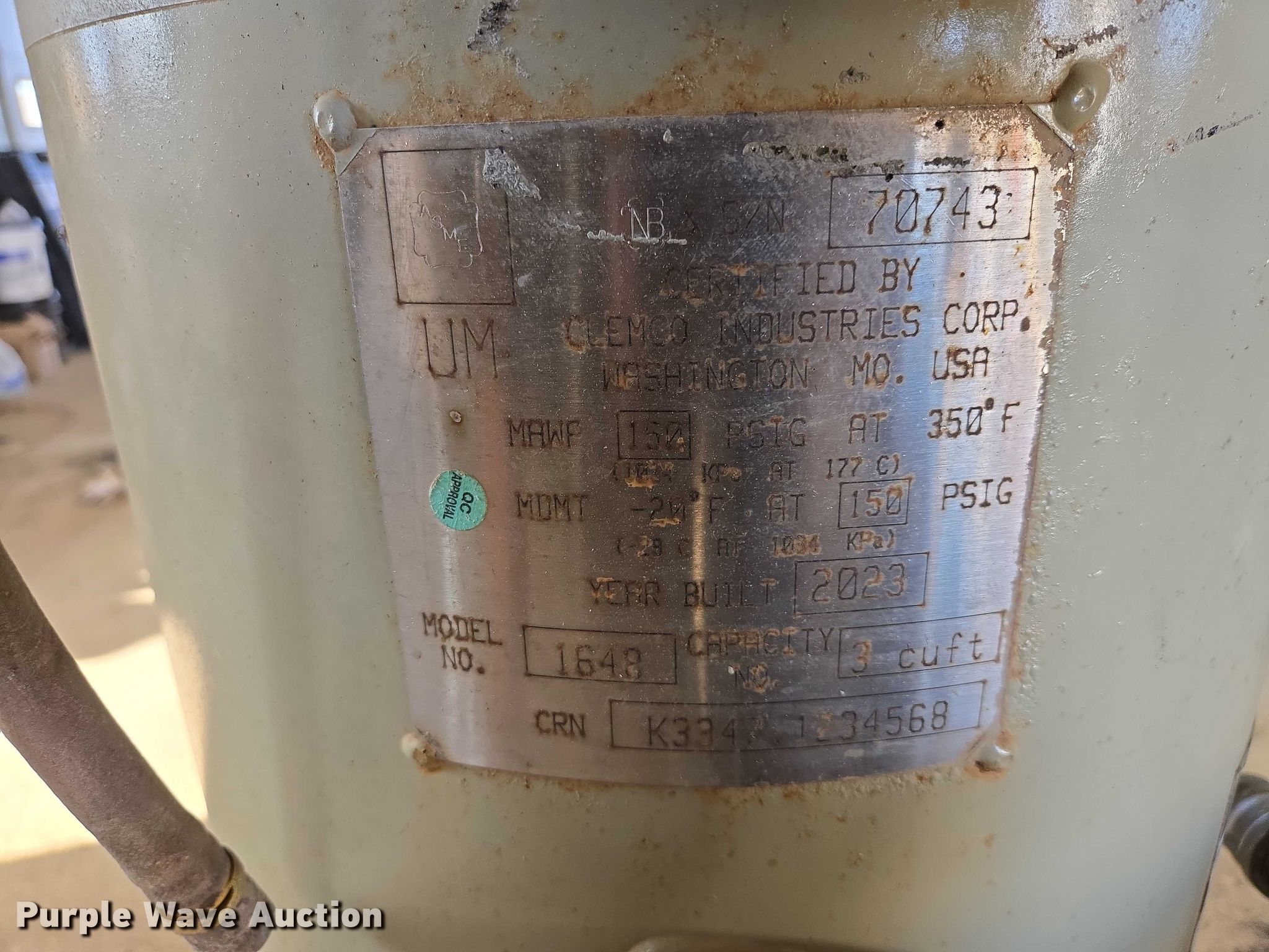 Purple Wave is selling a used Tools in North Dakota. This item is a 2023 Clemco 1648 sand blaster with the following: Serial: 70743, PSI: 150, Capacity: 3 cu.ft.