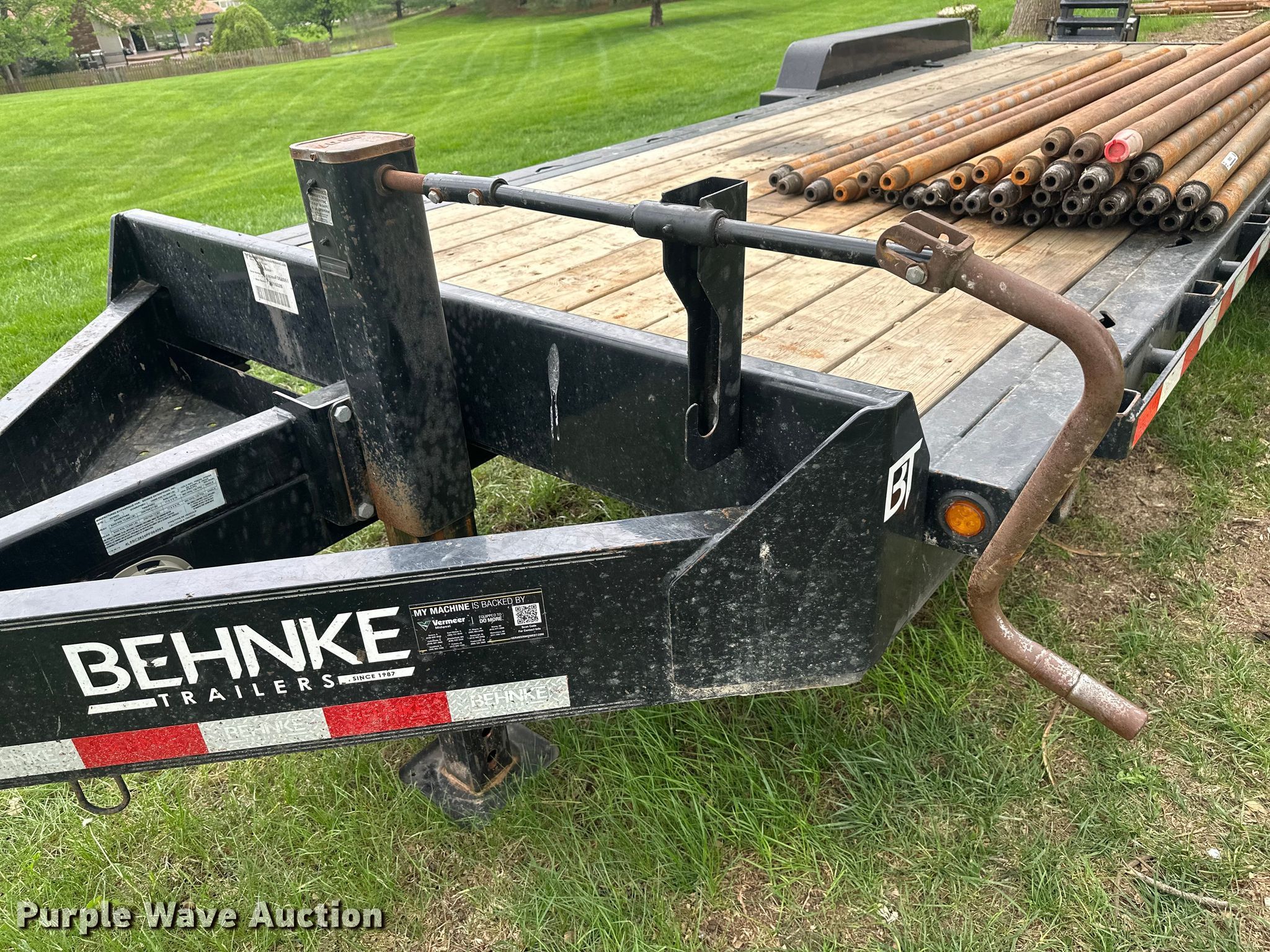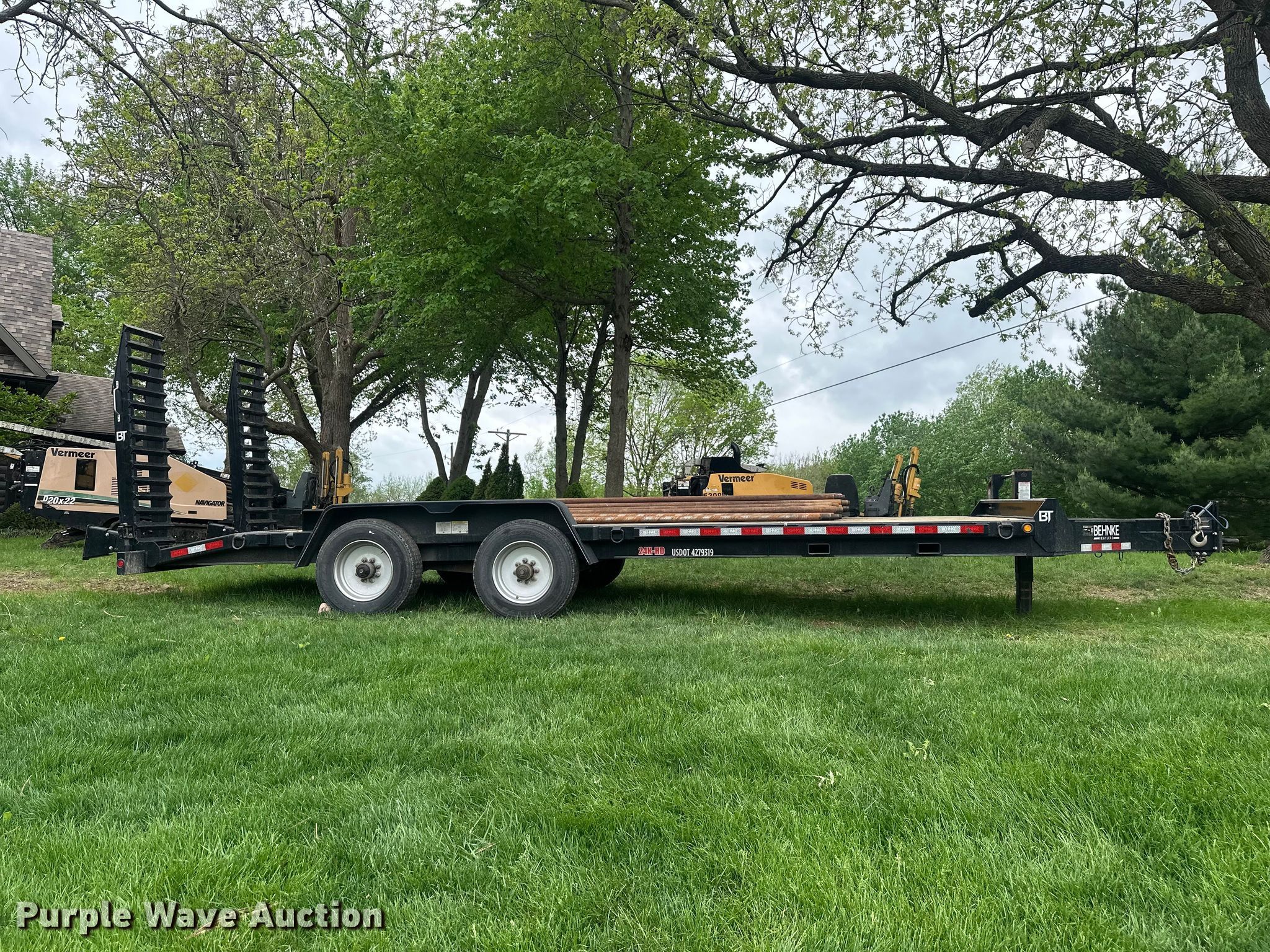 2023 Behnke CNCT2324E-S equipment trailer. VIN: 4L5SC2824PF064061. Dimensions Overall Length: 29' 11", Width: 8' 5", Deck Length: 20', Width: 7' 3", Tail length: 2' 11", Ramps: Manual Length: 6'. Features Deck type: Wood, Board size: 7". Chassis Hitch: Pintle, Landing gear: Single, Suspension: Spring, Brakes: Electric, Axles: Triple, GVWR: 24,000 lbs, GAWR: 12,000 lbs. Tires Steel wheels, Size: 235/75R17.5. Notes Drill stems not included. Missouri title. Title distribution may be delayed up to 14 days from verification of funds. Eddys underground. Saint Joseph, MO 64505
