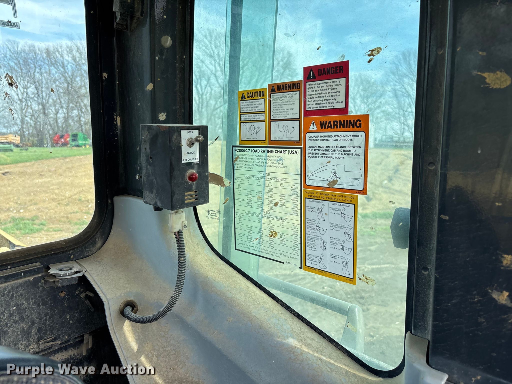 2002 Komatsu PC200LC-7L excavator. Hours: 9,321 on meter, Serial: A86122. Engine Cylinders: 6, Fuel type: Diesel. Transmission Hydrostatic, Two speed travel. Operators station Enclosed cab, AC, Heat. Features Standard, Counter weights, Boom Standard, Stick Stick length: 9' 7", Quick coupler: Hydraulic JRB, Bucket WB, Capacity: 10 cu.yd., Width: 54", Teeth: 7. Tracks Width: 31.5", Steel, Grouser pads: Triple. Notes Possible coolant sensor issues, beeping, Glass missing, Hydraulic tilt cylinder issues, leaks. Itabok LLC. Kingston, MO 64650