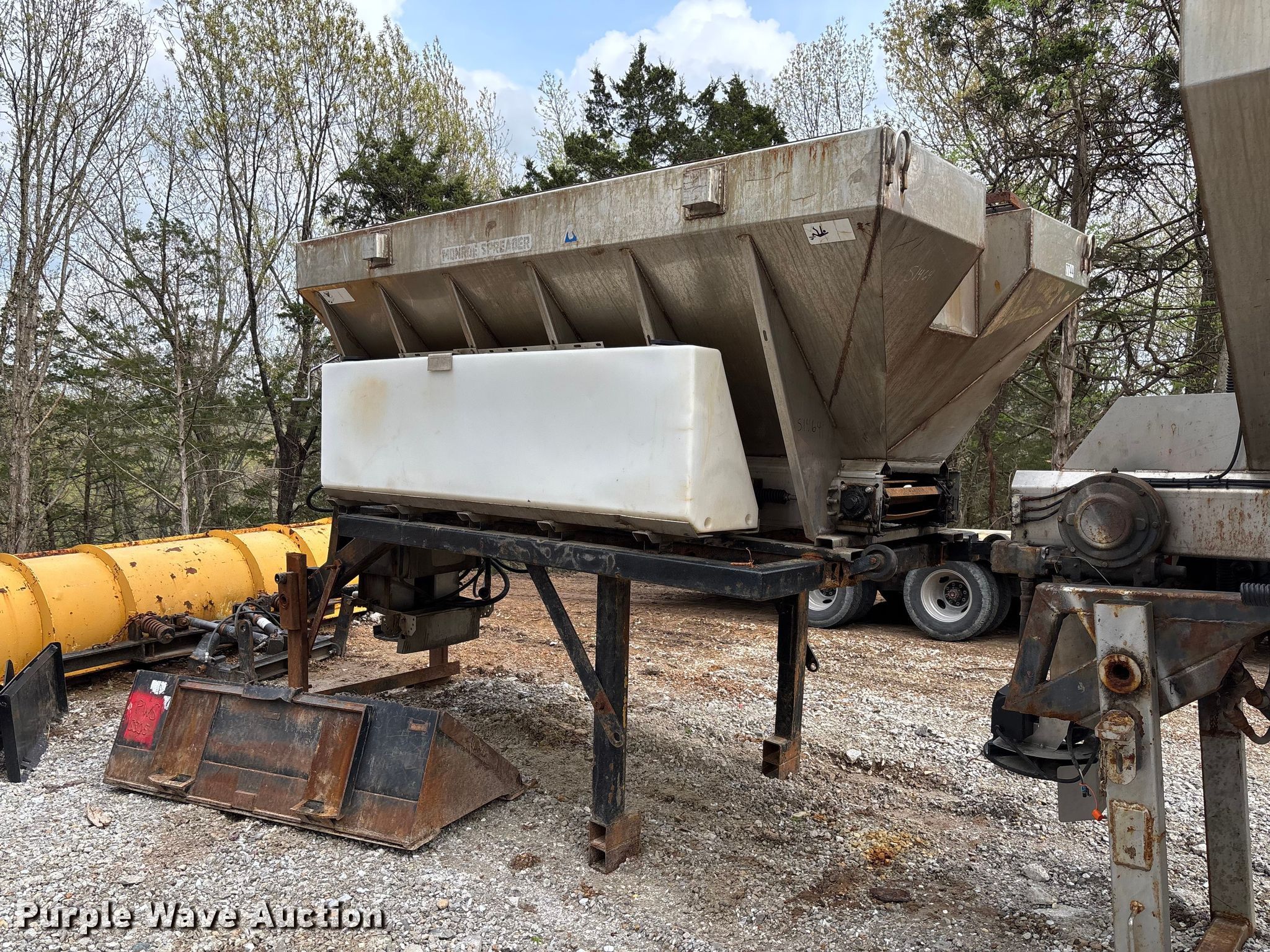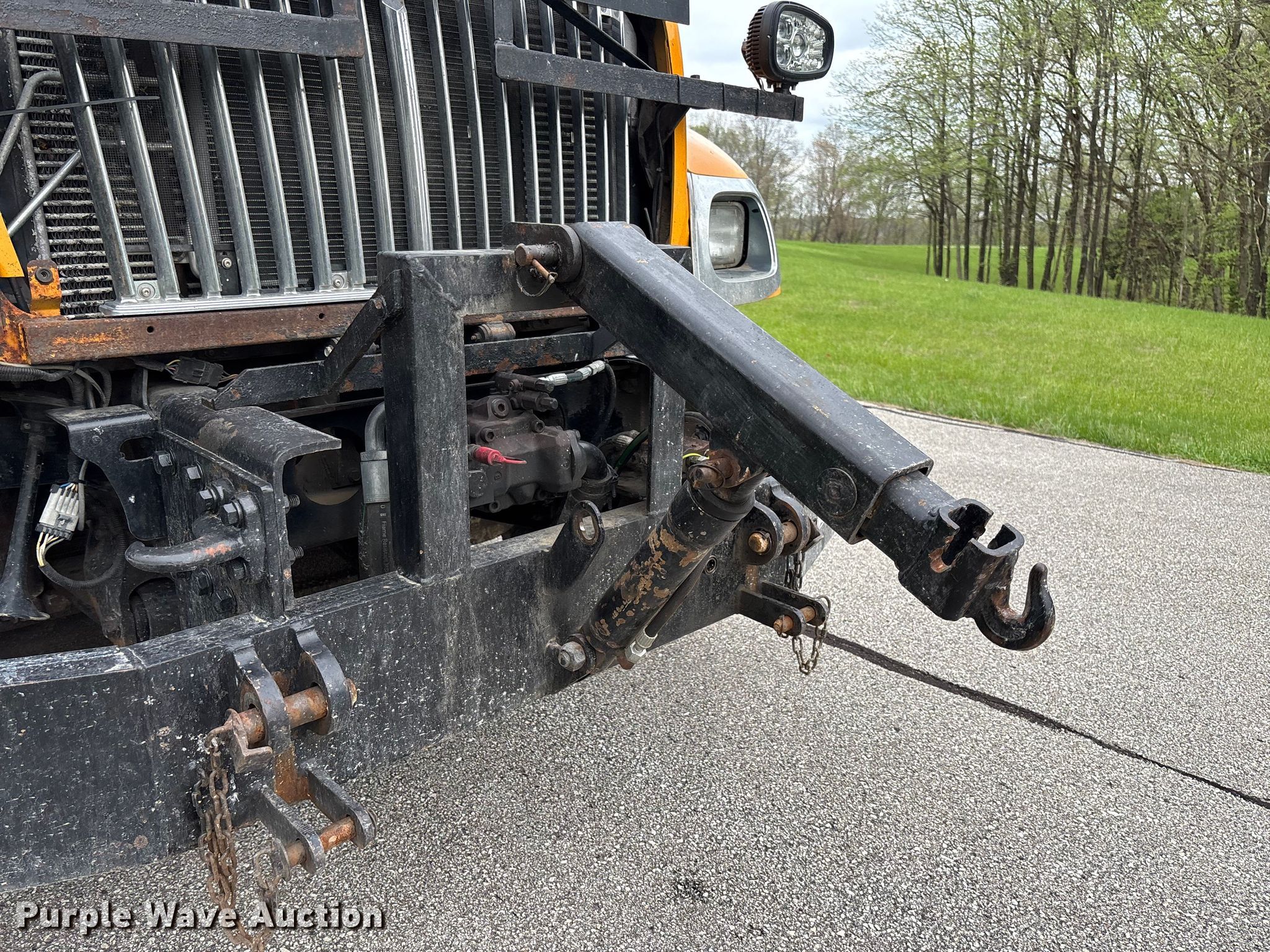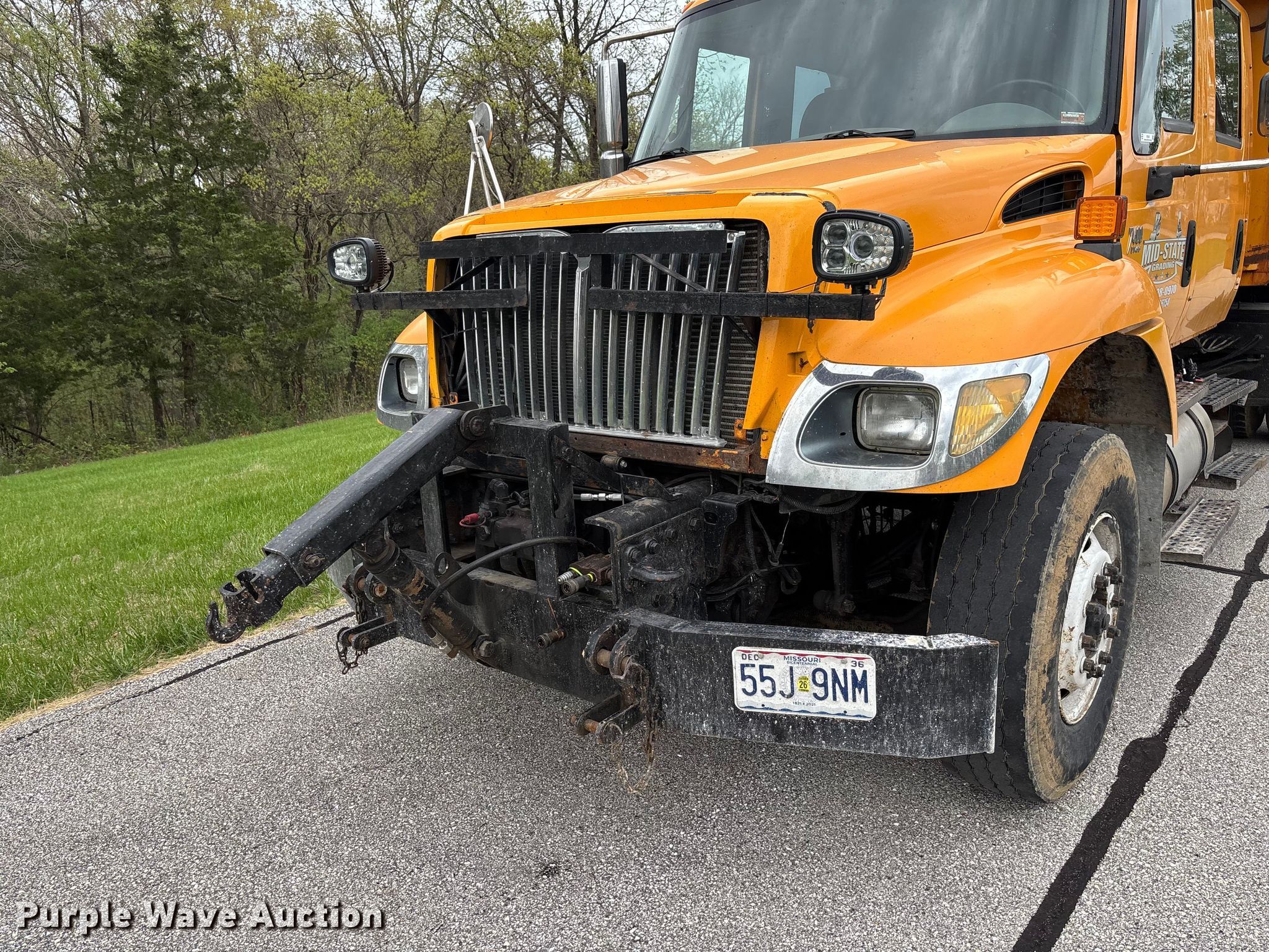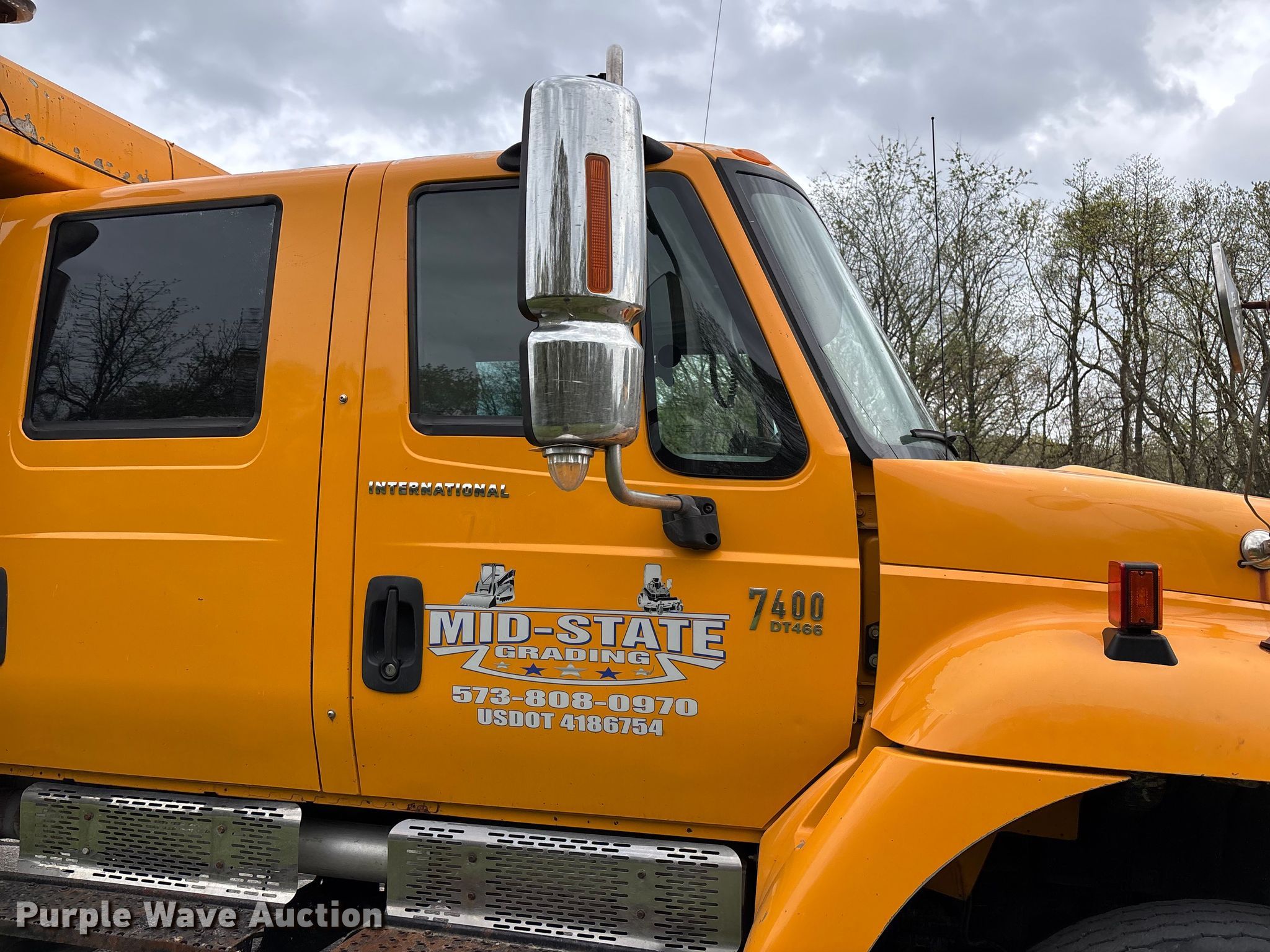 2005 International 7400 Crew Cab dump truck. Miles: 211,828 on odometer, Hours: 14,276 on meter, VIN: 1HTWDAAR05J179985. Engine International DT466, Displacement: 7.6L, Cylinders: 6, Fuel type: Diesel. Transmission Allison, Automatic. Chassis Axles: Single, Suspension: Spring, Brakes: Air, Front mount PTO, Wheelbase: 216". Interior AC, Heat, Heated mirrors, Power windows, Cruise control, Brake controller. Features Bed Dump bed, McClain Galion 402FT, Serial: 10444, Length: 10', Width: 8', Side height: 24", Side board height: 12", Bed type: Steel, Bed vibrator, Roll tarp, Ram: Single, End gate: Air operated, Spreader Monroe snow and ice MV-120-78-50-MO, Plow Width: 144". Tires Front: 315/80R22.5, Rear: 11R22.5. Notes CB radio not included, Shovels not included, Decals will be removed prior to auction, Dash warning indicator: ABS, Fuel filter, Non-operational roll tarp, Non-operational vibratory bed, Intermittent passenger window issues. Missouri title. Title distribution may be delayed up to 14 days from verification of funds. Mid-State Grading LLC. Columbia, MO 65203