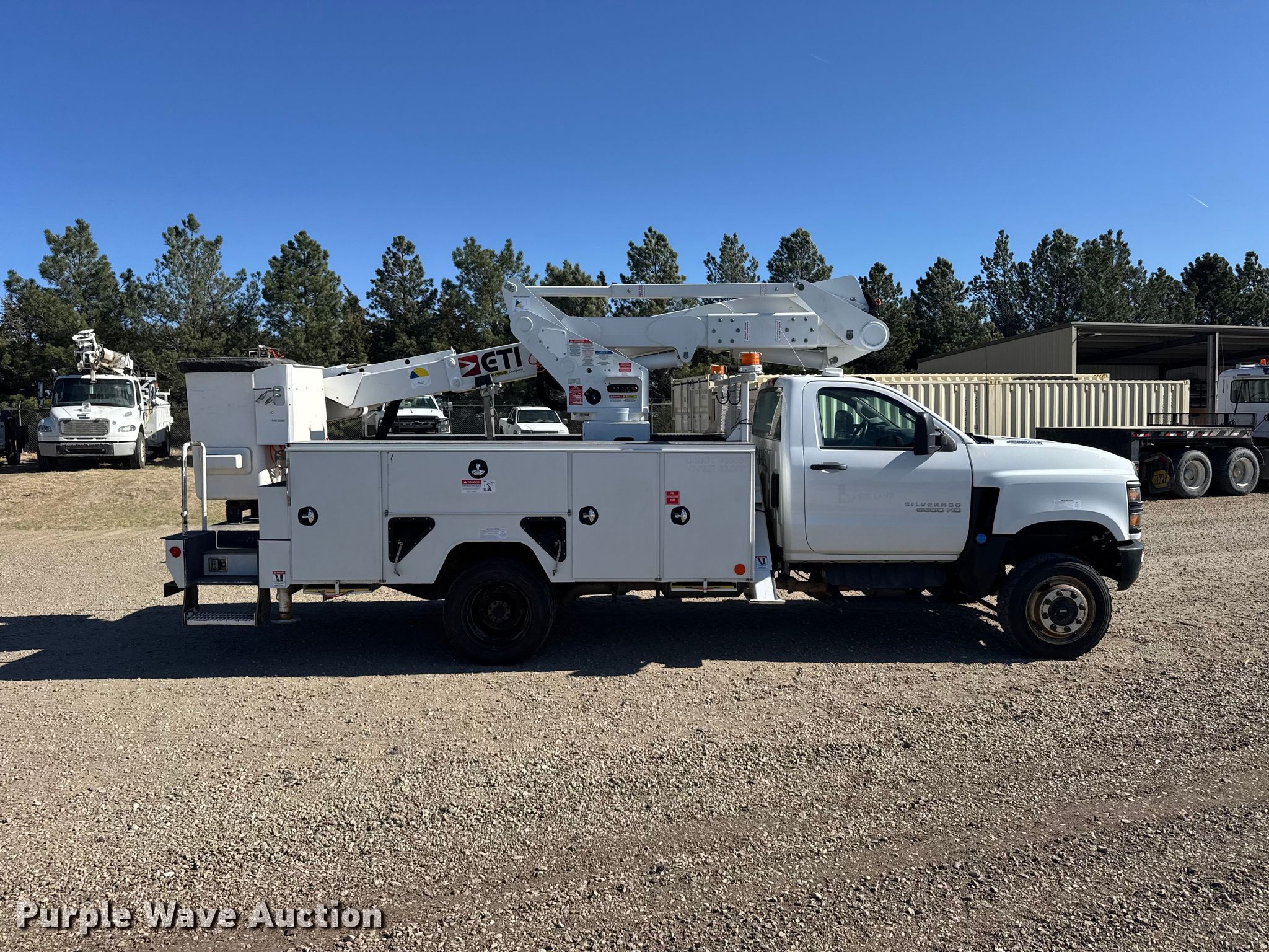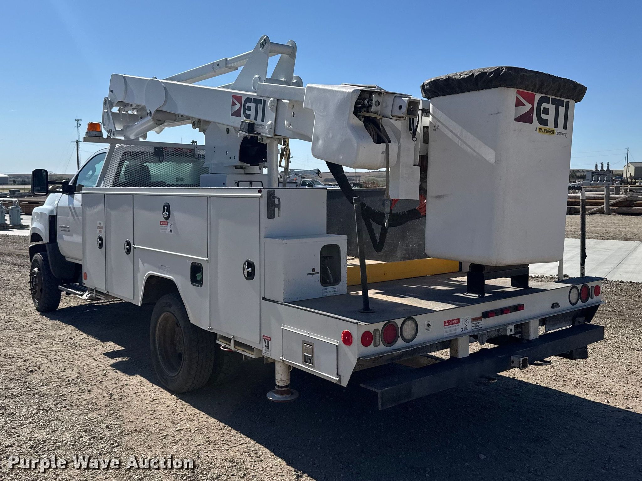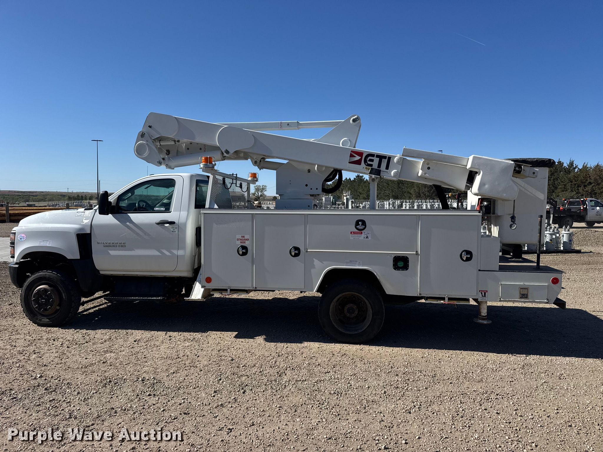 2020 Chevrolet 6500HD bucket truck. Miles: 66,282 on odometer, VIN: 1HTKJPVM4LH589234. Engine Duramax, Displacement: 6.6L, Cylinders: 8, Fuel type: Diesel, HP: 350. Transmission Automatic. Chassis Four wheel drive, Axles: Single, Suspension: Spring, Brakes: Hydraulic, PTO, GVWR: 22,500 lbs, Wheelbase: 165". Interior AC, Heat, Power locks, Cruise control. Features Bed Utility bed, ETI, Length: 14', Width: 96", Boom ETI ETCMH37IH, Serial: 0120CM716595, Maximum lift capacity: 400 lbs, Maximum lift height: 37', Boom type: Articulating, Insulated, Telescopic, Man basket, Boom controls Lower, Basket, Material handler, Certification valid through: 10/28/2026. Tires Size: 225/70R19.5. Kansas title. Title distribution may be delayed up to 14 days from verification of funds. Prairie Land Electric Coop, Inc.. Norton, KS 67654