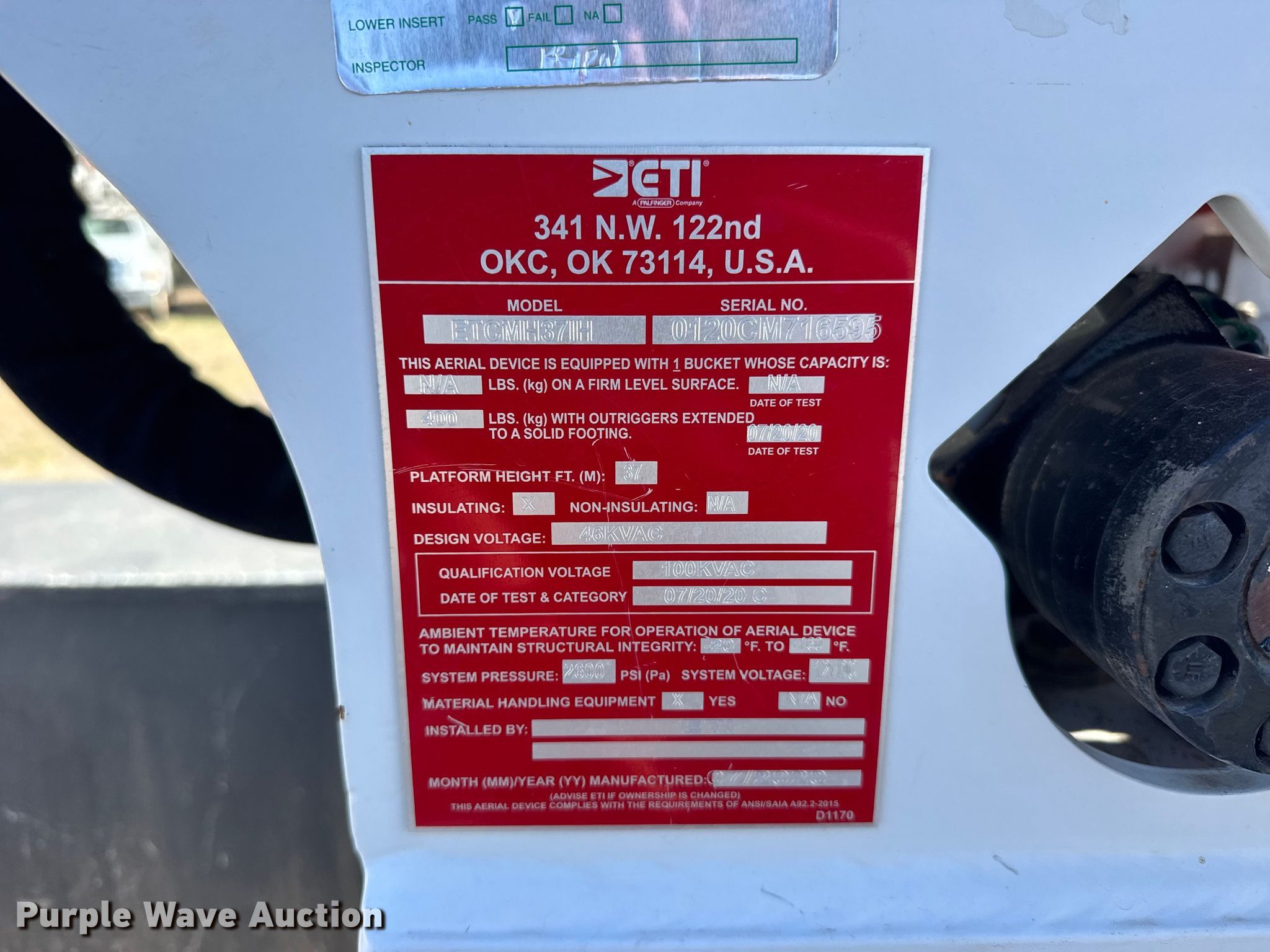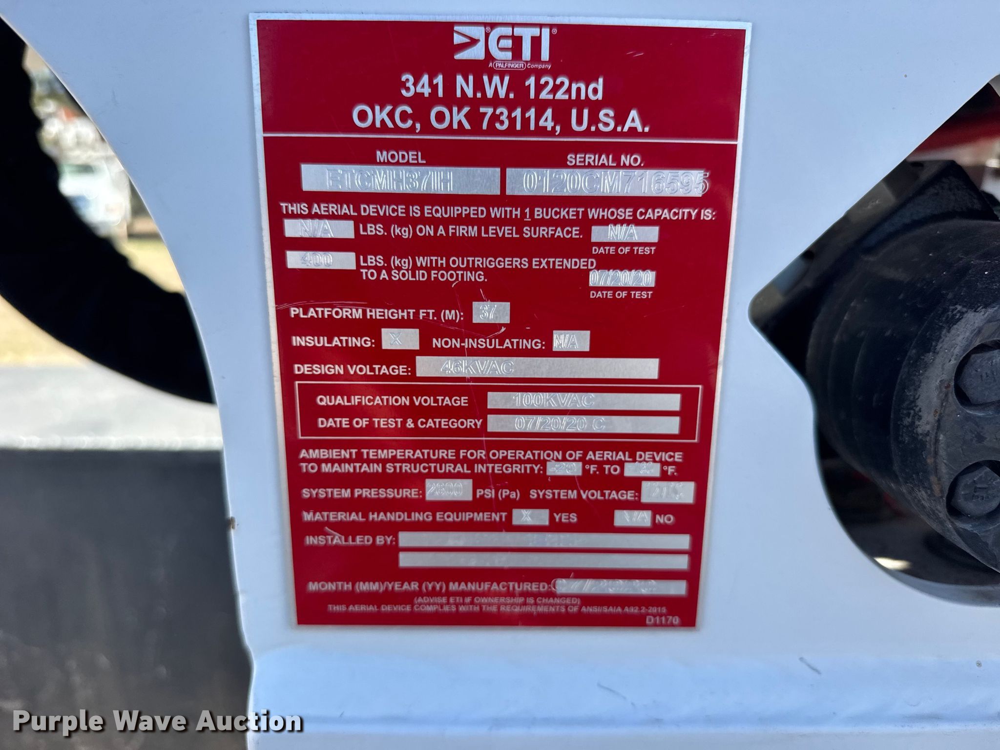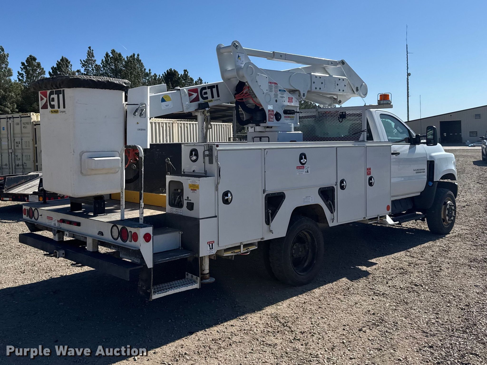 2020 Chevrolet 6500HD bucket truck. Miles: 66,282 on odometer, VIN: 1HTKJPVM4LH589234. Engine Duramax, Displacement: 6.6L, Cylinders: 8, Fuel type: Diesel, HP: 350. Transmission Automatic. Chassis Four wheel drive, Axles: Single, Suspension: Spring, Brakes: Hydraulic, PTO, GVWR: 22,500 lbs, Wheelbase: 165". Interior AC, Heat, Power locks, Cruise control. Features Bed Utility bed, ETI, Length: 14', Width: 96", Boom ETI ETCMH37IH, Serial: 0120CM716595, Maximum lift capacity: 400 lbs, Maximum lift height: 37', Boom type: Articulating, Insulated, Telescopic, Man basket, Boom controls Lower, Basket, Material handler, Certification valid through: 10/28/2026. Tires Size: 225/70R19.5. Kansas title. Title distribution may be delayed up to 14 days from verification of funds. Prairie Land Electric Coop, Inc.. Norton, KS 67654