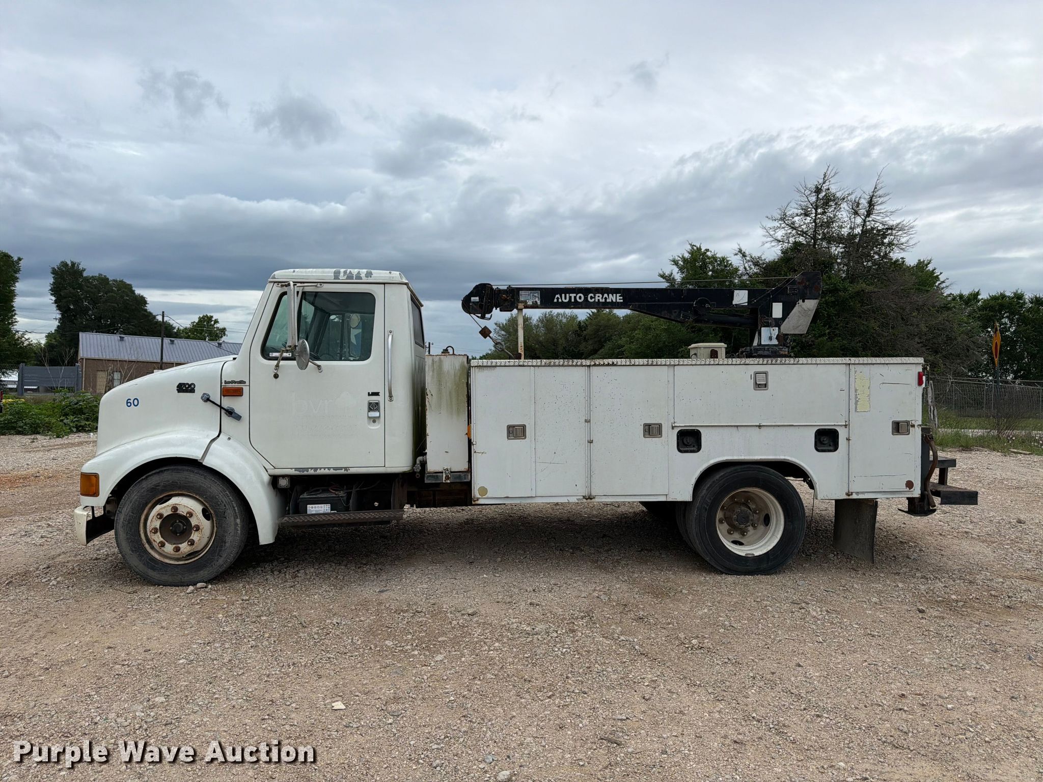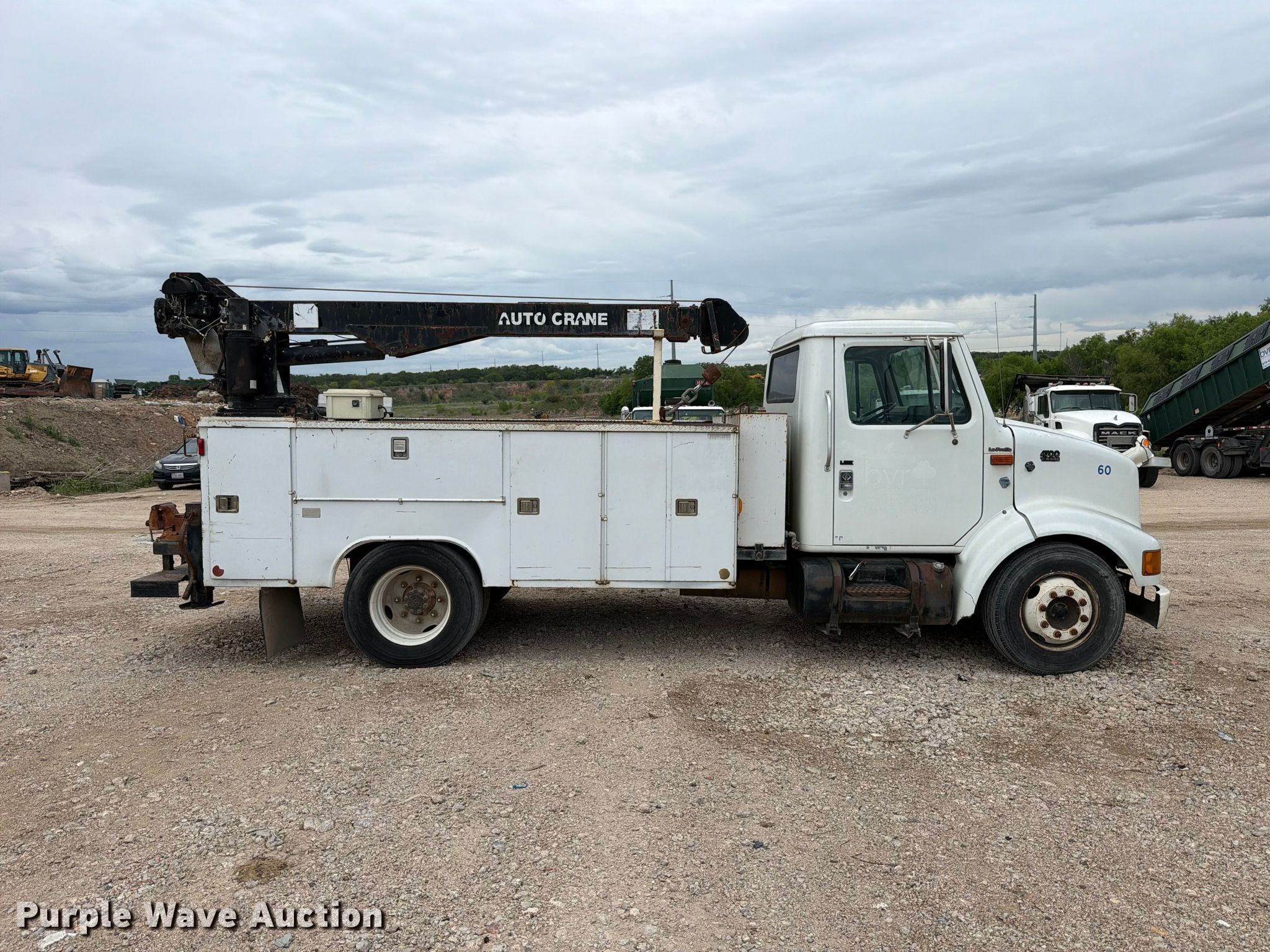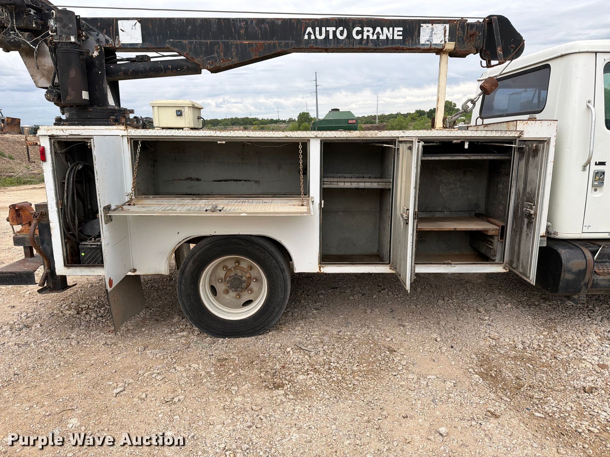 1999 International 4700 LPX utility / service truck. Miles: 270,653 on odometer, VIN: 1HTSMABM9XH664248. Engine International, Displacement: 7.3L, Cylinders: 8, Fuel type: Diesel. Transmission Automatic. Chassis Axles: Single, Suspension: Spring, Brakes: Hydraulic, Wheelbase: 183". Interior AC, Heat, Heated mirrors, Cruise control. Features Bed Utility bed, Rawson-Koenig C84DW94, Serial: 114347, Length: 11', Width: 94", Crane Auto Crane 5005EH, Maximum boom length: 22' Maximum lift capacity: 5,000 lbs, Fuel transfer tank. Tires Size: 265/70R19.5. Texas title. Title distribution may be delayed up to 14 days from verification of funds. Brannon Industrial Group. College Station, TX 77845