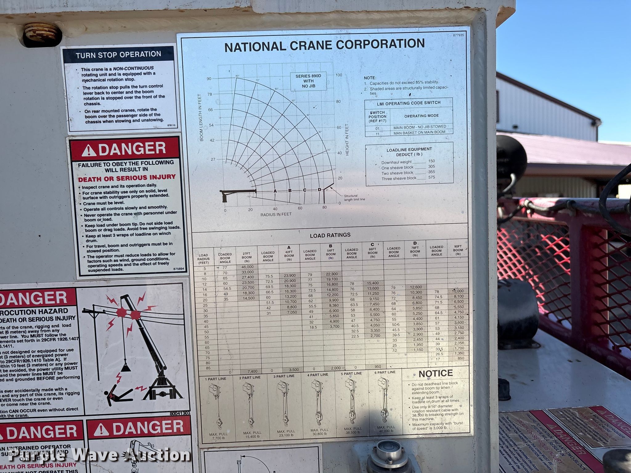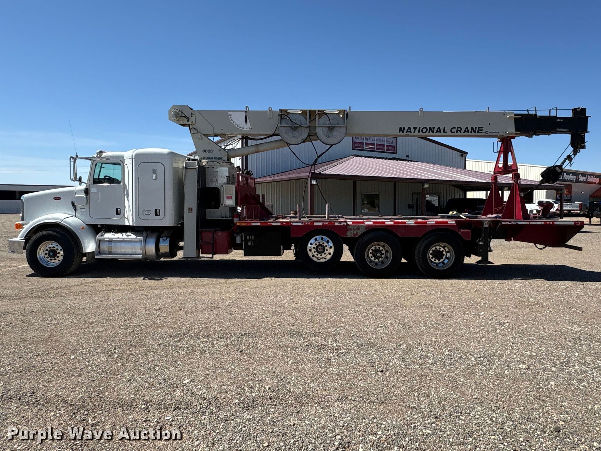 2014 Peterbilt 365 crane truck. Miles: 35,844 on odometer, Hours: 10,568 on meter, Hours: 5917 on second meter, VIN: 1NPSXPEX5ED227342. Engine Paccar MX-13, Displacement: 12.9L, Cylinders: 6, Fuel type: Diesel, HP: 485, Engine brake. Transmission Eaton Fuller 8LL, Manual, Speed: 10. Chassis Axles: Triple, Pusher axle, Differential lock: Full, Suspension: Air, Brakes: Air, PTO, GVWR: 72,350 lbs FAWR: 20,000 lbs, IAWR: 20,000 lbs, RAWR: 20,000 lbs, Lift axle GAWR: 12,350 lbs. Interior AC, Heat, Heated mirrors, Power windows, Cruise control, Auxiliary controls. Features Bed Flatbed, Length: 25', Width: 8', Crane National crane 800D Serial: 298902, Boom Telescopic, Maximum boom length: 78' Sections: 4, Maximum lift capacity: 46,000 lbs, Boom controls, Crane block, Crane ball & hook, Certification valid through: 04/2026, Lift chart. Tires Front: 425/65R22.5, Rear: 11R22.5D, Lift axle: 295/75R22.5. Oklahoma title. Seller is a Texas licensed motor vehicle dealer. The buyer may be required to pay sales tax and/or registration fees to the dealer prior to taking possession. Buyers may be required to provide identification to the licensed dealer to comply with state laws. Title will be assigned and distributed by the dealer. Please contact the seller for distribution questions. Lubbock Specialty Trucks. Wolfforth, TX 79382
