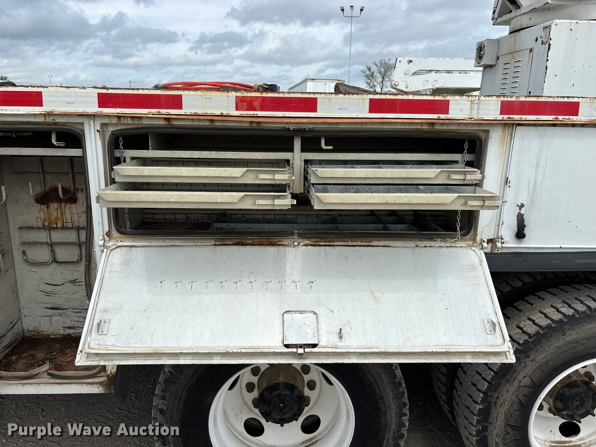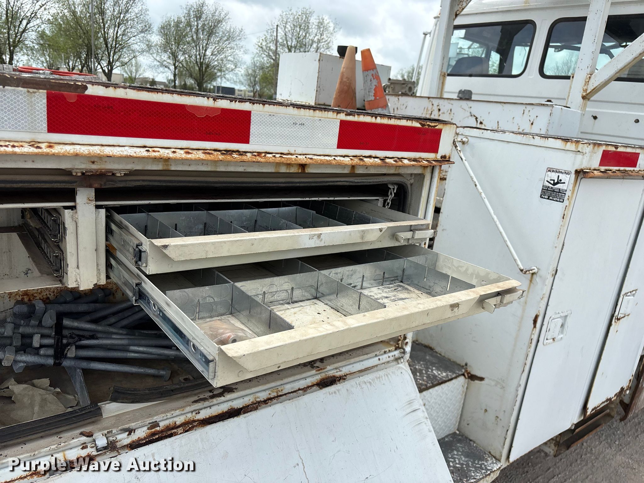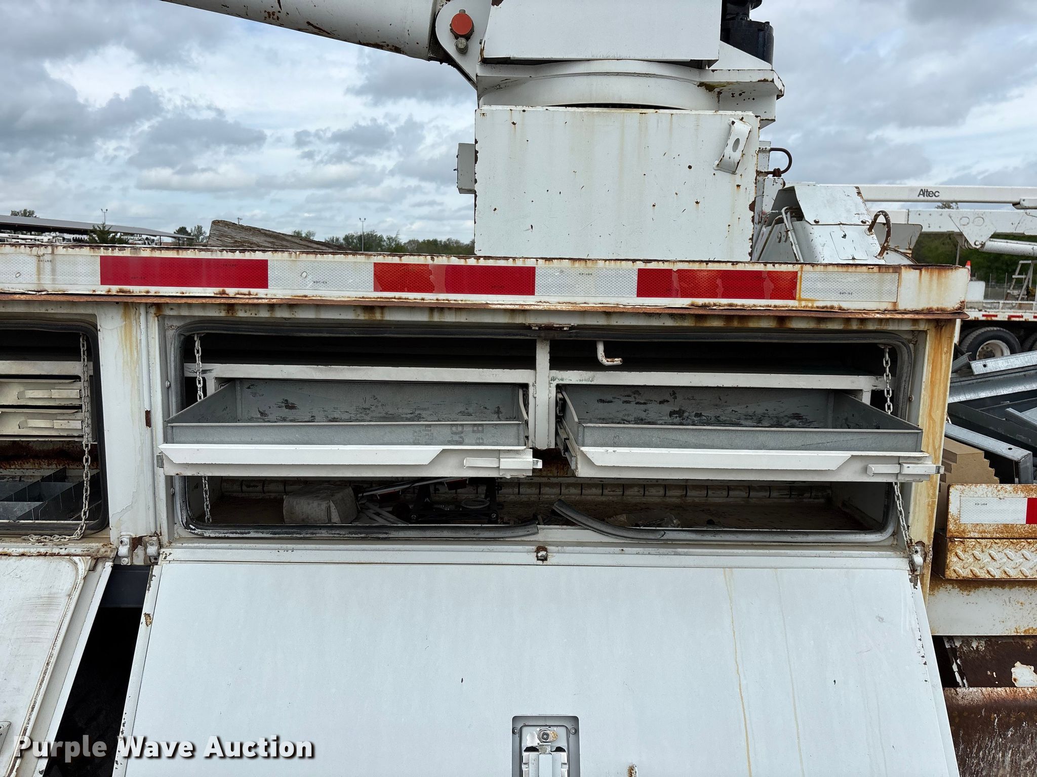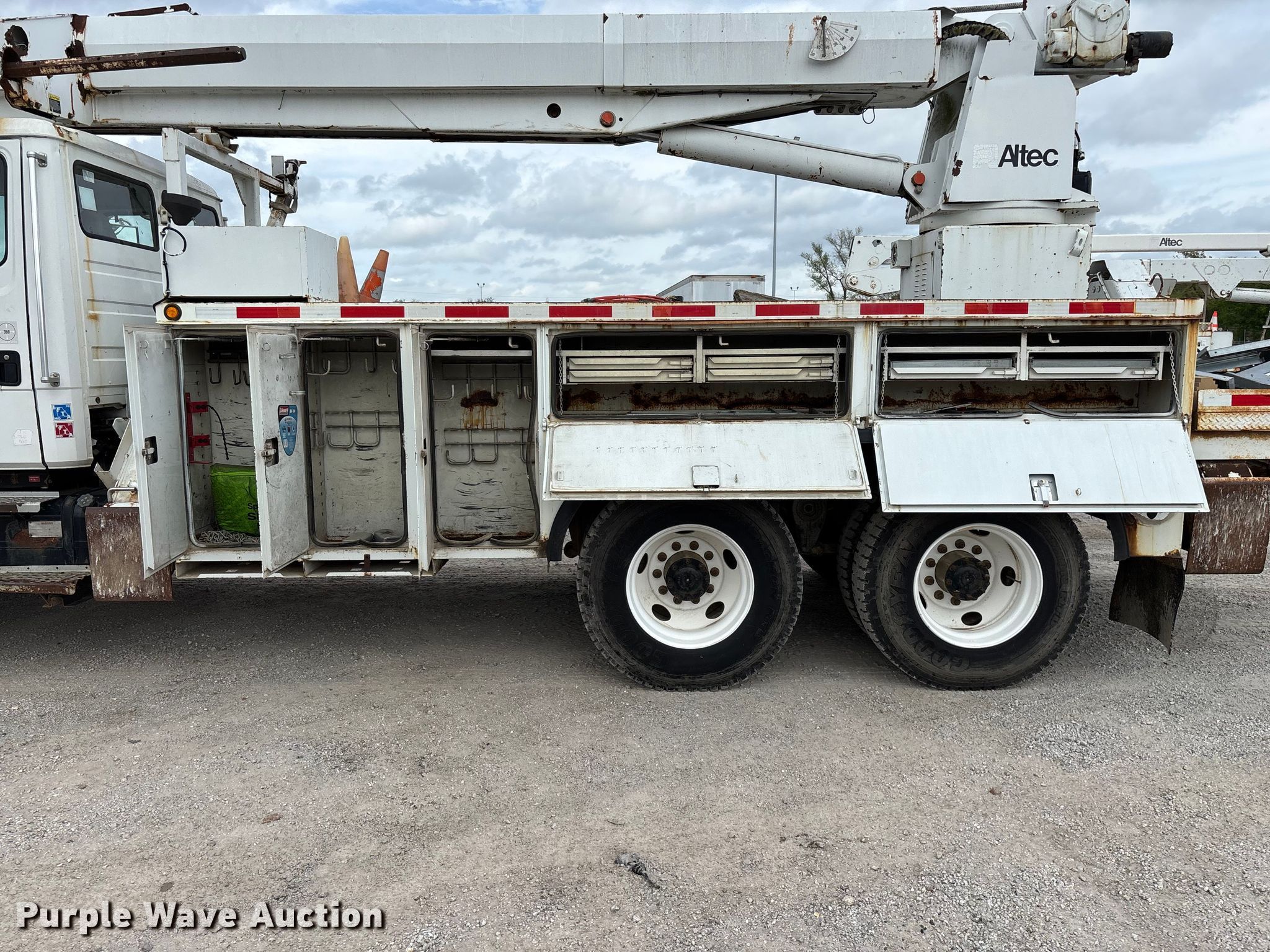 2002 Freightliner FL80 digger derrick truck. Miles: 148,371 on odometer, Hours: 2,375 on meter, VIN: 1FVHBXAK62HK95927, Unit #: 443. Engine Caterpillar 3126, Serial: CKM42554, Displacement: 7.2L, Cylinders: 6, Fuel type: Diesel, HP: 246, kW: 330. Transmission Automatic. Chassis Axles: Tandem, Differential lock: Full, Suspension: Spring, Brakes: Air, PTO, GVWR: 50,000 lbs. Interior AC, Heat, Cruise control, Brake controller. Features Bed Altec, Serial: 37-74778 10/02, Length: 15' 2", Width: 95", Height: 46", Boom Altec D3055T R, Serial: 0897CA0199, Maximum lift capacity: 26,570 lbs, Maximum lift height: 55', Boom type: Insulated, Telescopic, Boom controls Platform, Material handler, Pole guide. Tires Front: 315/80R22.5, Rear: 11R22.5. Notes Contents not included, Decals will be removed prior to auction, Auger stow seized, will not let down, Possible AC issues, may need recharged, Dash warning indicator: ABS. Missouri title. Title distribution may be delayed up to 14 days from verification of funds. BBC Electrical Services. Joplin, MO 64804