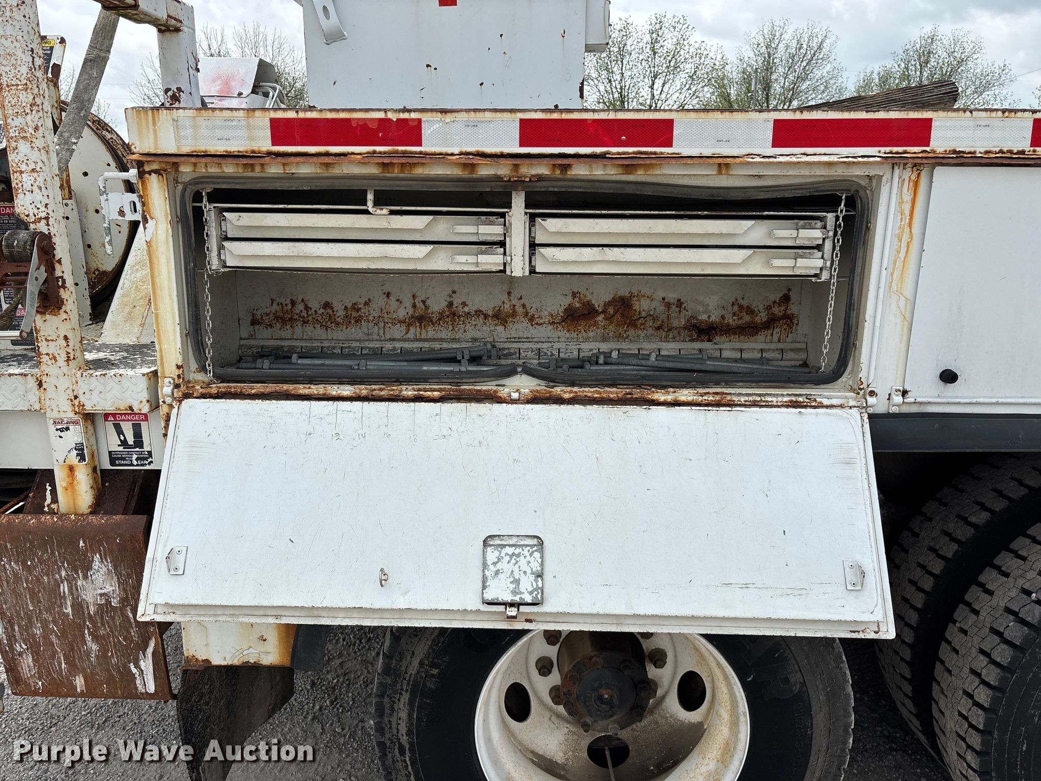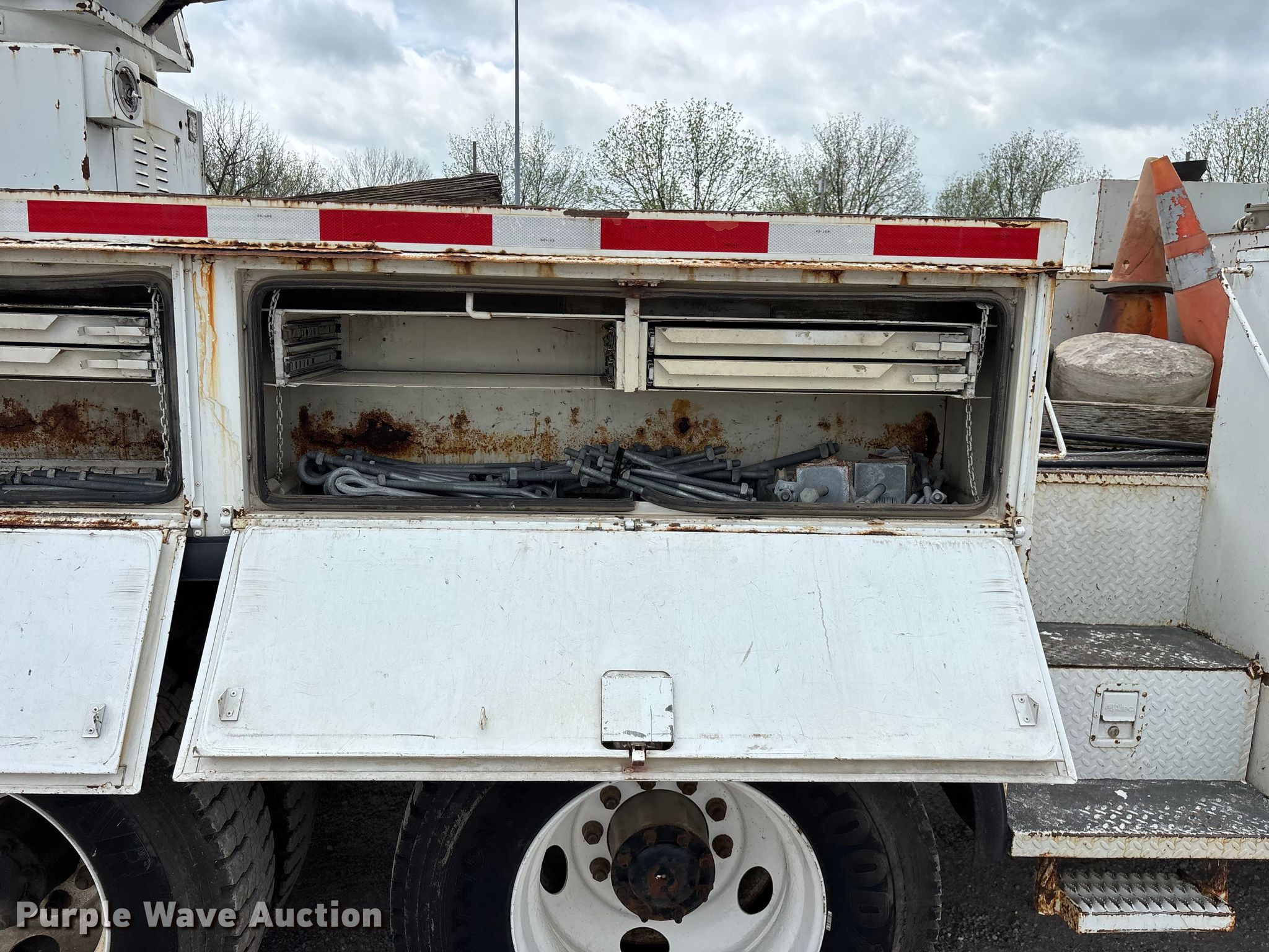 This 2002 Freightliner FL80 digger derrick truck will sell to the highest bidder regardless of price.