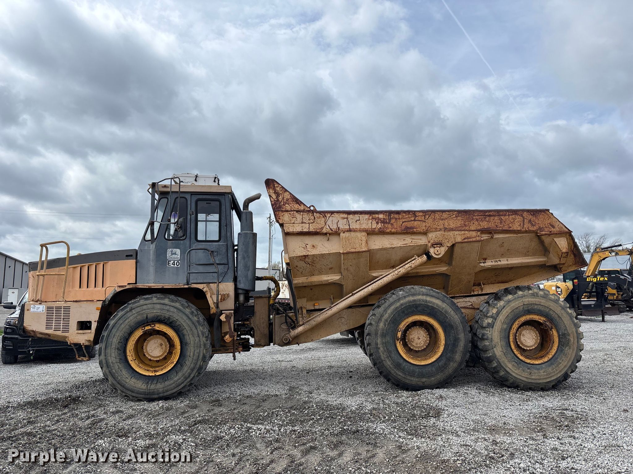 This 2000 John Deere 250C articulated haul truck will sell to the highest bidder regardless of price.