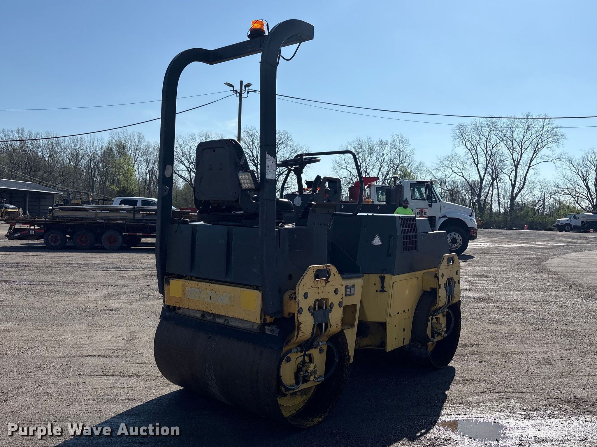 1999 Bomag BW120 AD-3 double drum roller. Hours: 1,669 on meter, Serial: 101170514292. Engine Deutz F2L 1011F, Displacement: 1.3, Cylinders: 2, Fuel type: Diesel, HP: 28. Transmission Hydrostatic. Operators station OROPS. Features Drum type: Smooth, Vibratory system: Double, Front drum Width: 47", Diameter: 27", Rear drum Width: 47", Diameter: 27", Drum scrapers: Front, Rear, Water spray applicator: Front, Rear, Dual propel system. Brooks Construction. Fort Wayne, IN 46809