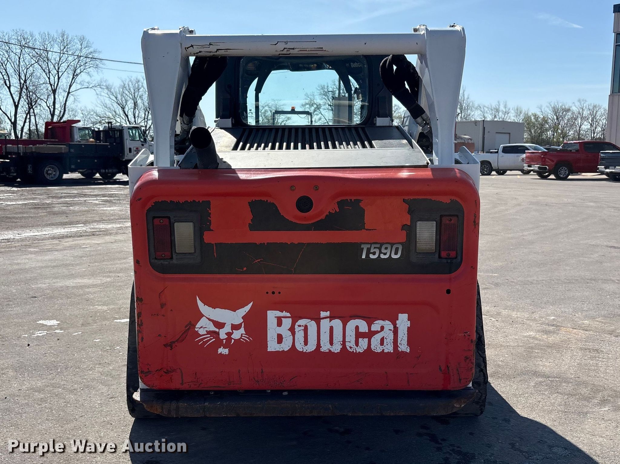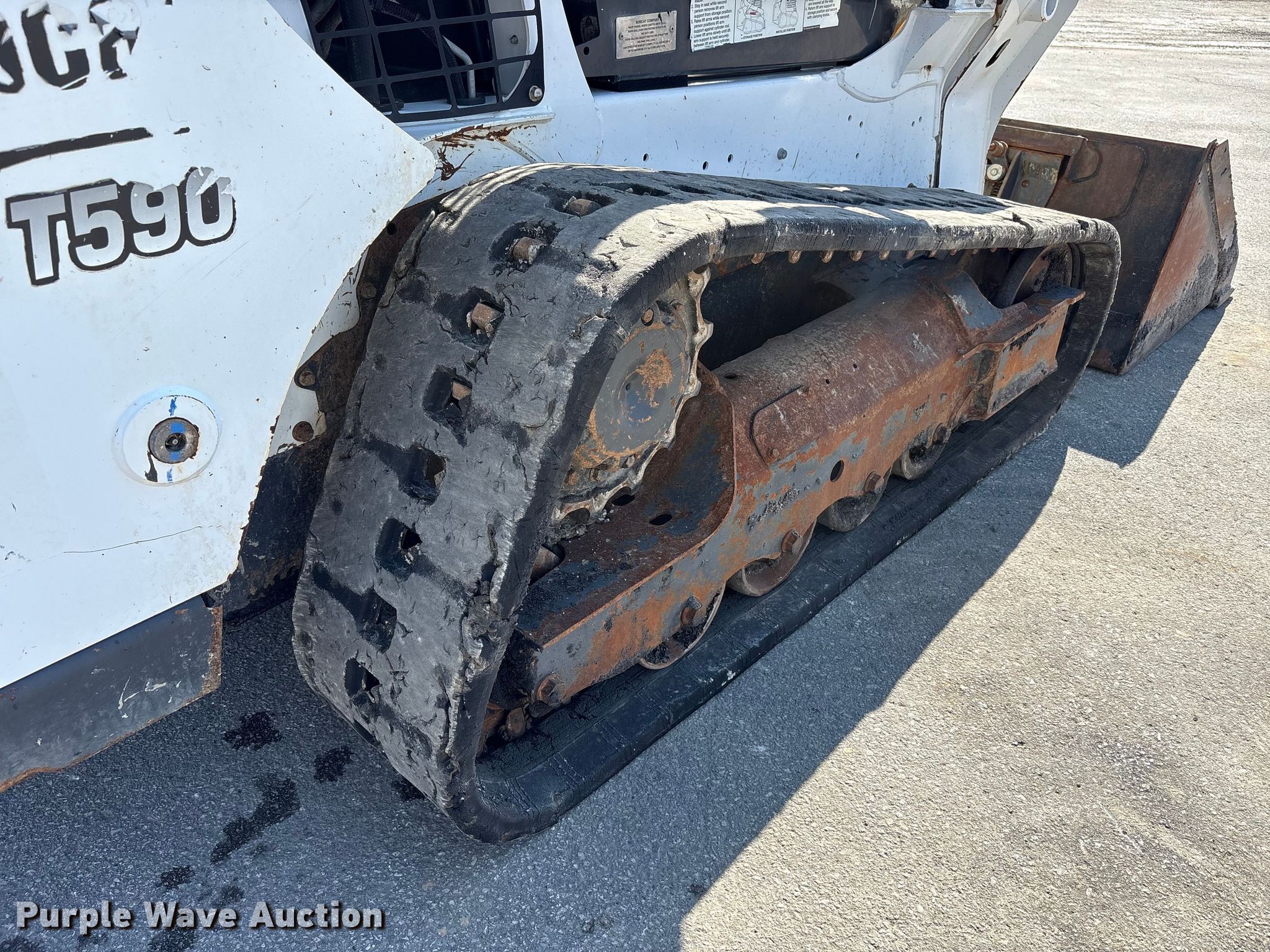 Purple Wave is selling a used Tracked Skid Steer Loader in Indiana. This item is a Bobcat T590 tracked skid steer loader with the following: Hours: 5,116 on meter, Serial: ALJU30978