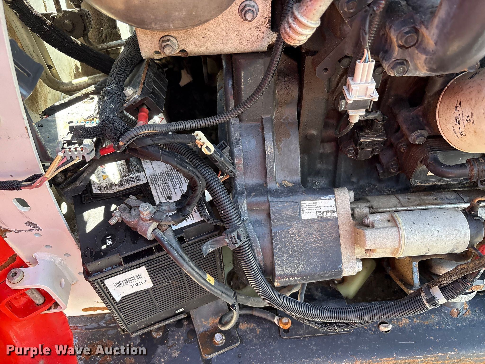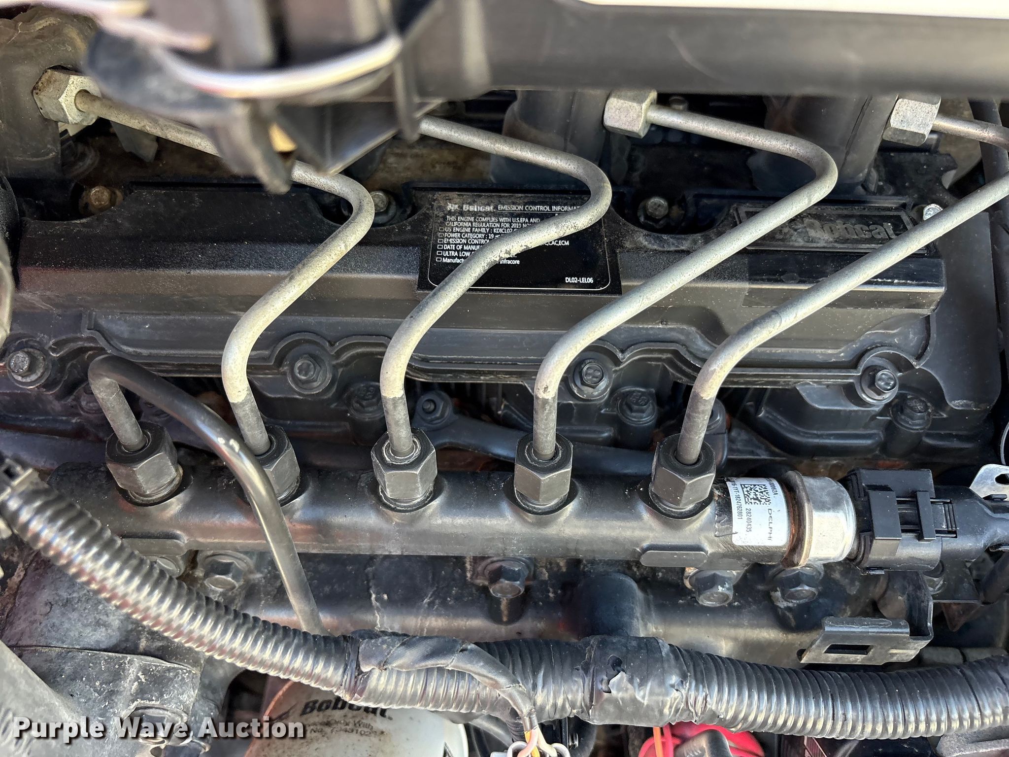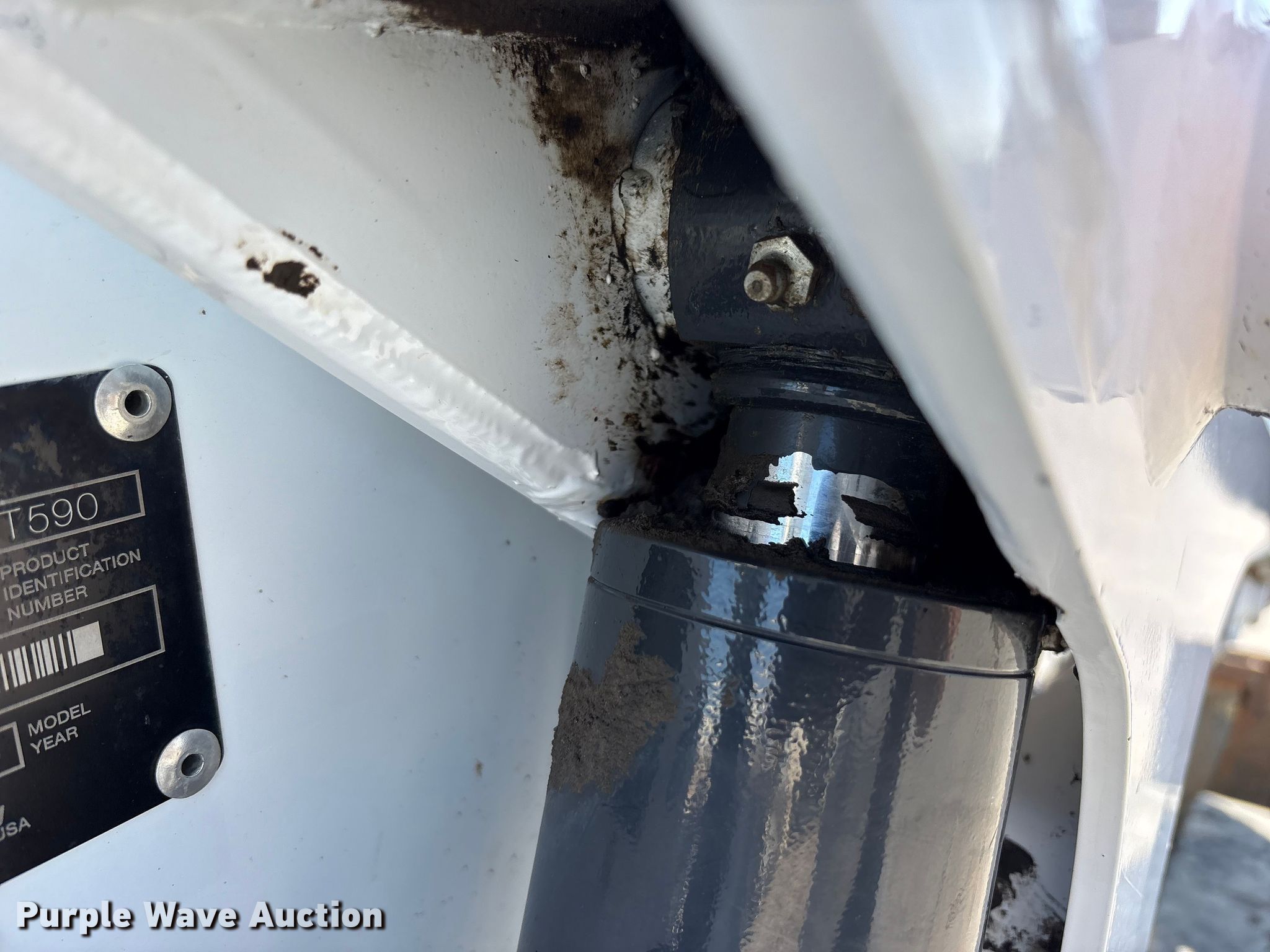 Bobcat T590 tracked skid steer loader. Hours: 5,116 on meter, Serial: ALJU30978. Engine Bobcat, Cylinders: 4, Fuel type: Diesel. Transmission Hydrostatic. Operators station OROPS, Bucket control: Hand, Pattern changer, Electronic Monitoring System panel. Features Auxiliary hydraulics, Quick coupler: Hydraulic, Bucket Width: 67", Cutting edge: Bolt-on. Tracks Width: 12.5". Brooks Construction. Fort Wayne, IN 46809