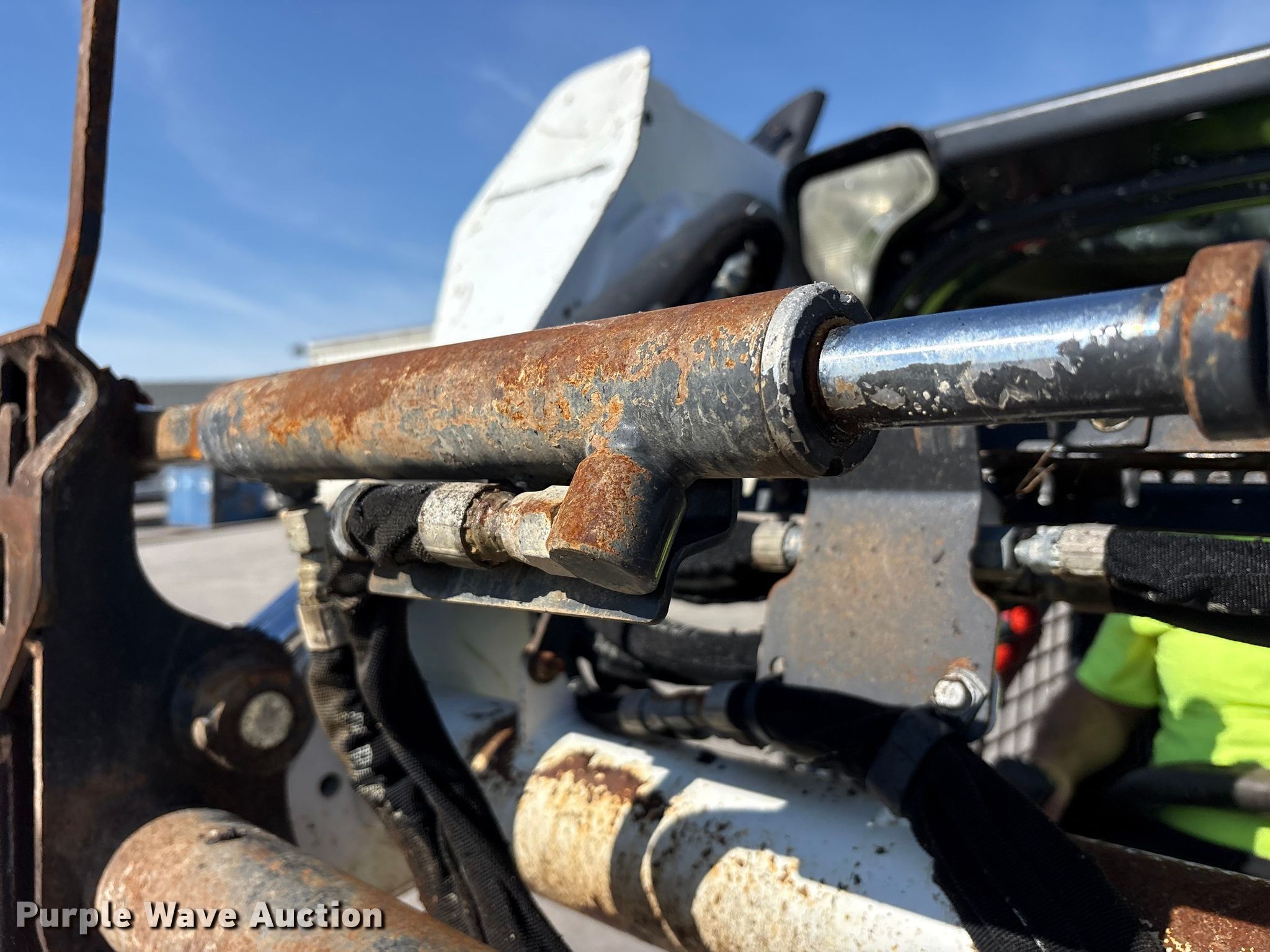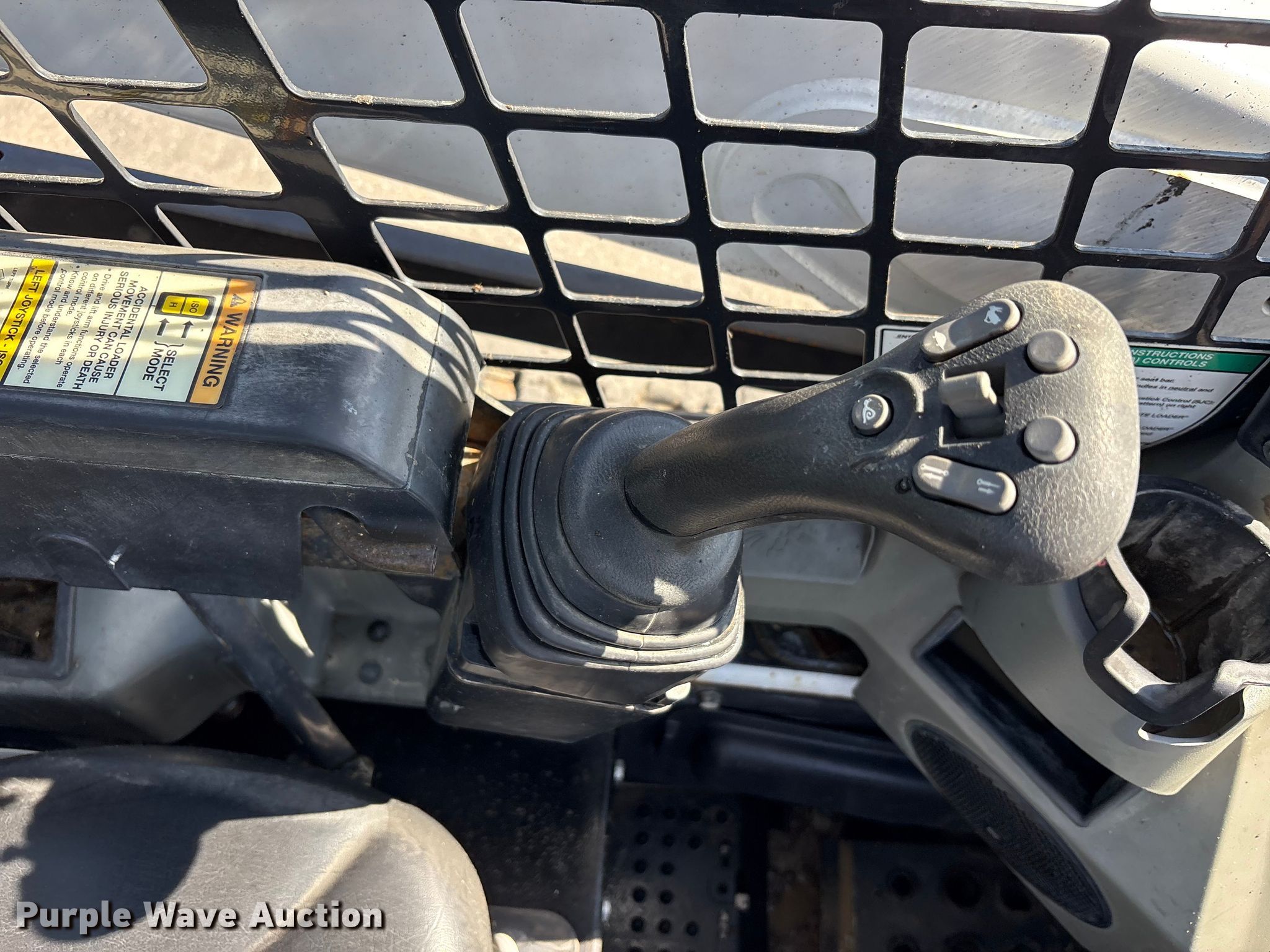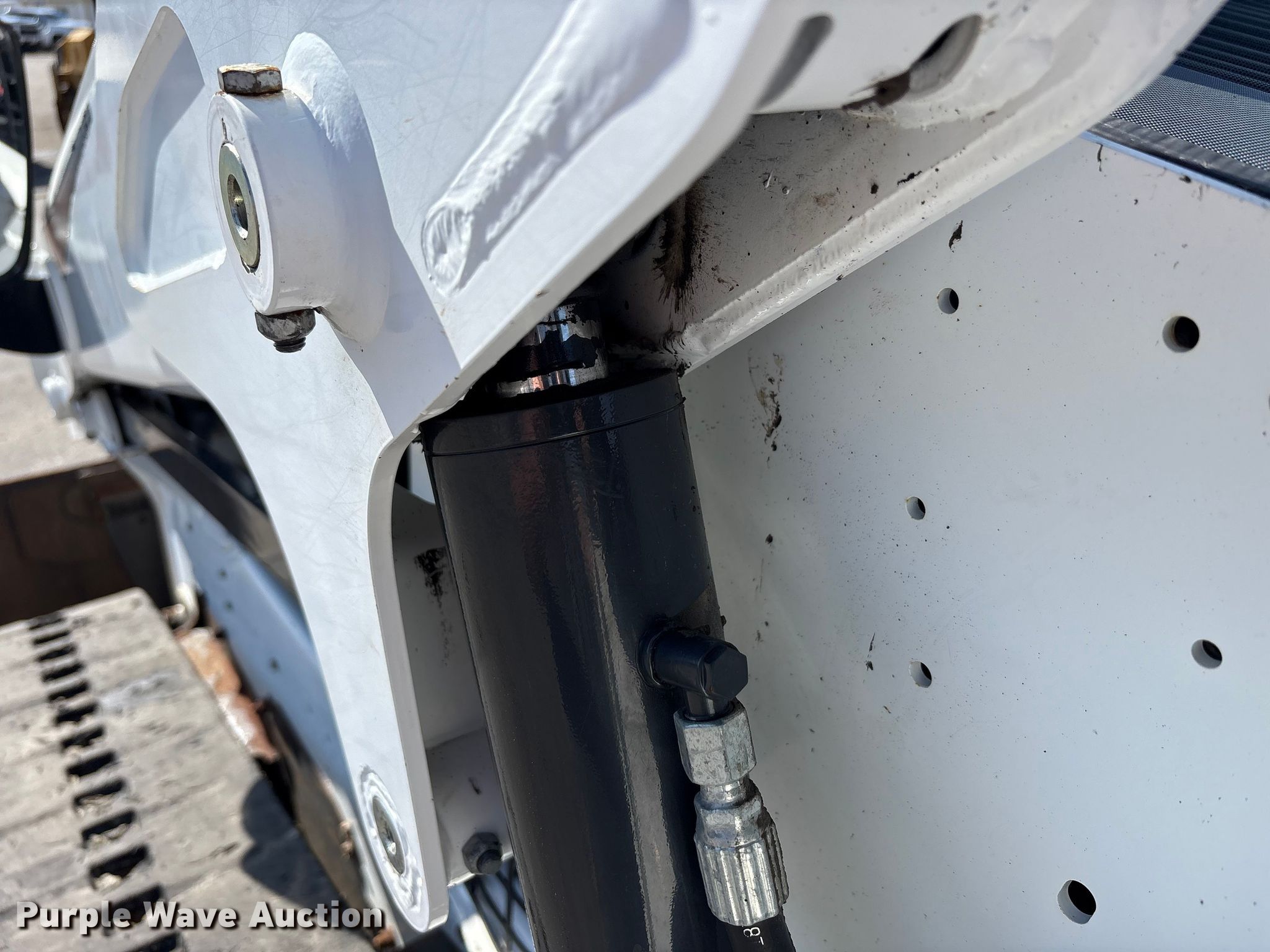 Bobcat T590 tracked skid steer loader. Hours: 5,116 on meter, Serial: ALJU30978. Engine Bobcat, Cylinders: 4, Fuel type: Diesel. Transmission Hydrostatic. Operators station OROPS, Bucket control: Hand, Pattern changer, Electronic Monitoring System panel. Features Auxiliary hydraulics, Quick coupler: Hydraulic, Bucket Width: 67", Cutting edge: Bolt-on. Tracks Width: 12.5". Brooks Construction. Fort Wayne, IN 46809