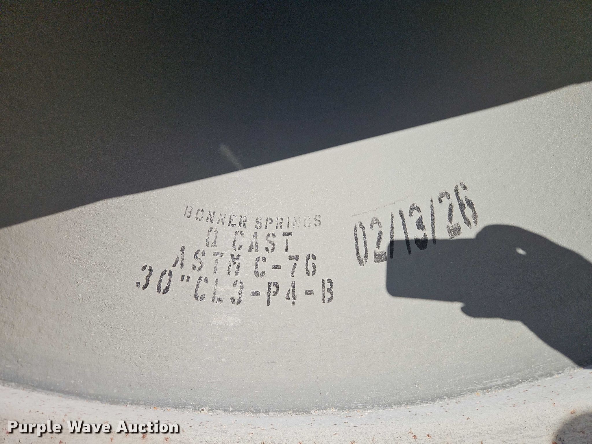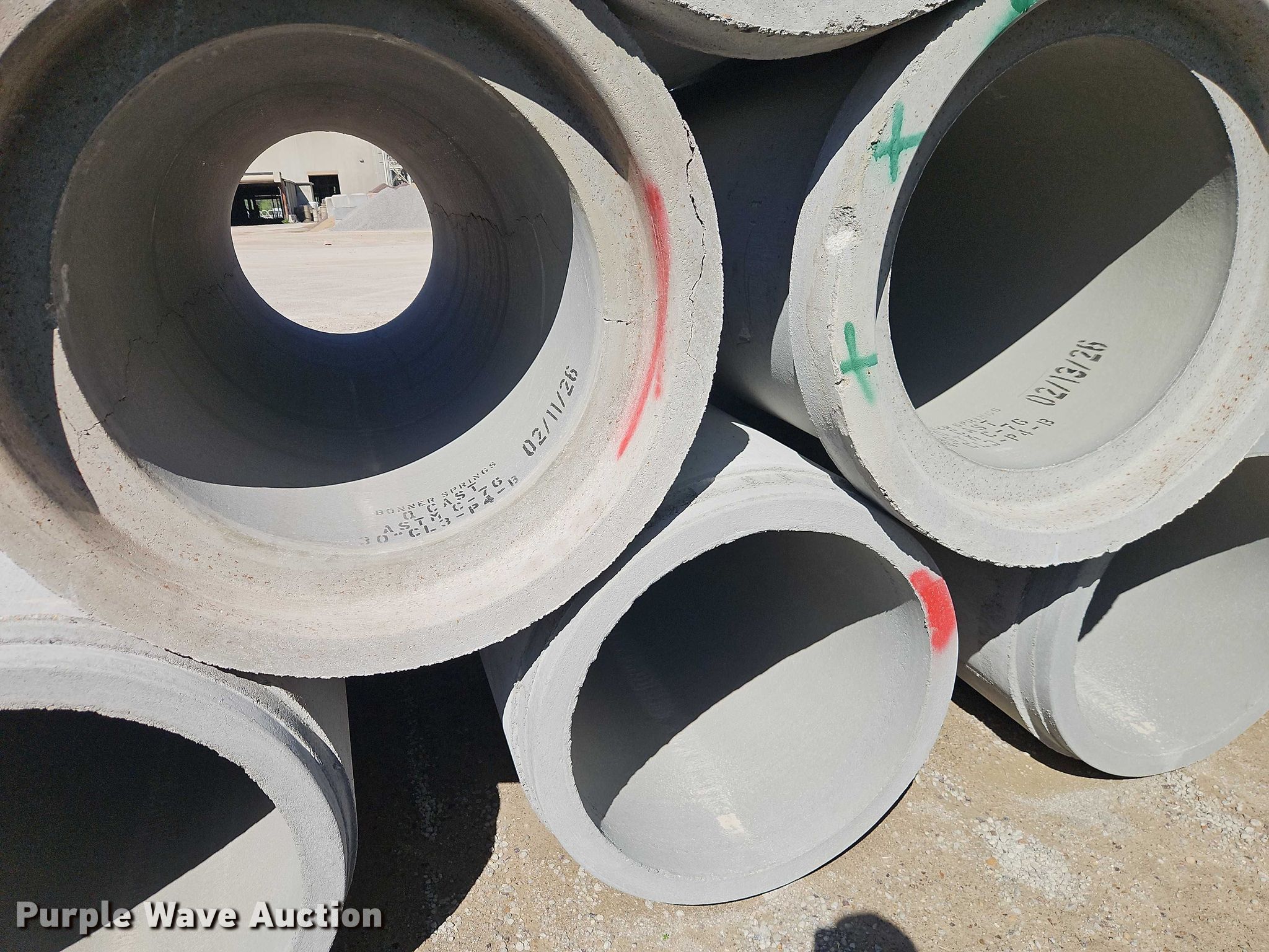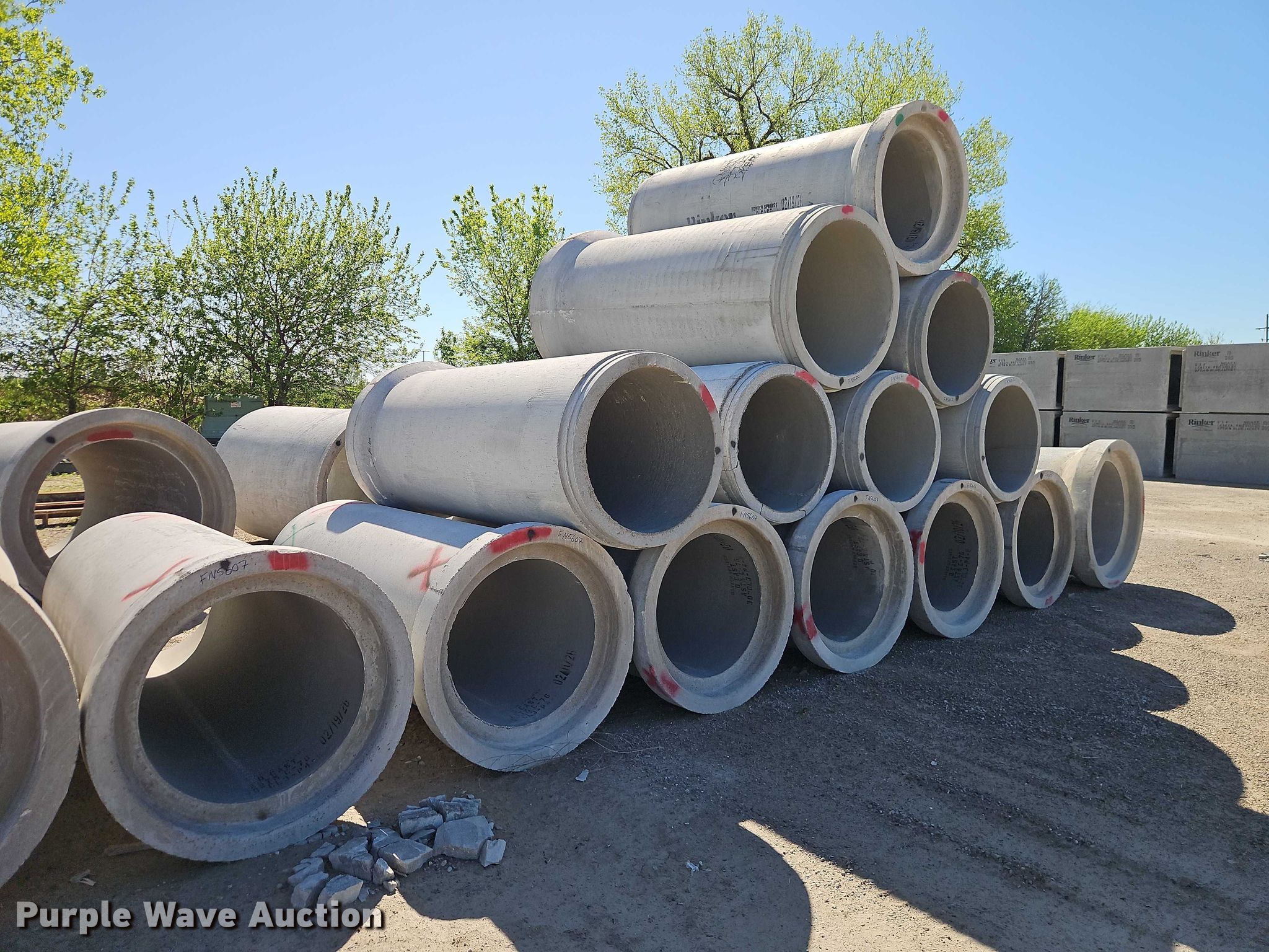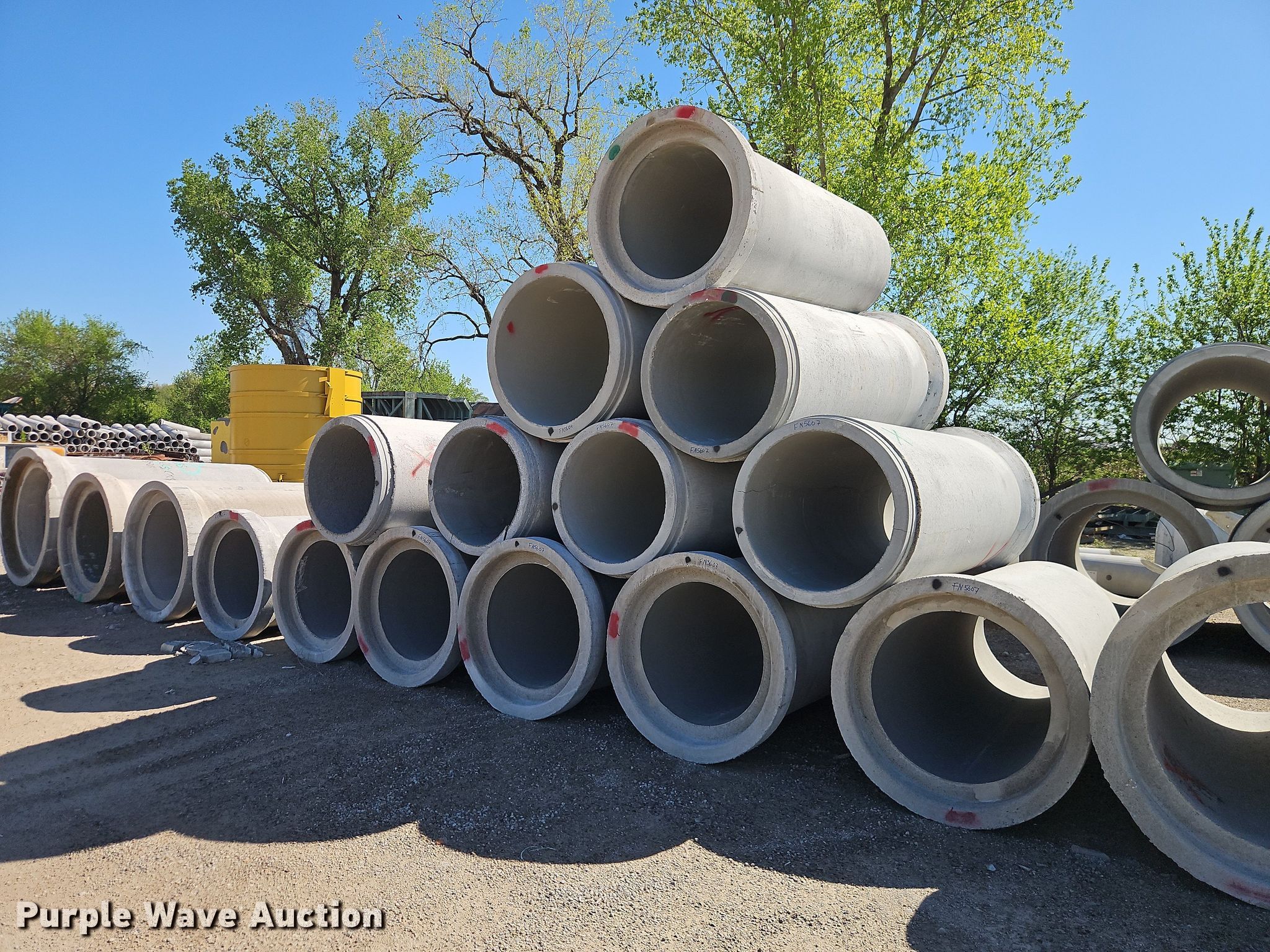 Purple Wave is selling a used Pipe in Kansas. This item is a Concrete pipe with the following: Pipe, (13) joints of 30" x 8'