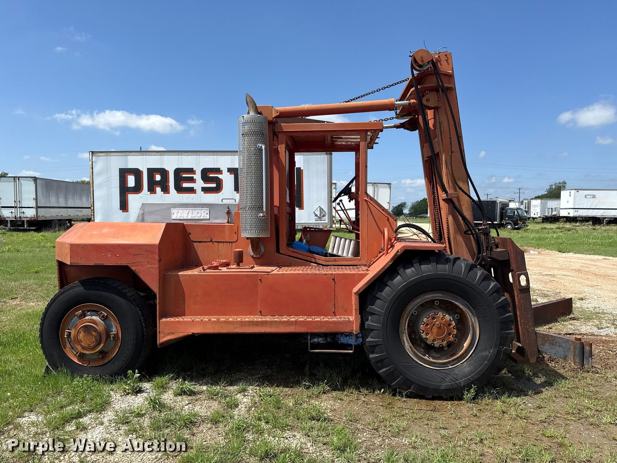 Purple Wave is selling a used Strt. Mast Rough Terr. Forklift in Oklahoma. This item is a Taylor 180 forklift with the following: Hours: 1,136 on meter