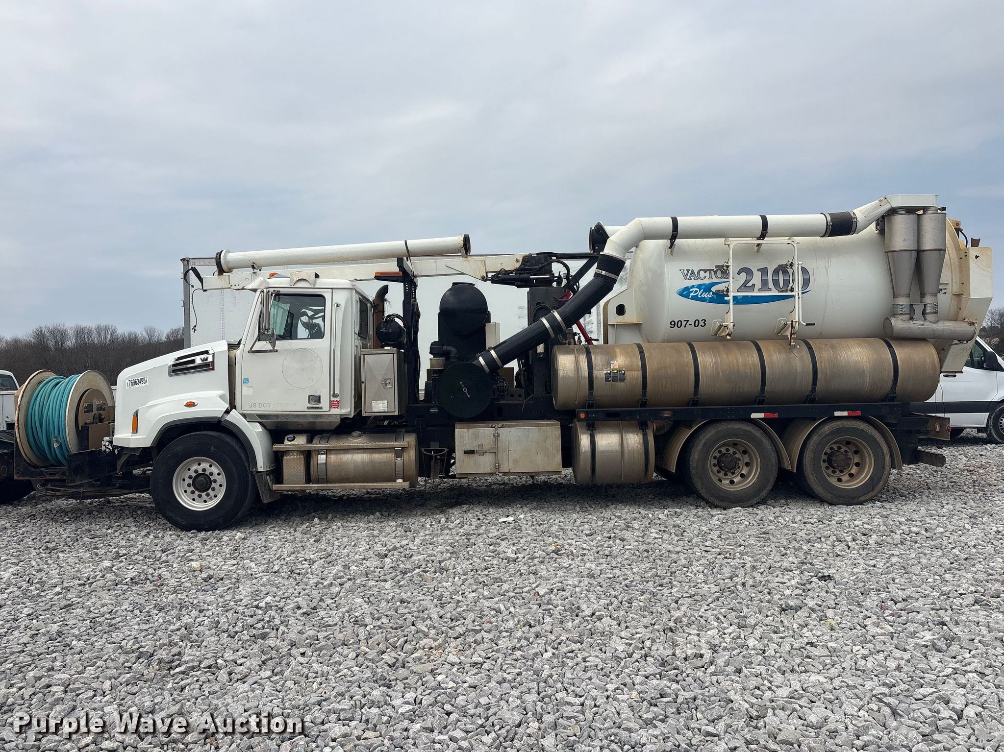 2016 Western Star 4700 sewer jetter truck. Miles: 64,481 on odometer, Miles: Actual unknown, VIN: 5KKHAXCY8GPHG8317, Unit #: 76963495. Engine Cummins, Displacement: 8.9L, Cylinders: 6, Fuel type: Diesel. Transmission Allison, Automatic. Chassis Axles: Tandem, Differential lock: Full, Suspension: Air, Brakes: Air, PTO, GVWR: 64,000 lbs. Interior AC, Heat, Heated mirrors, Cruise control. Features Bed Vactor 2112P-18, Serial: 16-04V-16158, Length: 25', Width: 98", Capacity: 2,100 gallons, Rear manway, Rear outlet: 6", Water pump Vactor Plus 2100, PSI: 2100, Hose reel Front, Diameter: 1", Telescopic boom. Tires Front: 425/65R22.5, Rear: 11R22.5. Notes Dash warning indicator: Check engine, Stop engine, Windshield chipped or cracked, Dead battery, Rollover damage, Unknown operating condition Unit must be towed or hauled. Buyer responsible for all aspects of loadout and removal. Insurance salvage, stored at a secured facility. Please review REQUIRED REMOVAL INSTRUCTIONS. Titles will be distributed after confirmation of payment and removal. Arkansas title. Mileage has not been verified. Exempt will be written in the odometer disclosure on the title. Title distribution may be delayed up to 30 days from verification of funds. Insurance Salvage. 15976 Bill Campbell Road. Prairie Grove, AR 72753