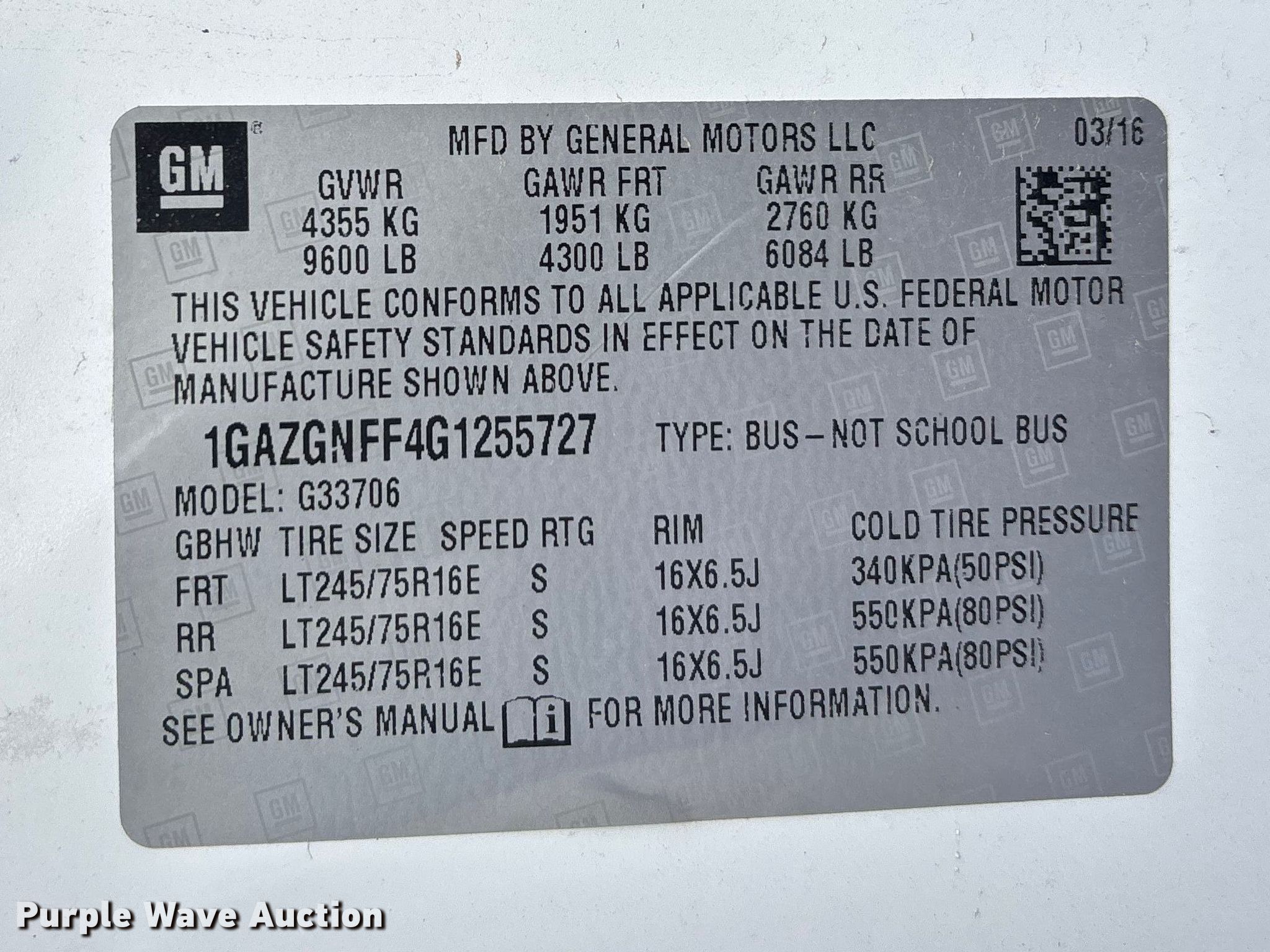 • VIN: 1GAZGNFF4G1255727