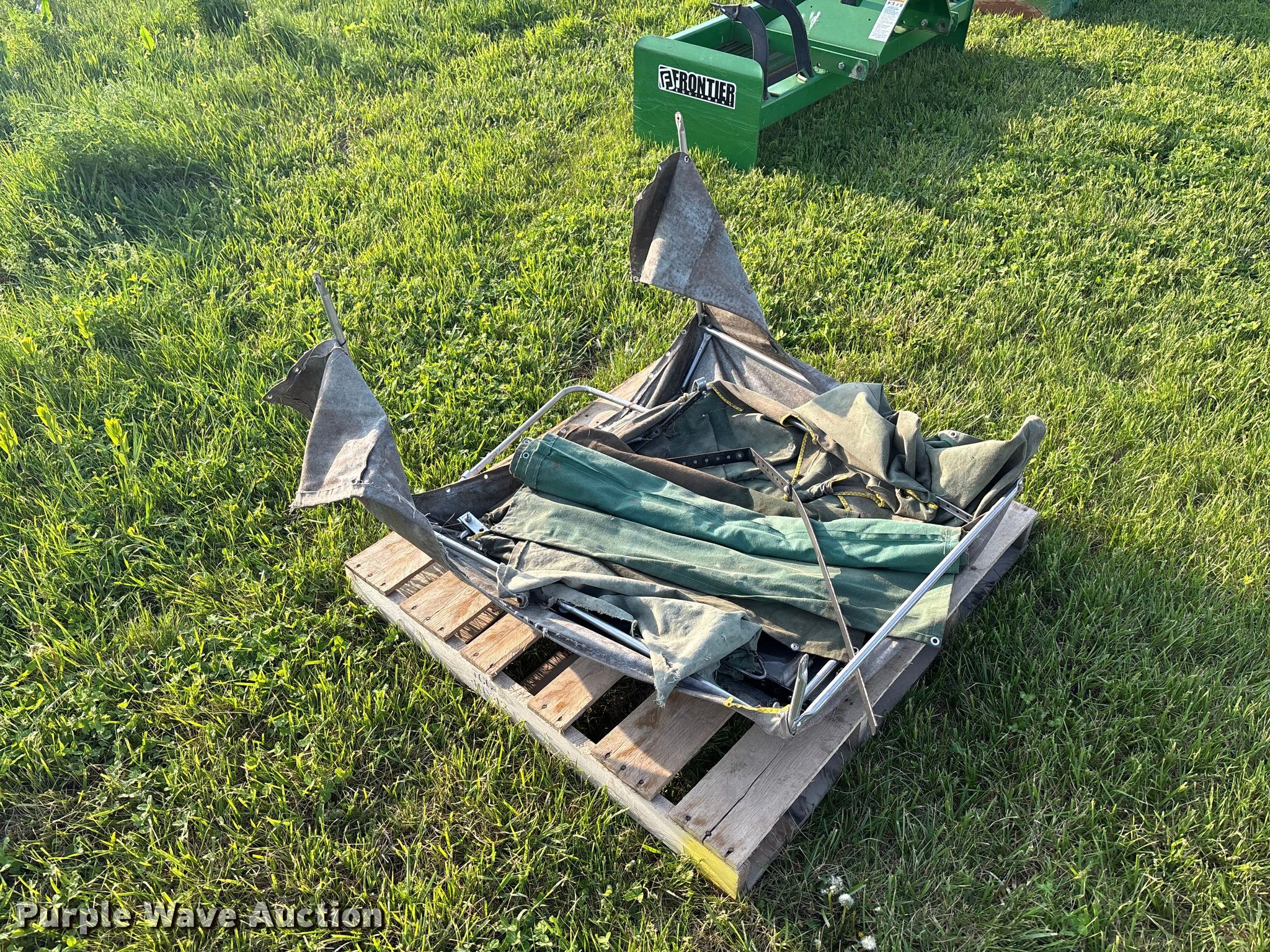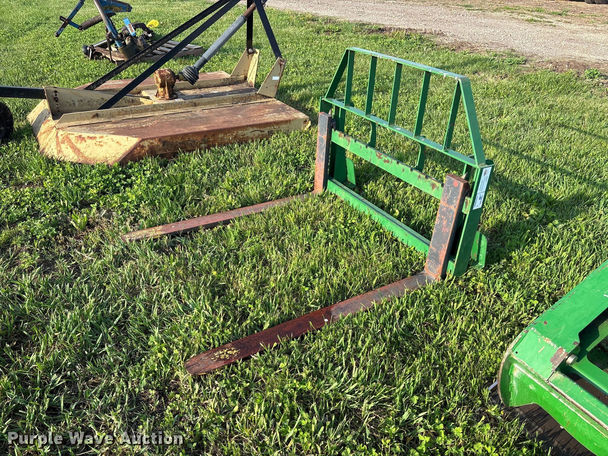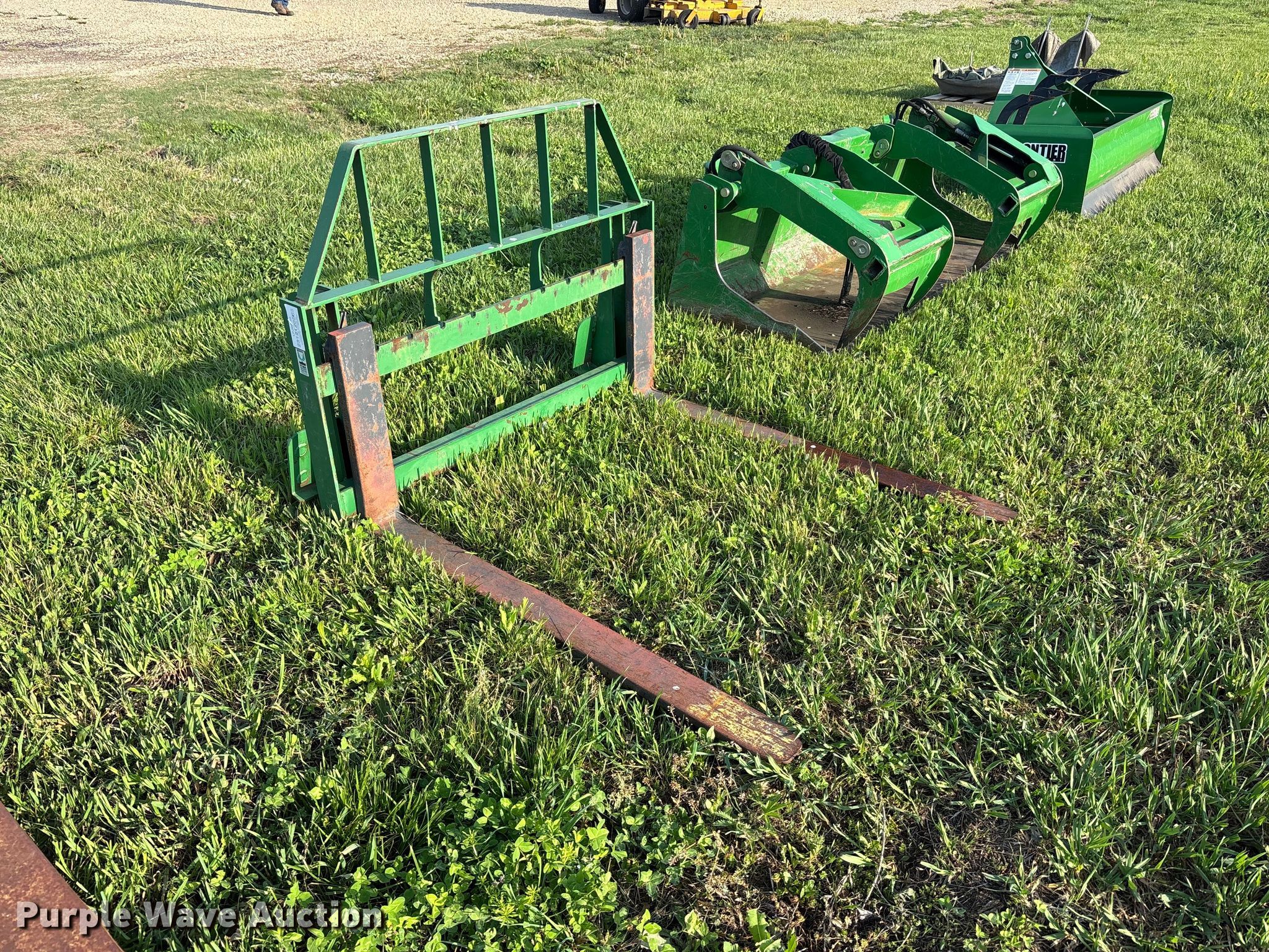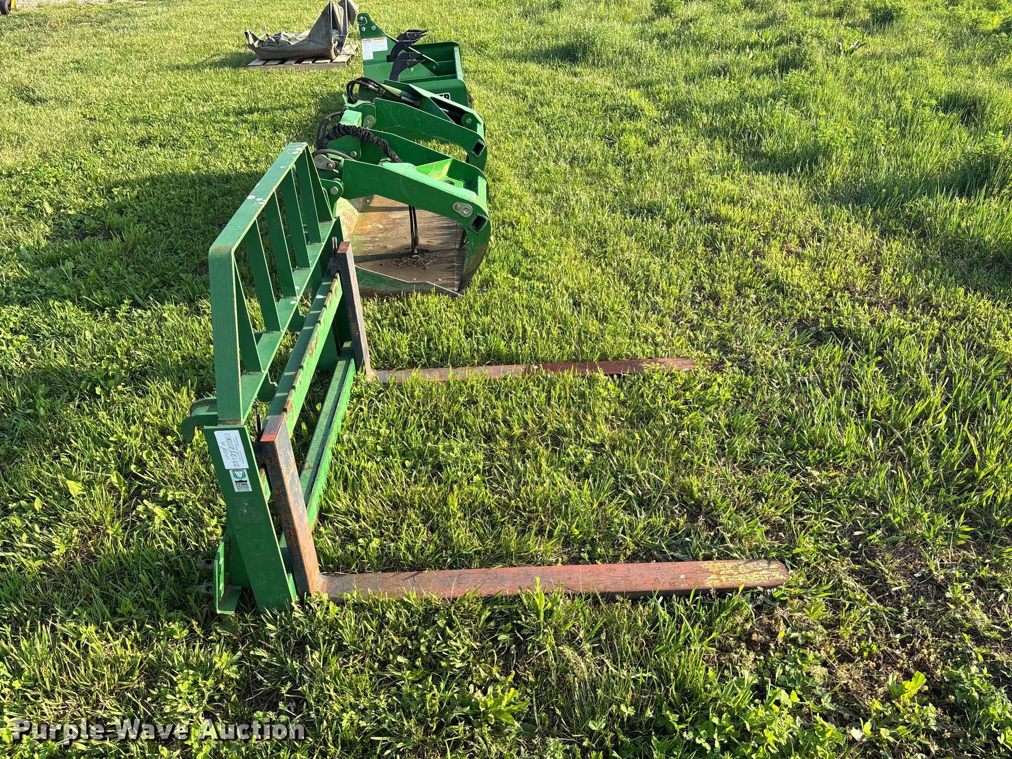 2007 John Deere 4520 MFWD tractor. Hours: 1,650 on meter, Serial: LV4520H440337. Engine John Deere, Cylinders: 4, Fuel type: Diesel. Transmission Manual, Differential lock. Features PTO: 540, Three point Top link, Hydraulic remote sets Front: 3, Rear: 1, Loader John Deere 400x, Controls: Joystick, Bucket Width: 78", Forks Length: 48", Hydraulic grapple bucket Width: 72", Box blade Rippers: 6, Width: 72", Canvas canopy. Tires Front: 10-16.5, Rear: 17/5R24. City of Olsburg. Olsburg, KS 66520