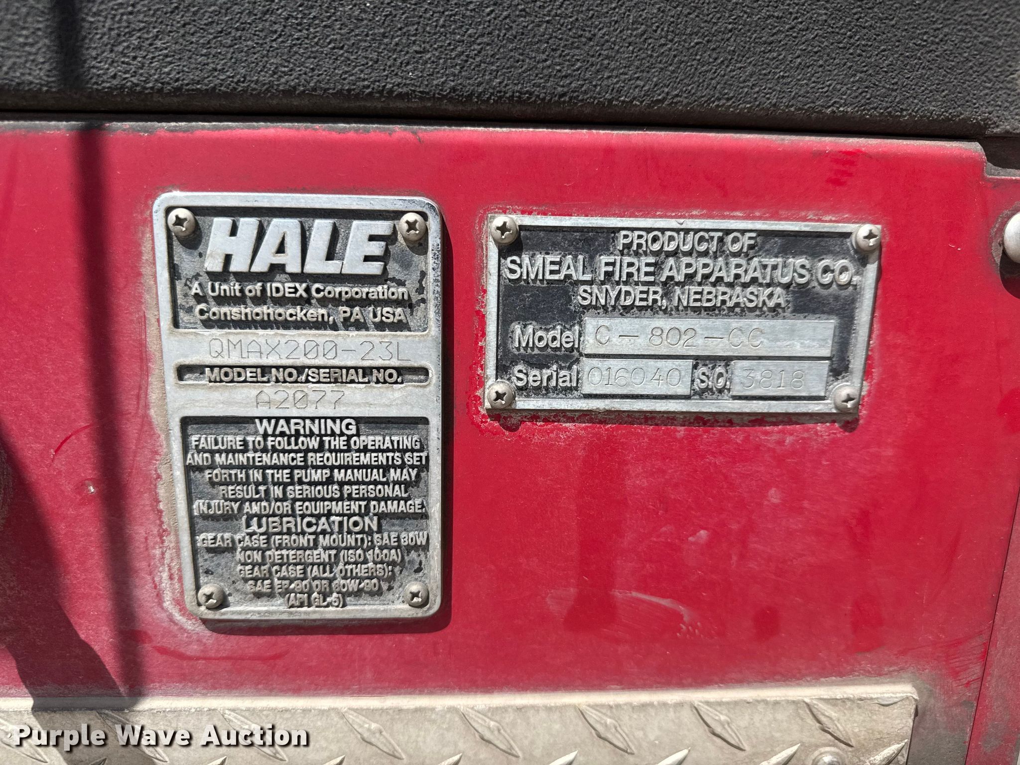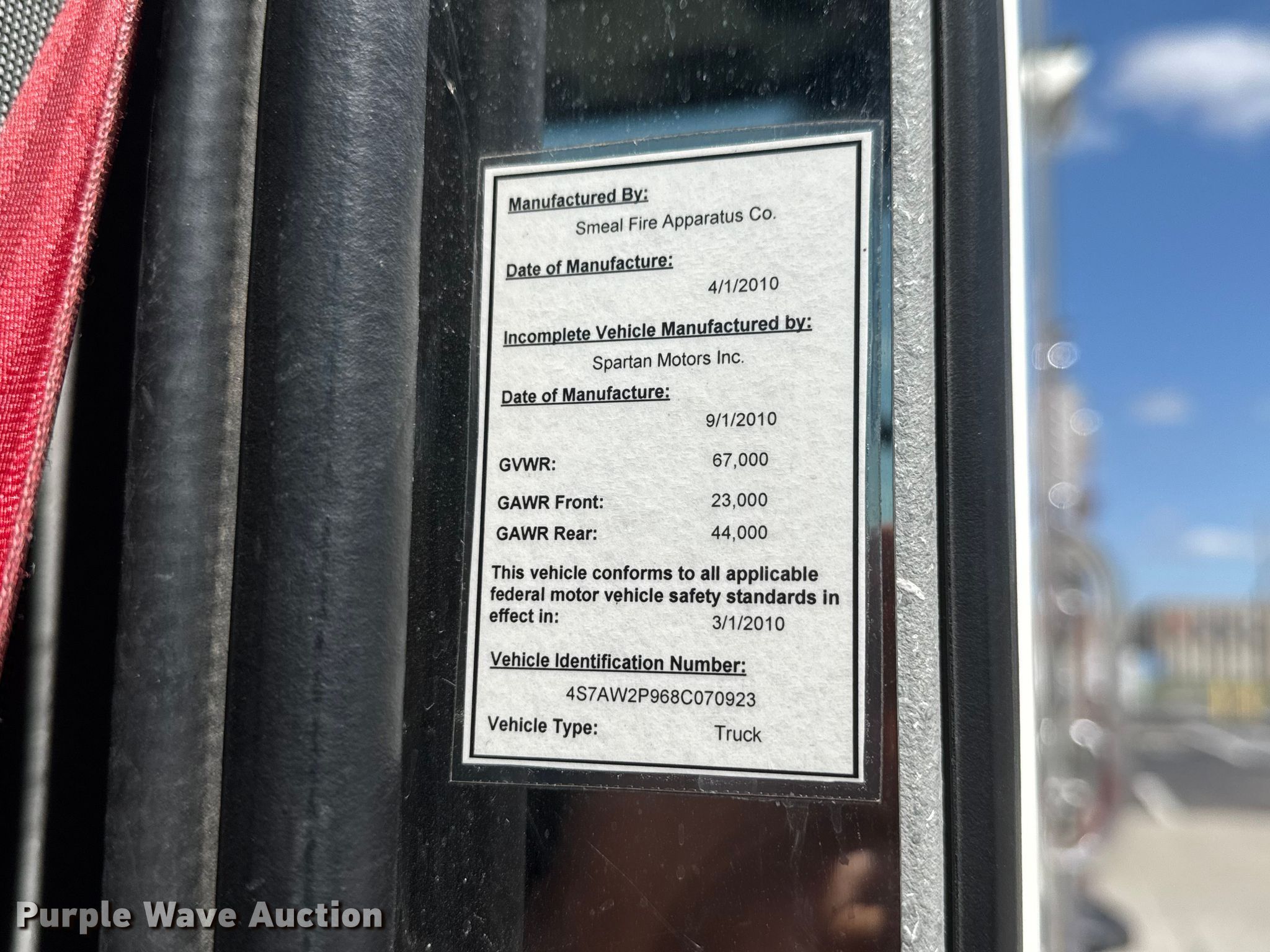 Purple Wave is selling a used Fire Truck or Emergency Vehicle in Kansas. This item is a 2008 Spartan pumper fire truck with the following: Miles: 82,713 on odometer, Hours: 5,946 on meter, VIN: 4S7AW2P968C070923
