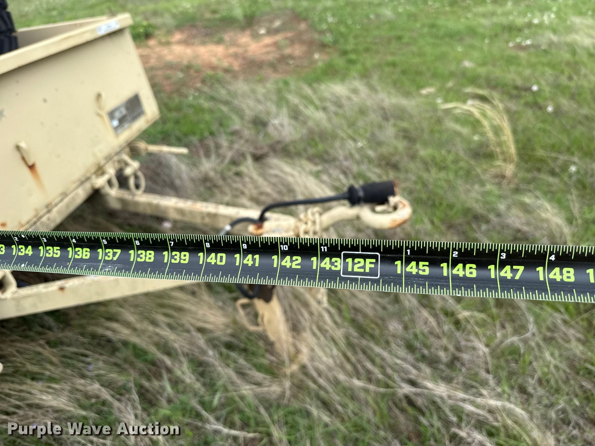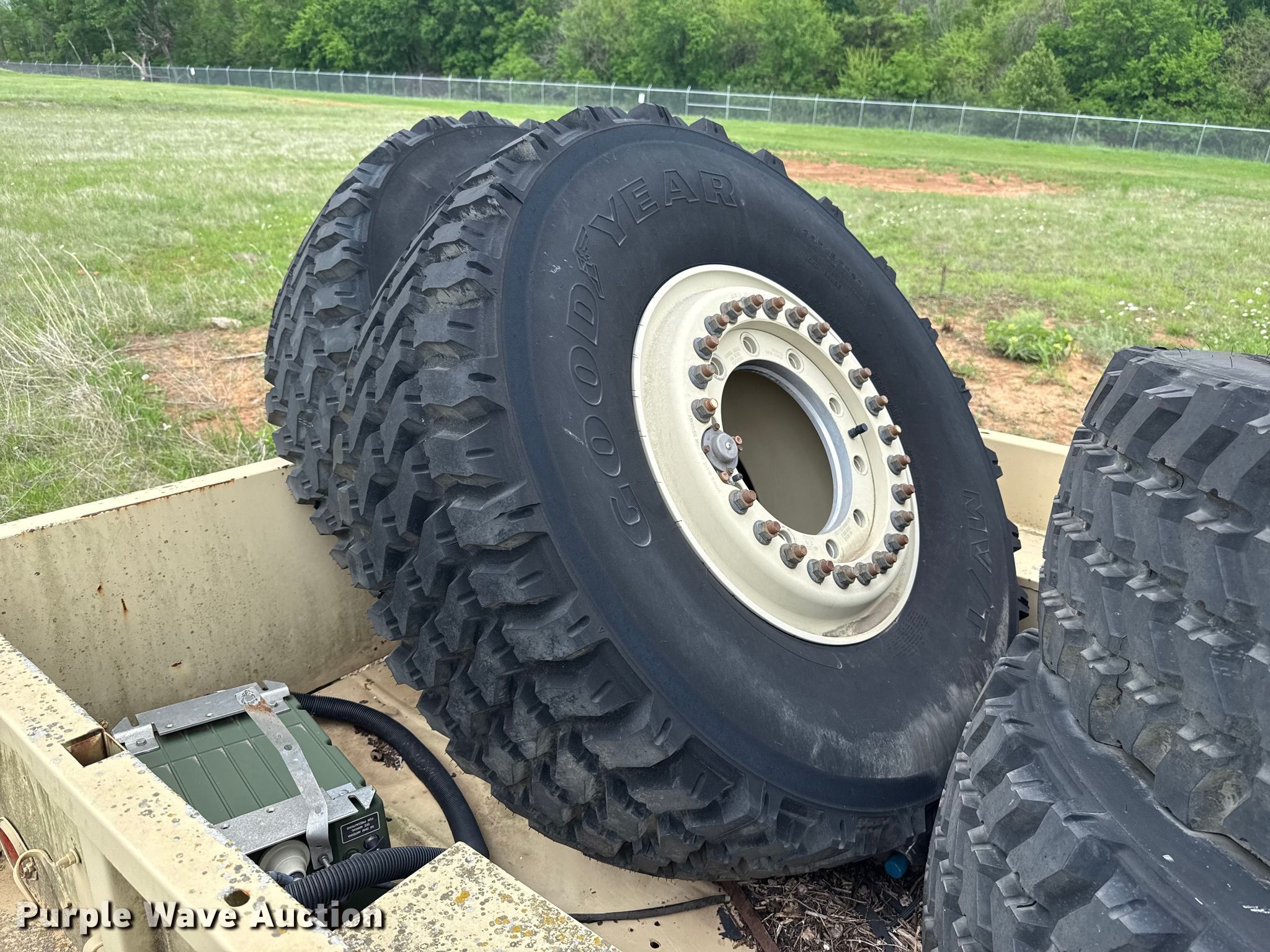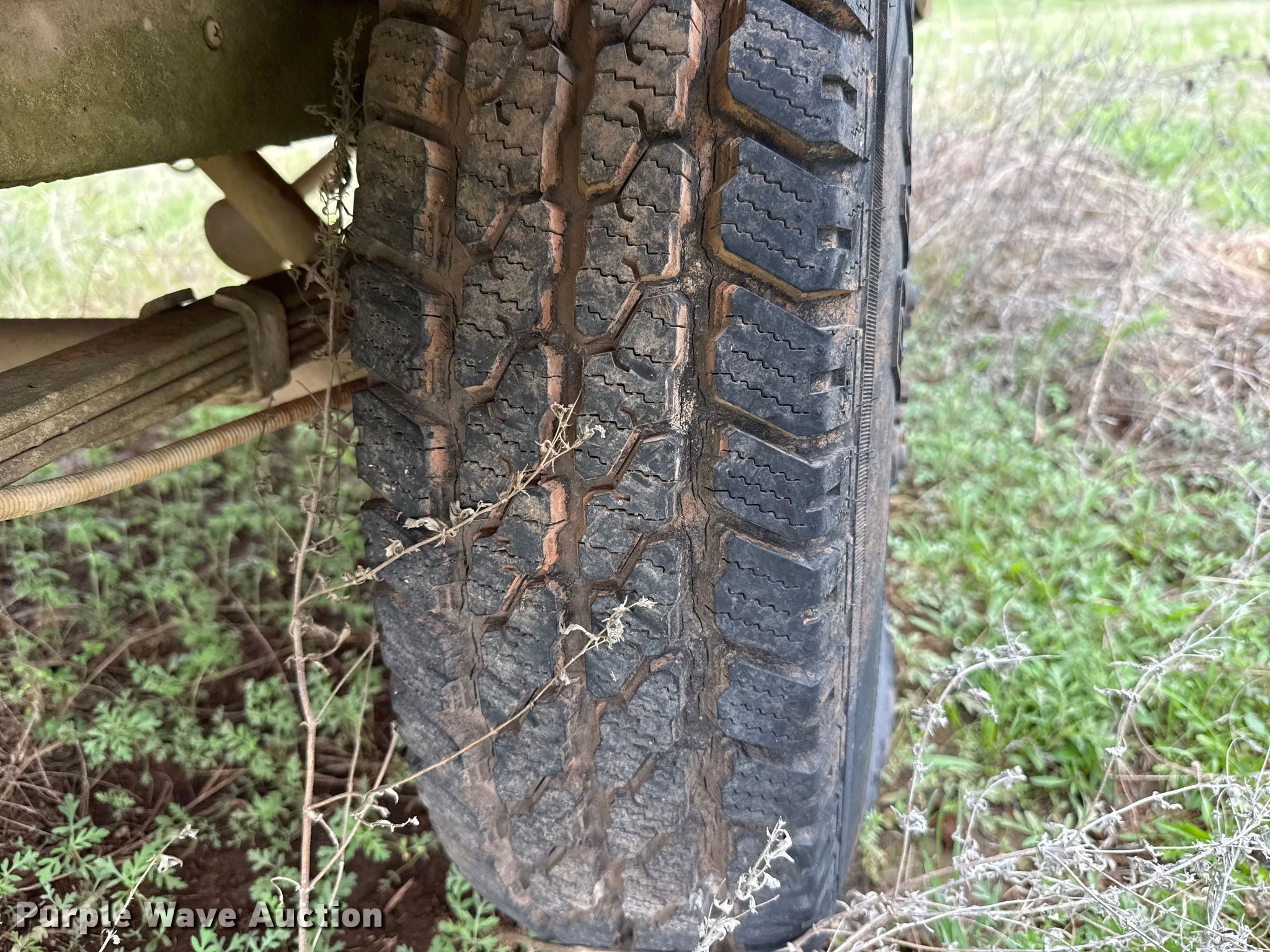 1968 M116A2 utility trailer. VIN: 7032, Unit #: 4234. Dimensions Overall Length: 12', Width: 70", Deck Length: 8', Width: 65", Side height: 18". Features Deck type: Steel. Chassis Hitch: Pintle, Landing gear: Single, Suspension: Spring. Tires Steel wheels Size: LT235/85R16. Notes Additional tires and wheels included Size: 395/85R20. Transfer of ownership documentation will be a bill of sale. Seller is a government entity who will be assigning and distributing the title. Please contact the seller for distribution questions. Shawnee Police Department. Shawnee, OK 74804