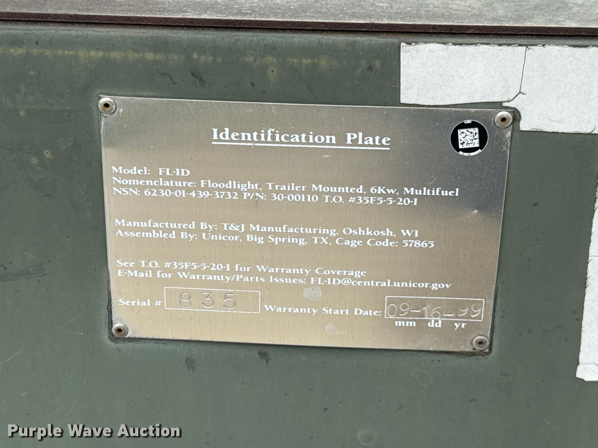Purple Wave is selling a used Light Plant in Oklahoma. This item is a 1999 T&J FL-1D light plant with the following: Hours: 997 on meter, Serial: 835