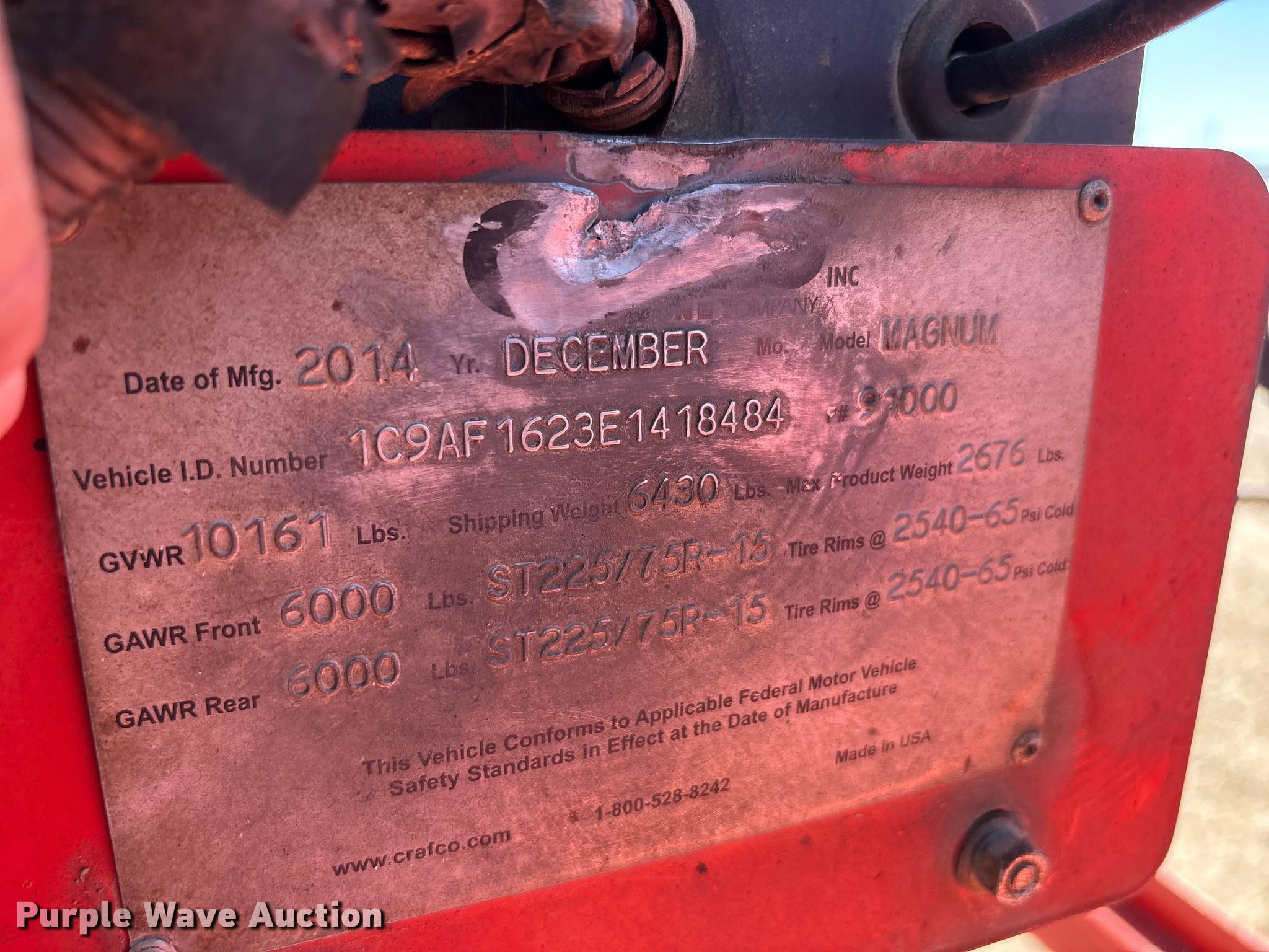 2014 Crafco Magnum melter applicator. Hours: 624 on meter, VIN: 1C9AF1623E1418484. Dimensions Overall Length: 17', Width: 89". Engine John Deere 4045TF280B, Displacement: 4.5L, Cylinders: 4, Fuel type: Diesel. Tires Front: 225/75R15, Brand: Master track. Notes Jump start required during on-site data collection. Texas title. Seller is a government entity who will be assigning and distributing the title. Please contact the seller for distribution questions. Moore County, TX. Dumas, TX 79029
