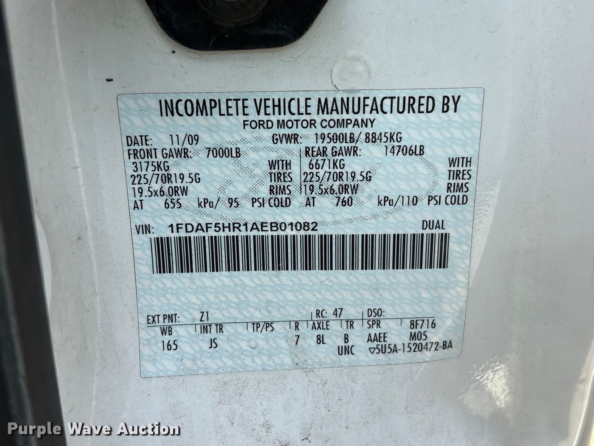 • VIN: 1FDAF5HR1AEB01082
