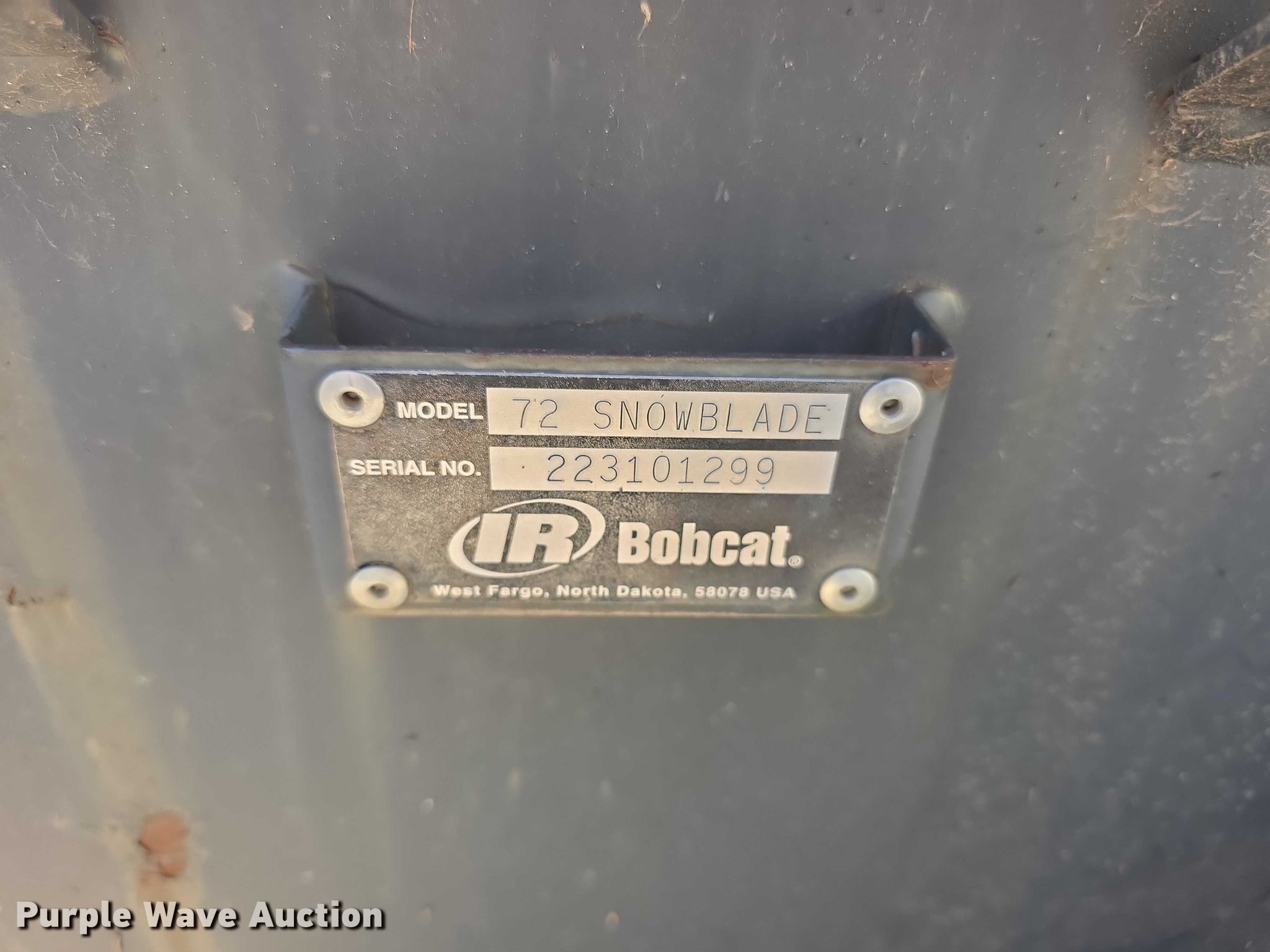 Purple Wave is selling a used Skid Steer Attach. in Kansas. This item is a Bobcat 72" W skid steer snow plow with the following: Serial: 223101299