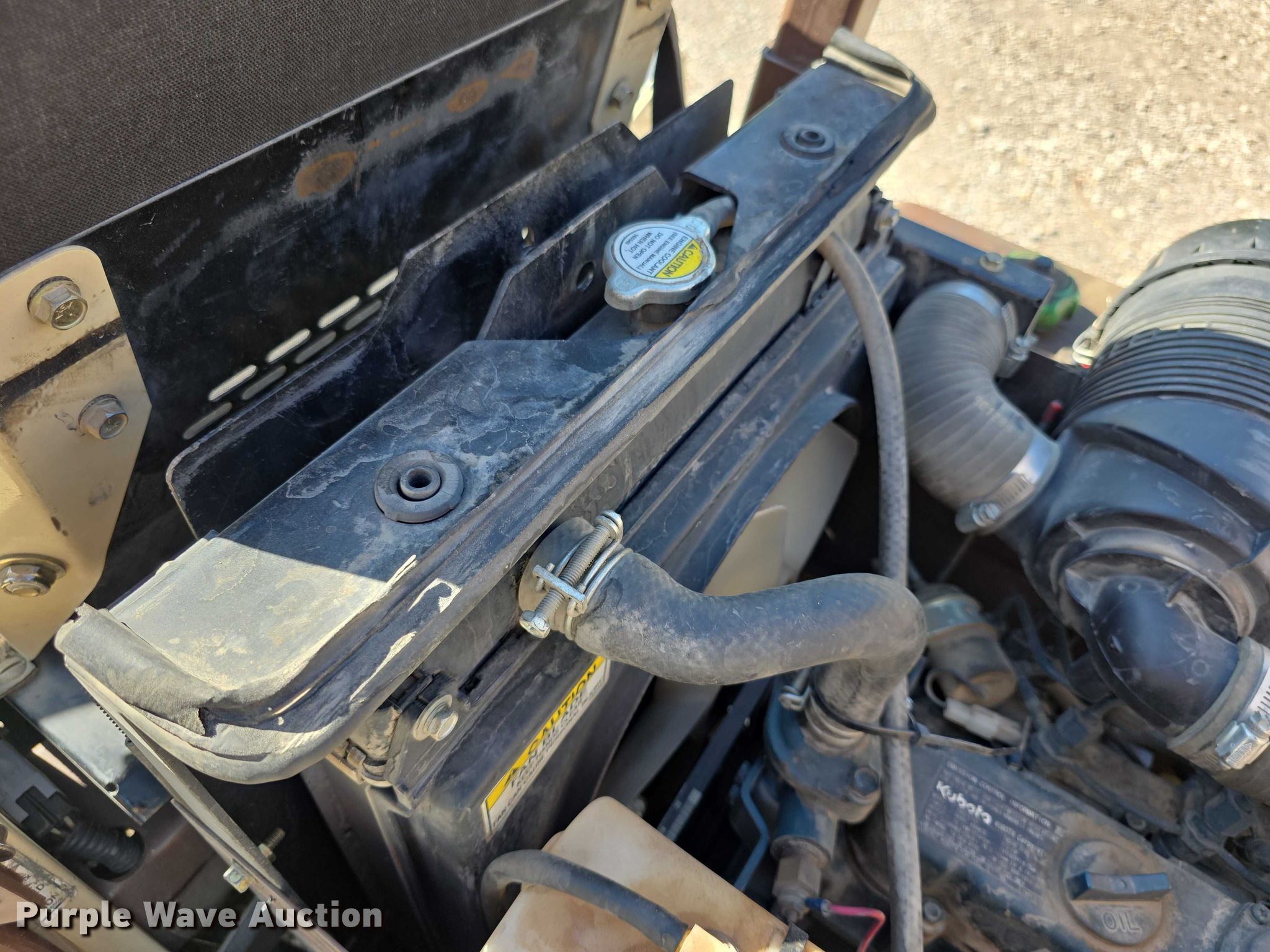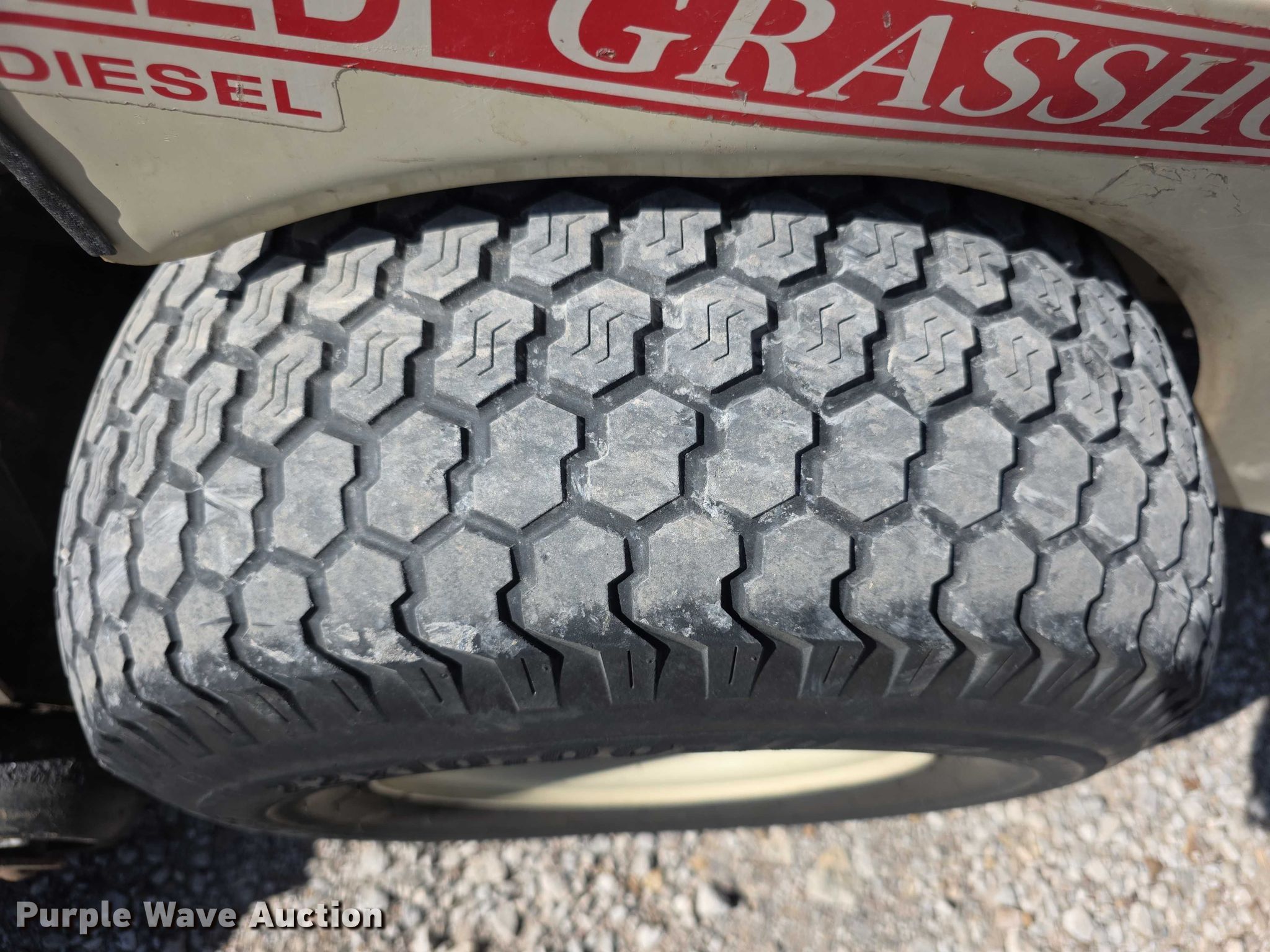 Grasshopper 722D ZTR lawn mower. Hours: 2,706 on meter, Cutting width: 62", Serial: 5819934. Engine Kubota D902ET02, Displacement:.898L, Cylinders: 3, Fuel type: Diesel. Transmission Hydrostatic. Operators station Enclosed cab. Features Hydraulic front deck lift. Tires Front: 22x10.00-10, Rear: 13x6.50/4.50, Brand: Kenda. Notes Cab removed but included. Emporia, KS 66801