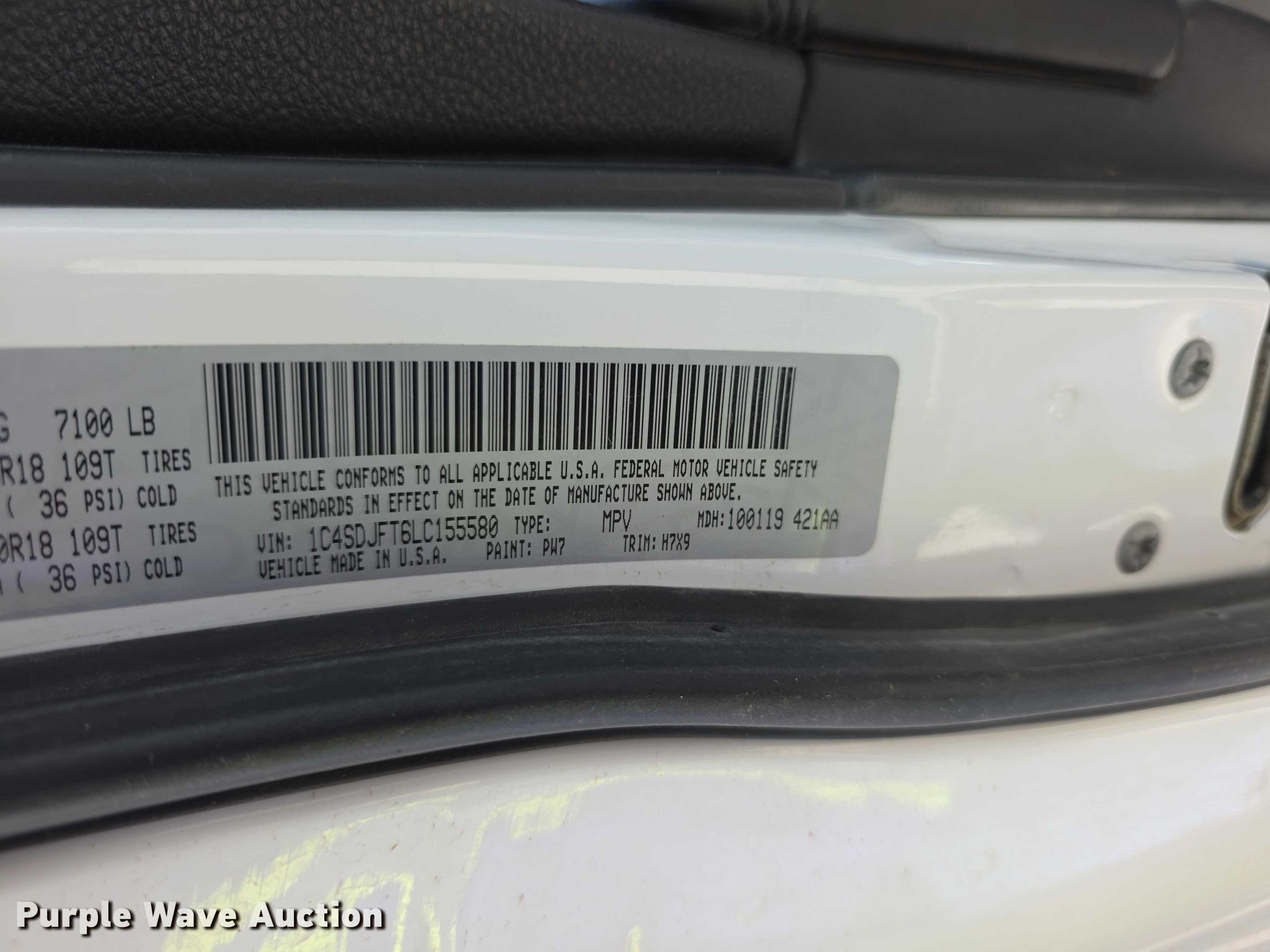 Purple Wave is selling a used Passenger Vehicle in Kansas. This item is a 2020 Dodge Durango SSV SUV with the following: Miles: 102,185 on odometer, VIN: 1C4SDJFT6LC155580, Unit #: 3