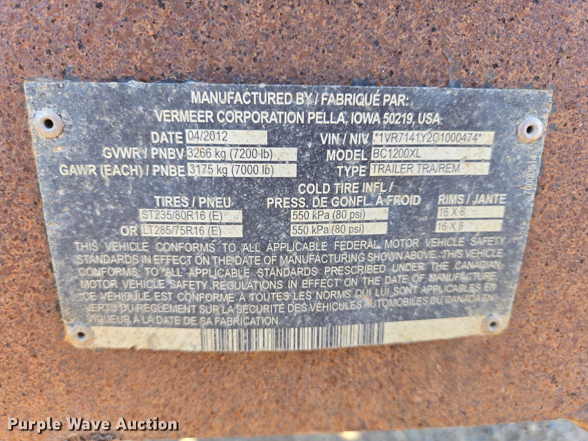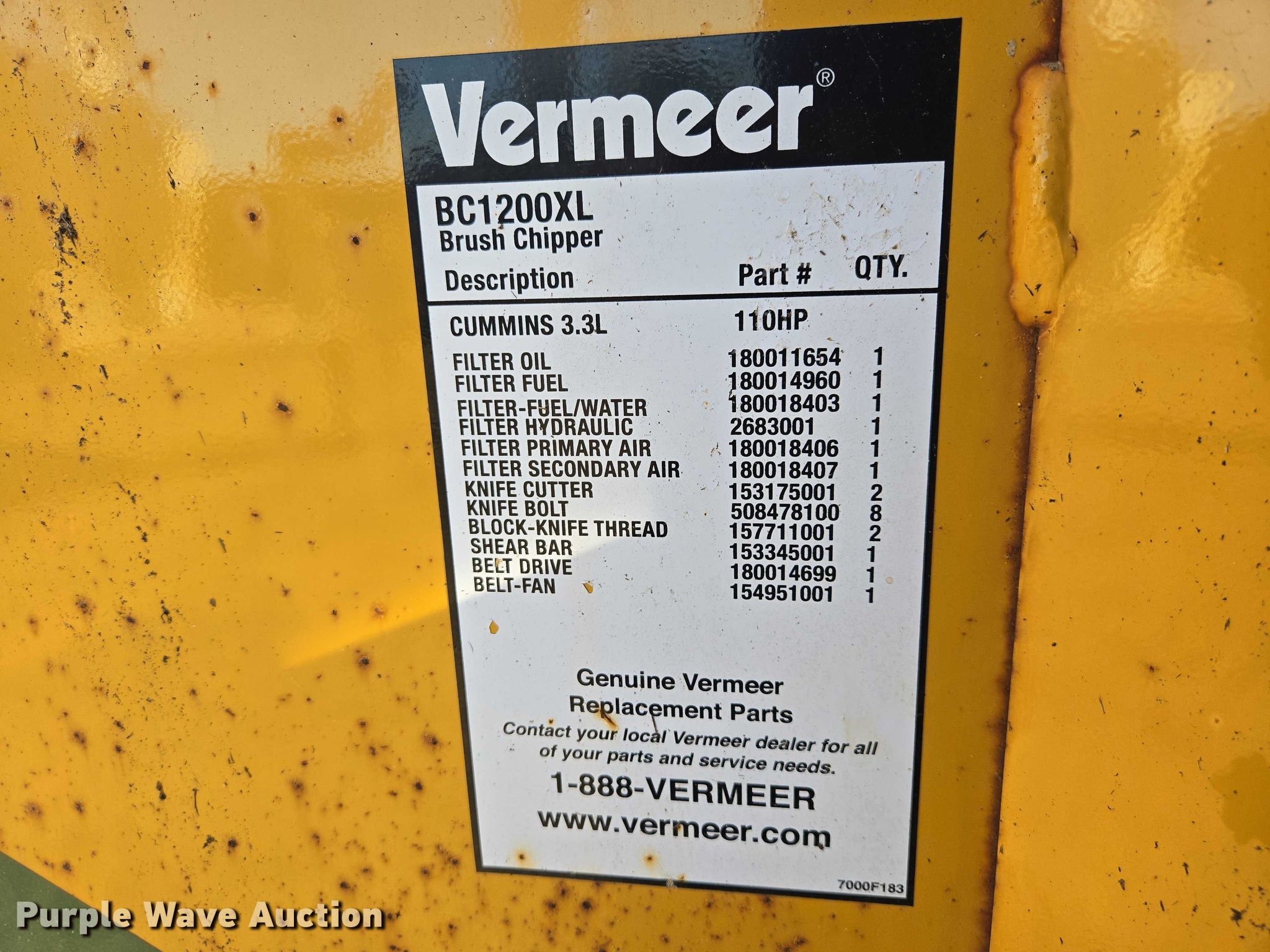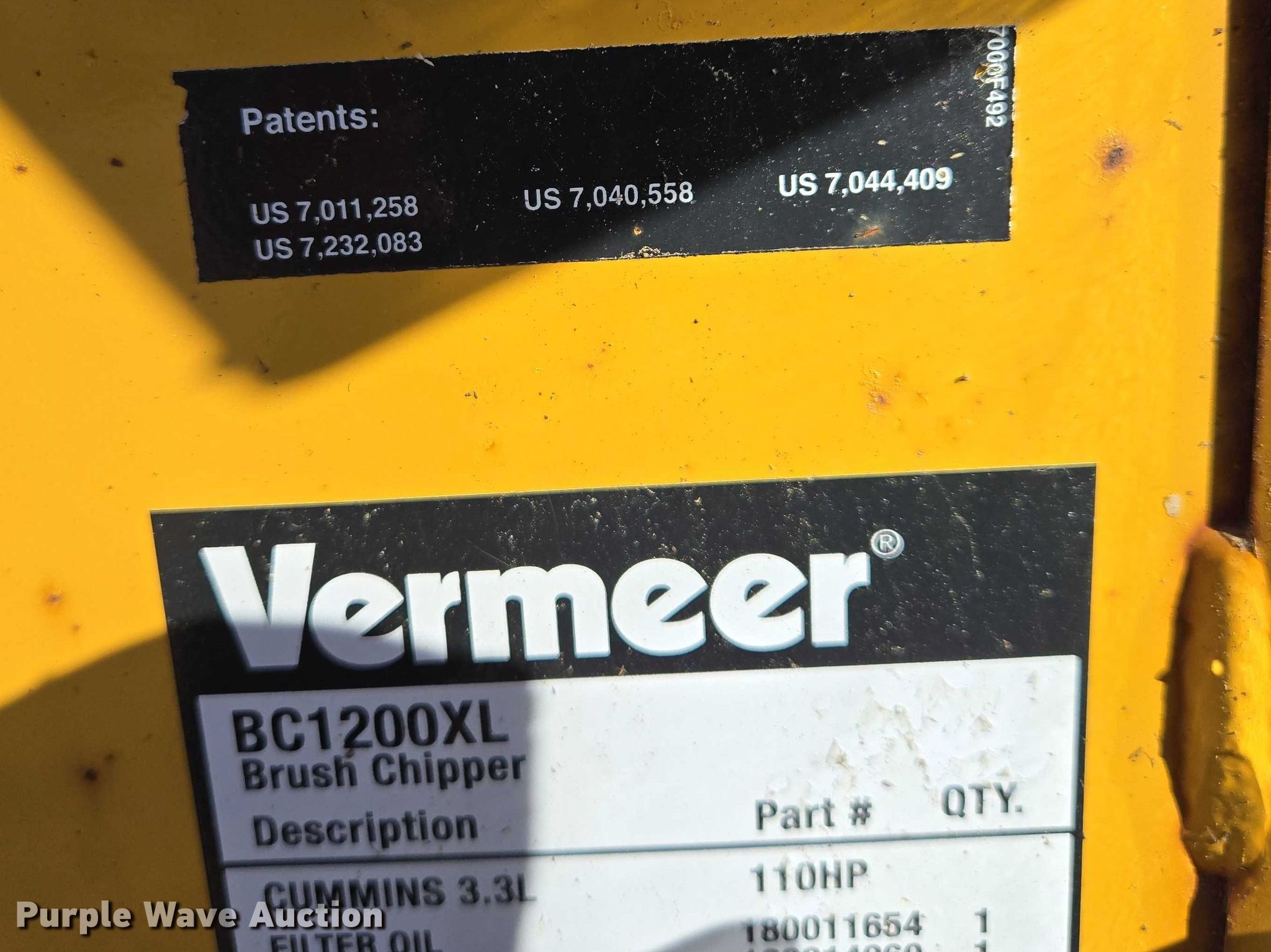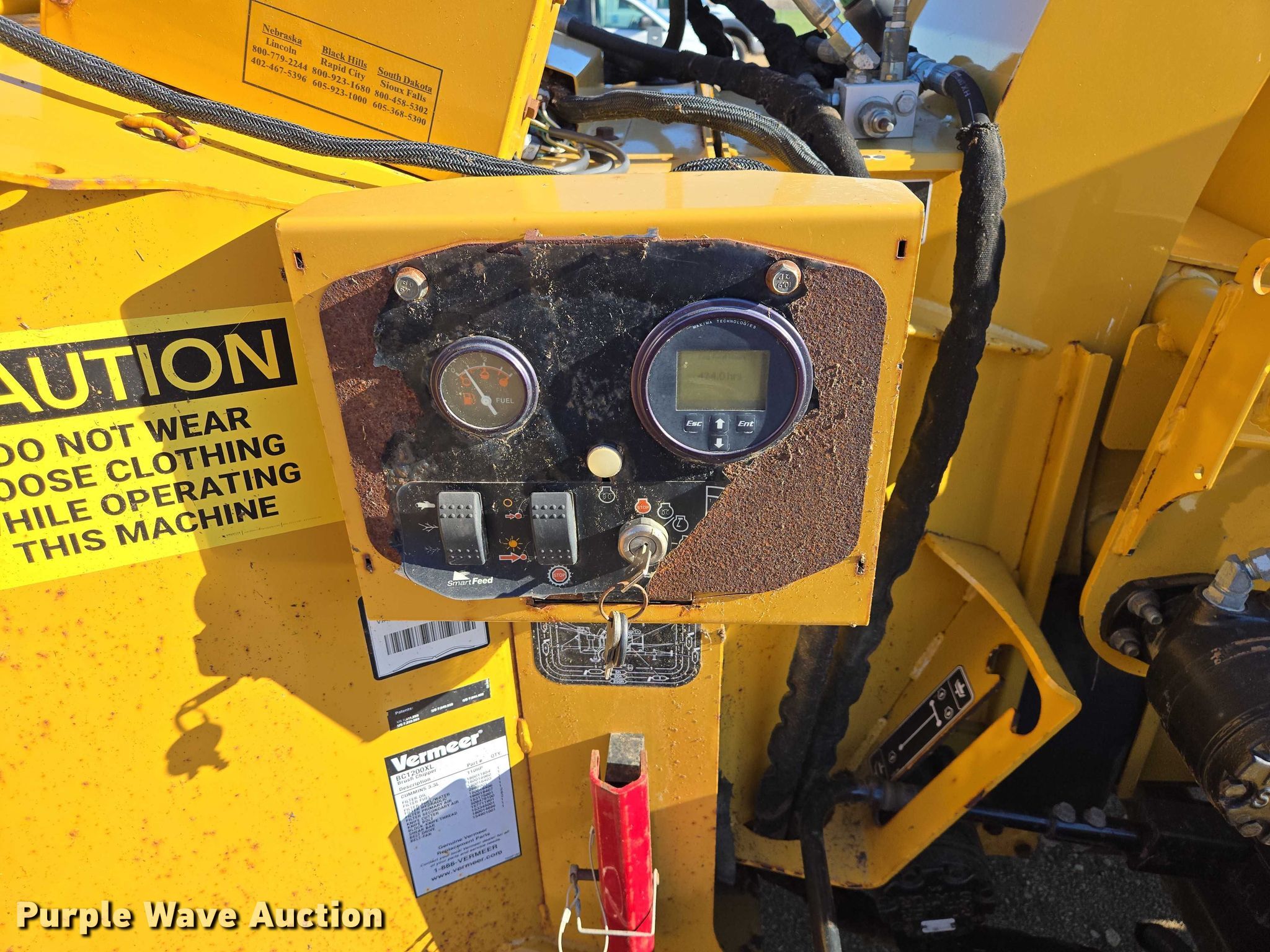Purple Wave is selling a used Wood Chipper or Stump Grinder in South Dakota. This item is a 2012 Vermeer BC1200XL wood chipper with the following: Hours: 424 on meter, VIN: 1VR7141Y2C1000474