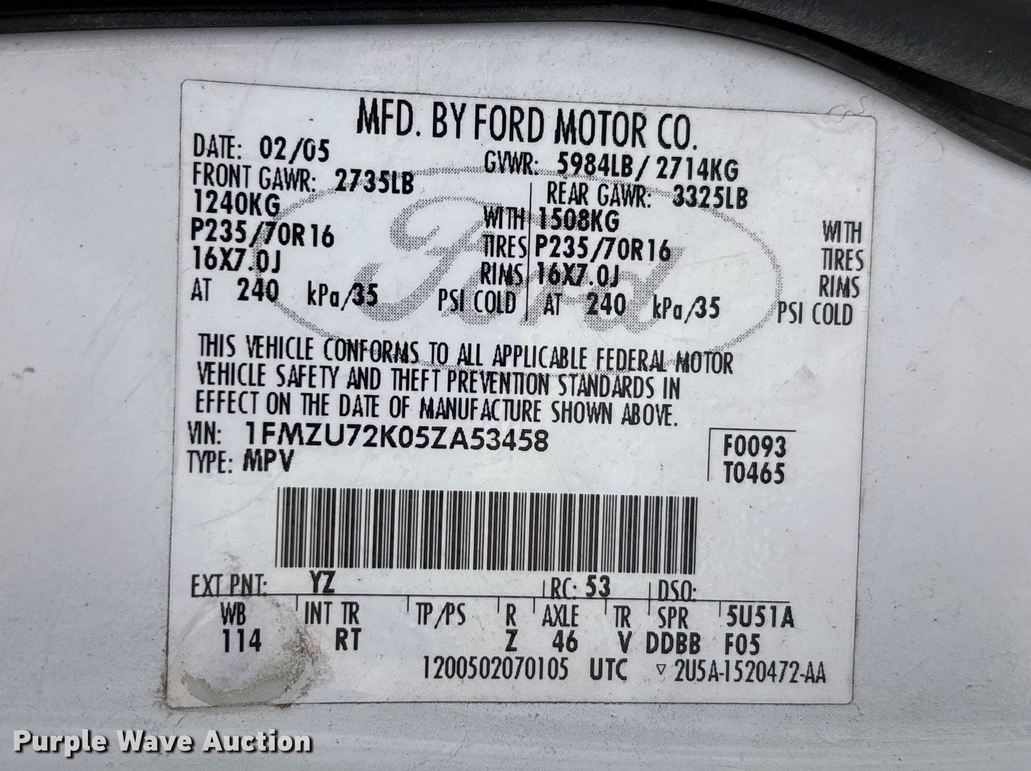 - VIN: 1FMZU72K05ZA53458