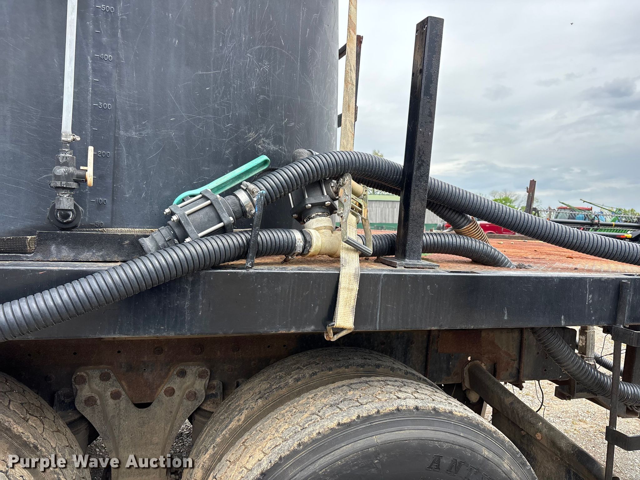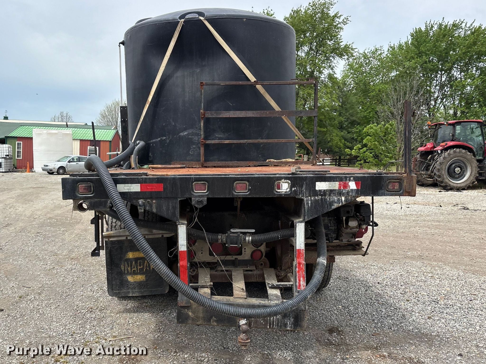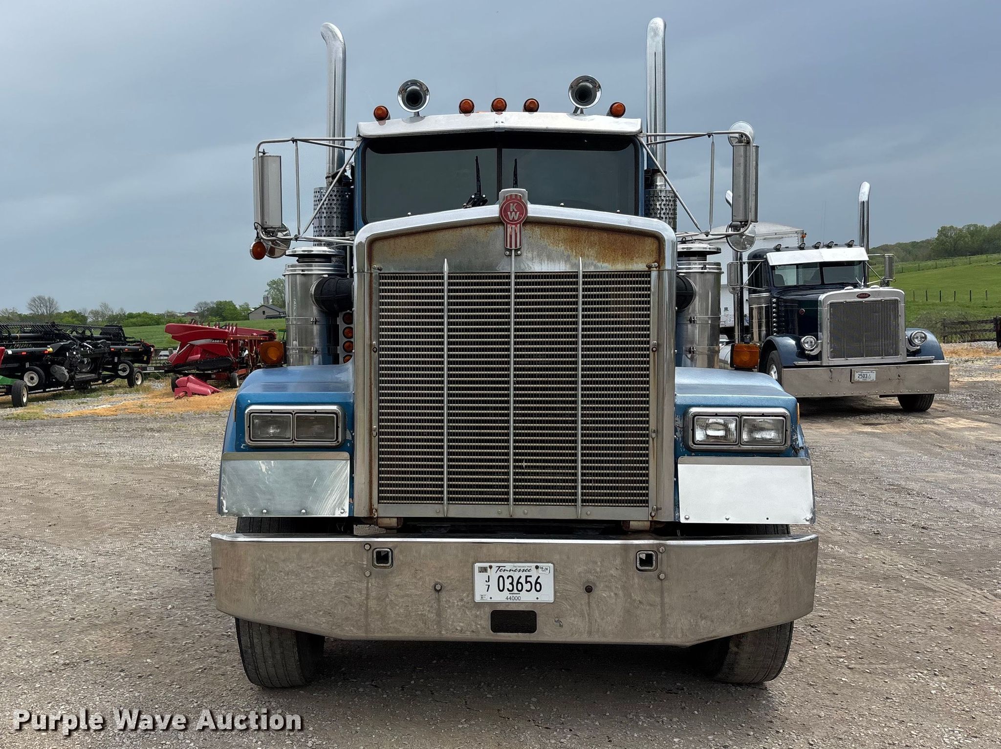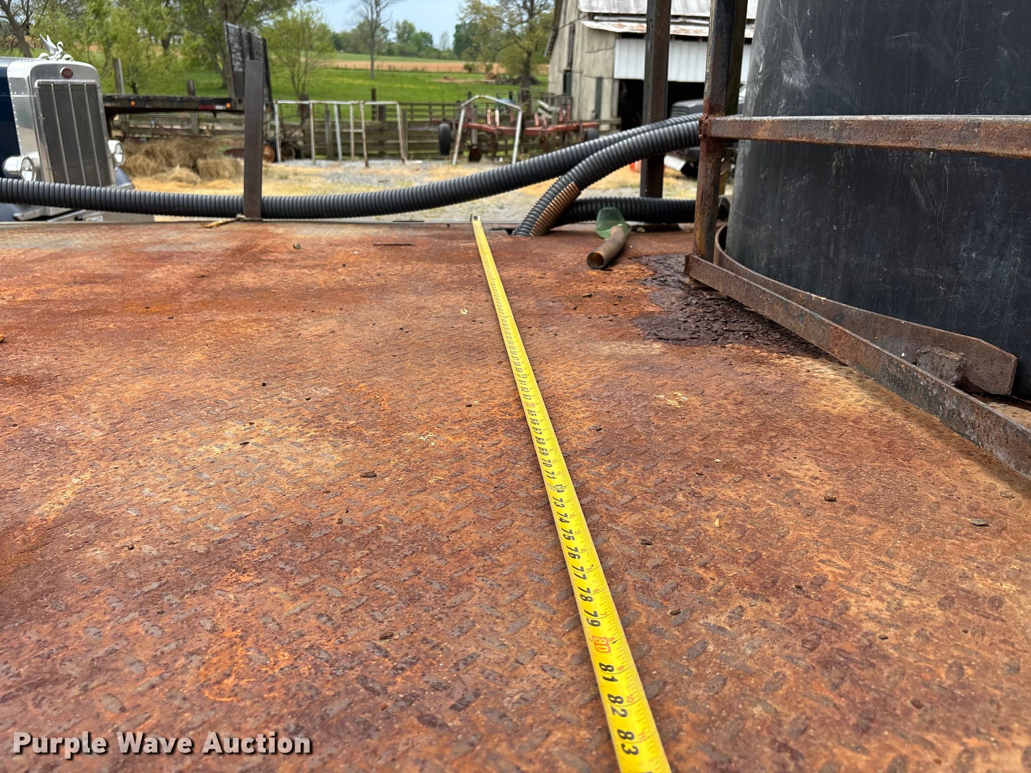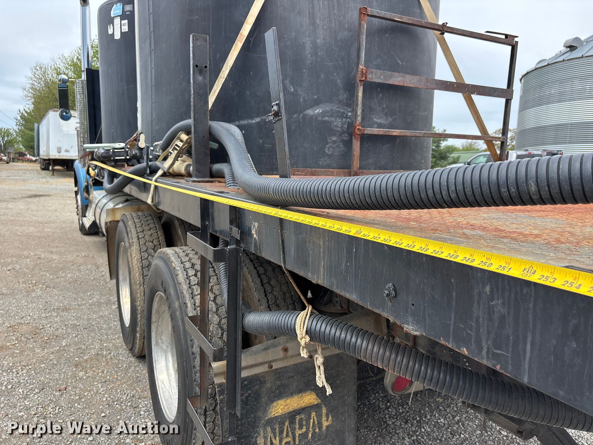 1988 Kenworth W90 flatbed truck. Miles: 27,108 on odometer, Miles: Actual unknown, VIN: 1XKWDB9X9JS514661. Engine Caterpillar 3406B, Displacement: 14.6L, Cylinders: 6, Fuel type: Diesel. Transmission Manual, Speed: 13. Chassis Axles: Tandem, Differential lock: Inter-axle, Suspension: Air, Brakes: Air. Interior Heat, Heated mirrors, Brake controller. Features Bed Flatbed, Length: 22' 4", Width: 7' 10", (2) poly tanks Capacity: 1500 gallons each, Sight tube, Inlet: 3", Outlet: 2", Honda GX 160 pump engine Cylinders: Single, Fuel type: Gas, Approx. 14' of fill hose. Tires Size: 11R24.5. Notes Windshield chipped or cracked, Jump start required during on-site data collection. Pursuant to Tennessee law, Purple Wave will not be collecting sales taxes on any of the purchases made in this business liquidation auction. Tennessee title. Mileage has not been verified. Exempt will be written in the odometer disclosure on the title. Title distribution may be delayed up to 14 days from verification of funds. Rolling Acre Farm. Orlinda, TN 37141