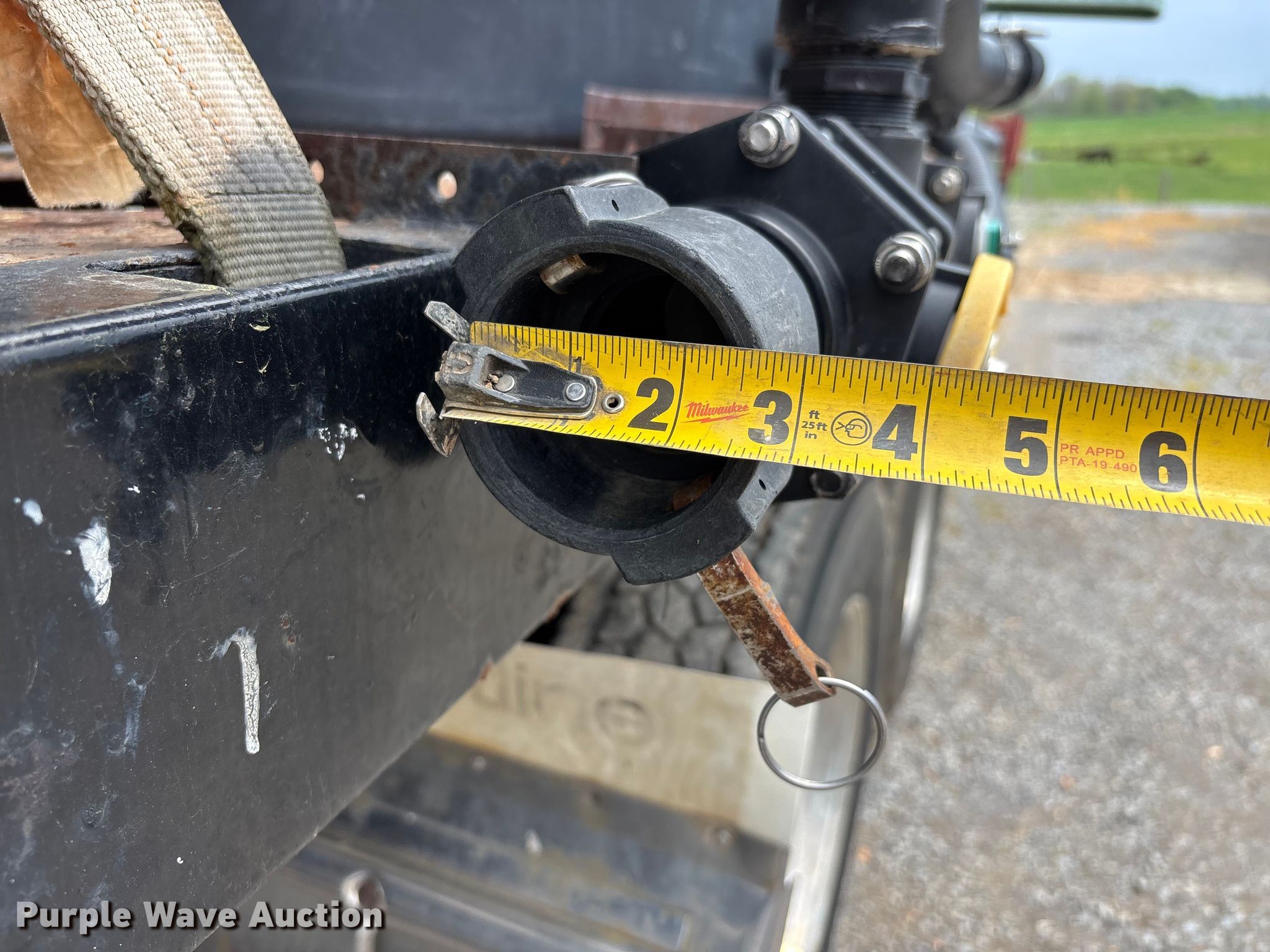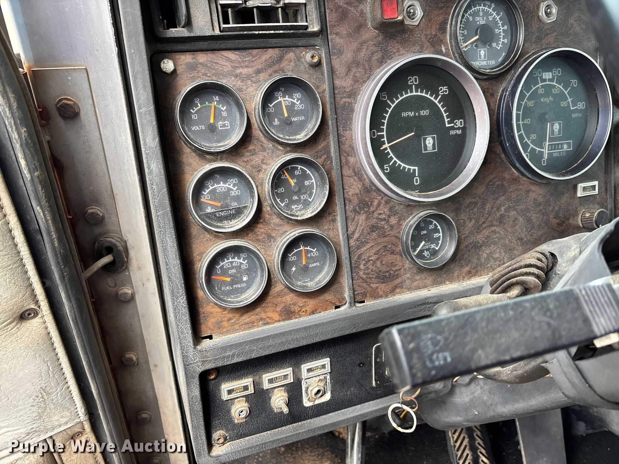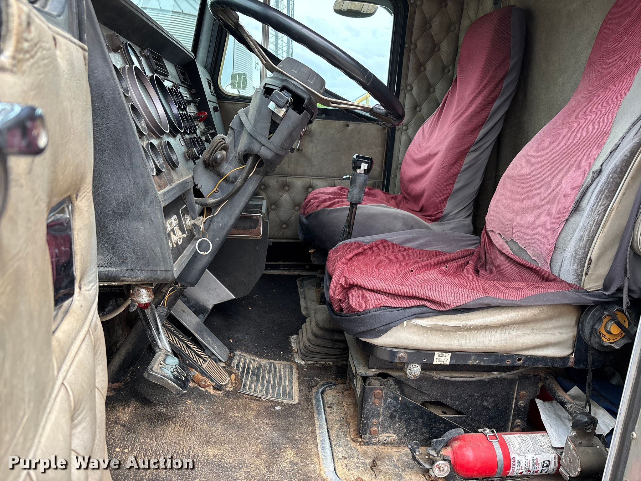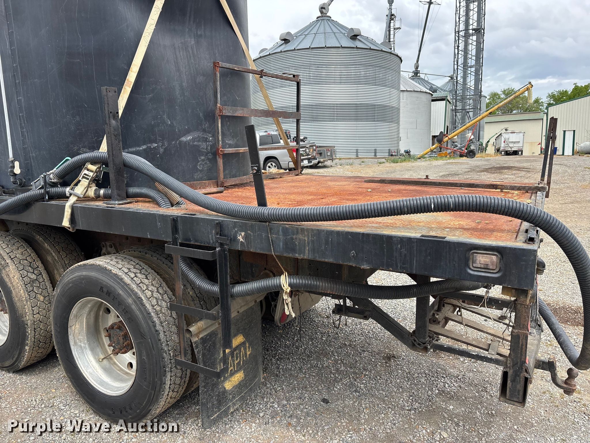 1988 Kenworth W90 flatbed truck. Miles: 27,108 on odometer, Miles: Actual unknown, VIN: 1XKWDB9X9JS514661. Engine Caterpillar 3406B, Displacement: 14.6L, Cylinders: 6, Fuel type: Diesel. Transmission Manual, Speed: 13. Chassis Axles: Tandem, Differential lock: Inter-axle, Suspension: Air, Brakes: Air. Interior Heat, Heated mirrors, Brake controller. Features Bed Flatbed, Length: 22' 4", Width: 7' 10", (2) poly tanks Capacity: 1500 gallons each, Sight tube, Inlet: 3", Outlet: 2", Honda GX 160 pump engine Cylinders: Single, Fuel type: Gas, Approx. 14' of fill hose. Tires Size: 11R24.5. Notes Windshield chipped or cracked, Jump start required during on-site data collection. Pursuant to Tennessee law, Purple Wave will not be collecting sales taxes on any of the purchases made in this business liquidation auction. Tennessee title. Mileage has not been verified. Exempt will be written in the odometer disclosure on the title. Title distribution may be delayed up to 14 days from verification of funds. Rolling Acre Farm. Orlinda, TN 37141