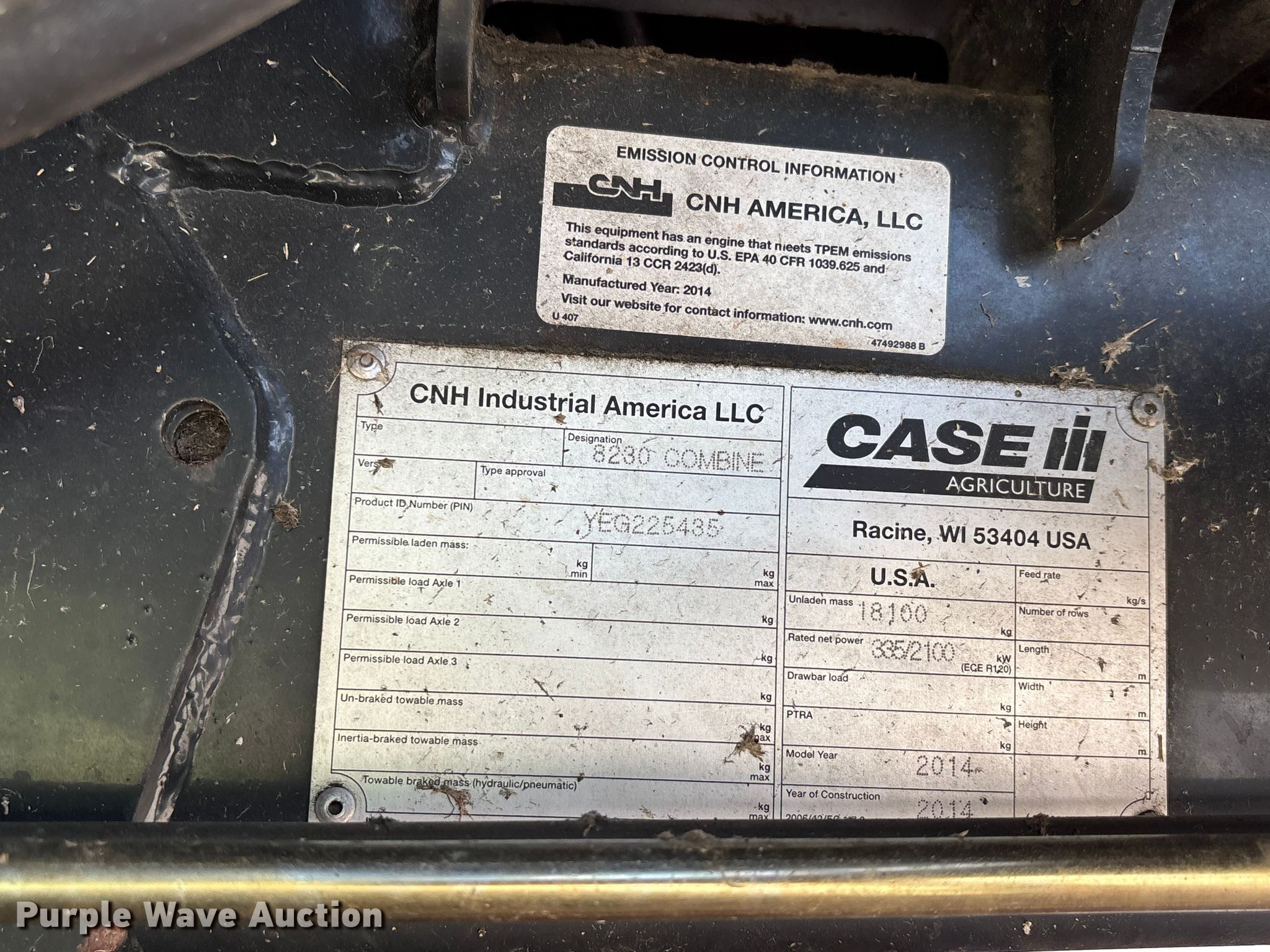 Take a look at this used 2014 Case IH 8230 combine being sold on May 27th, 2026 in the Wednesday May 27 Ag Equipment Auction made by Case IH. Take a look at all of the item information below or take a look at similar auctions for Harvesters.