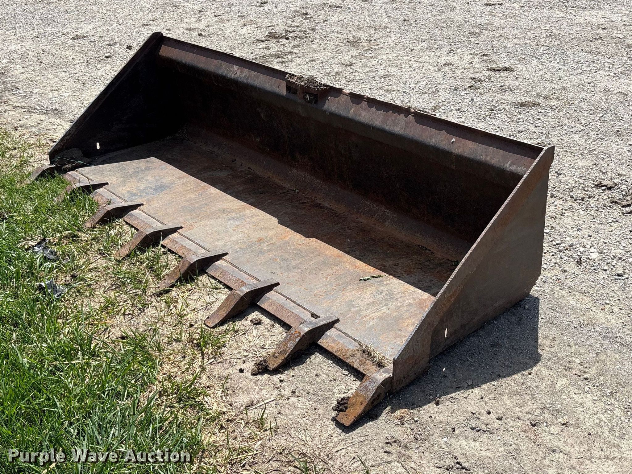 Purple Wave is selling a used Skid Steer Attach. in Kansas. This item is a Skid steer bucket with the following: Width: 84", Teeth: Bolt-on