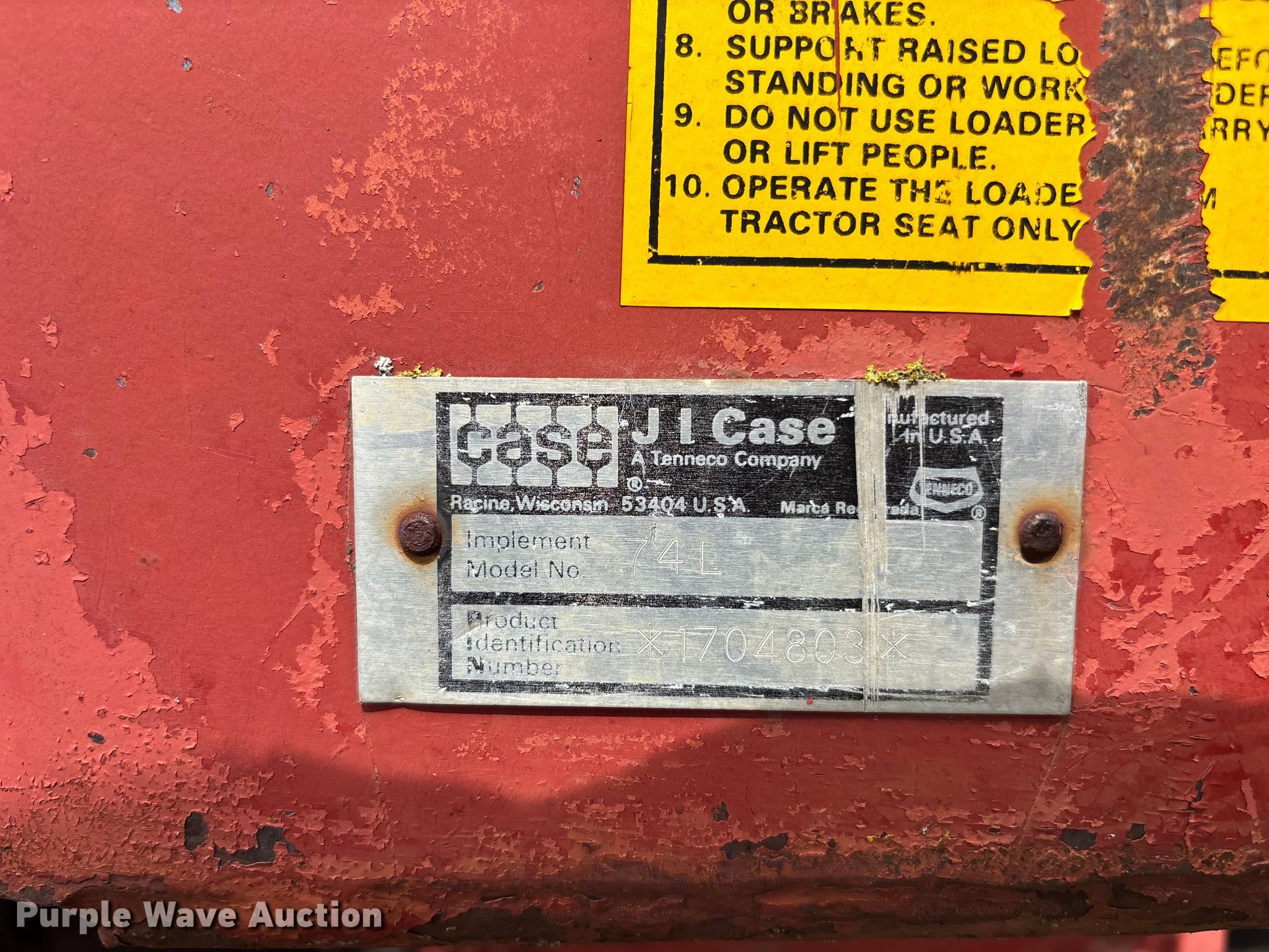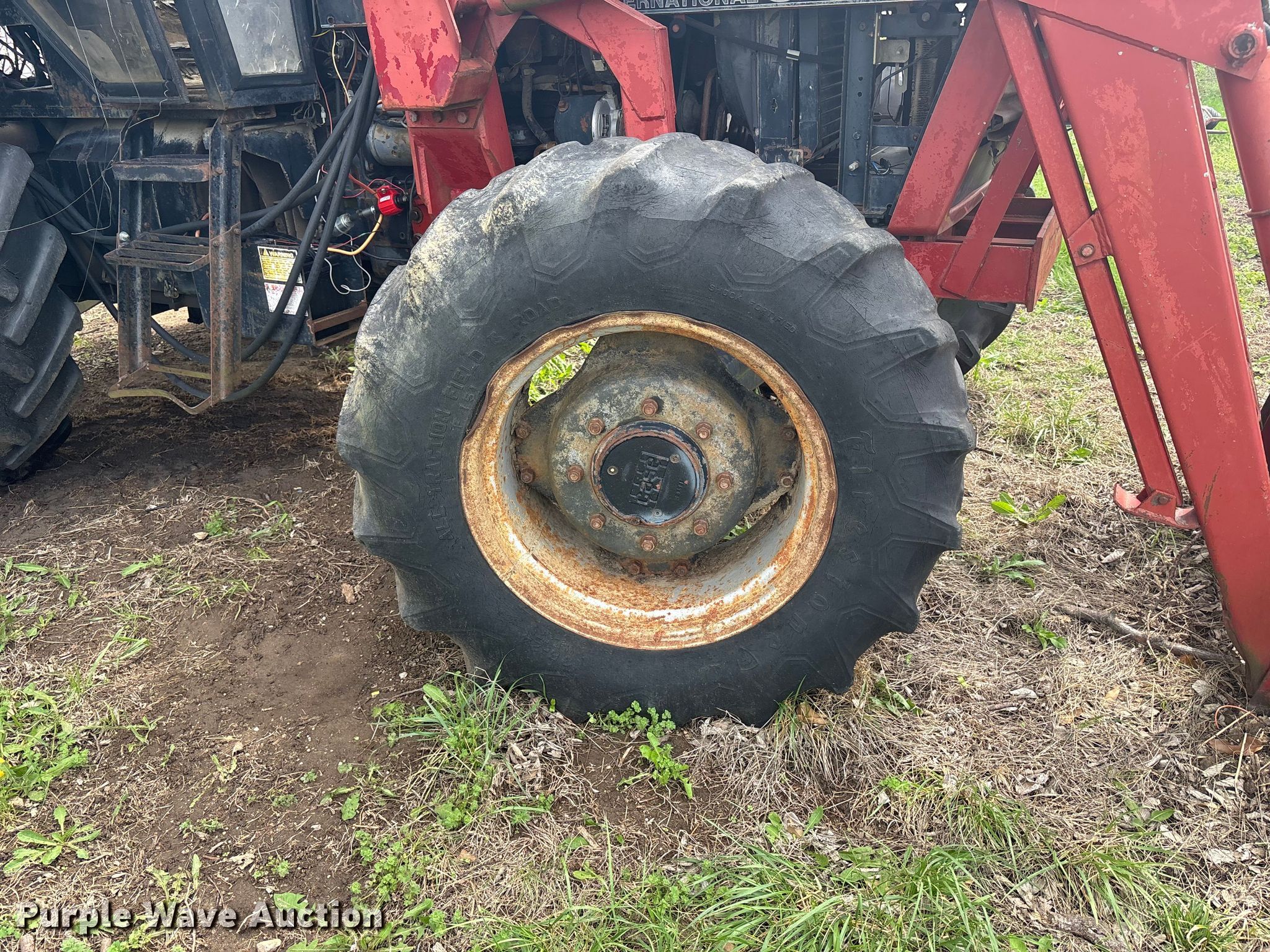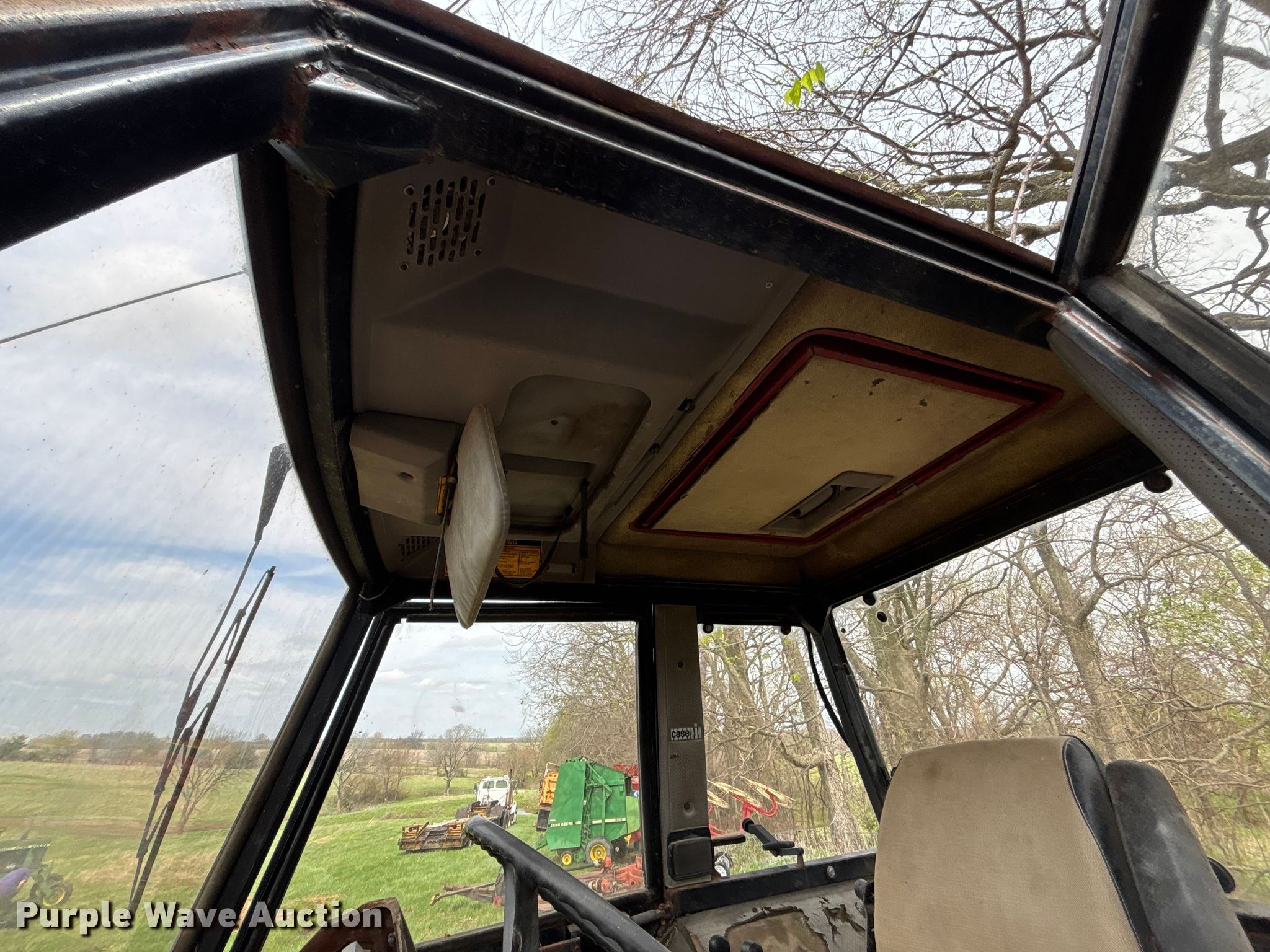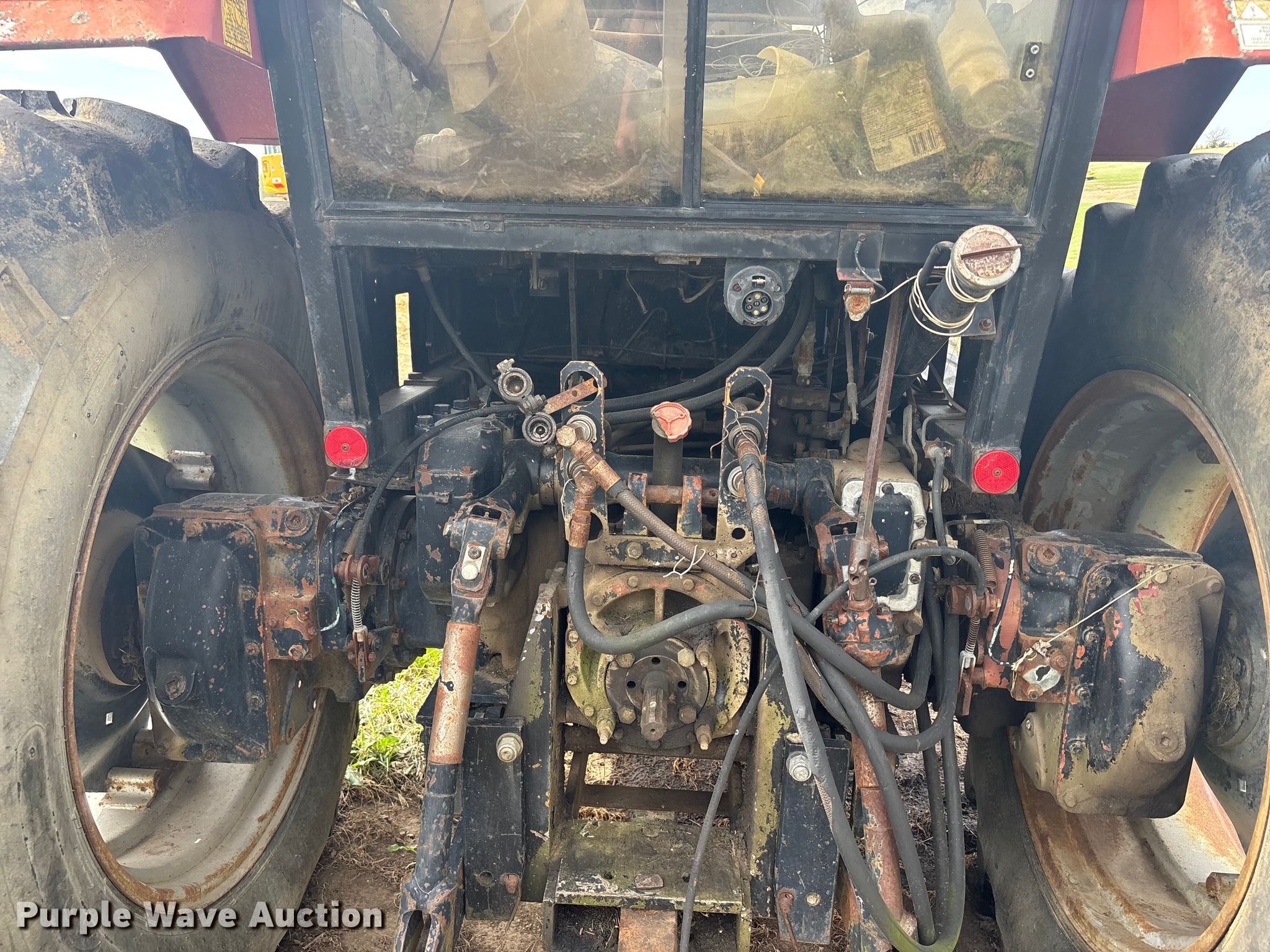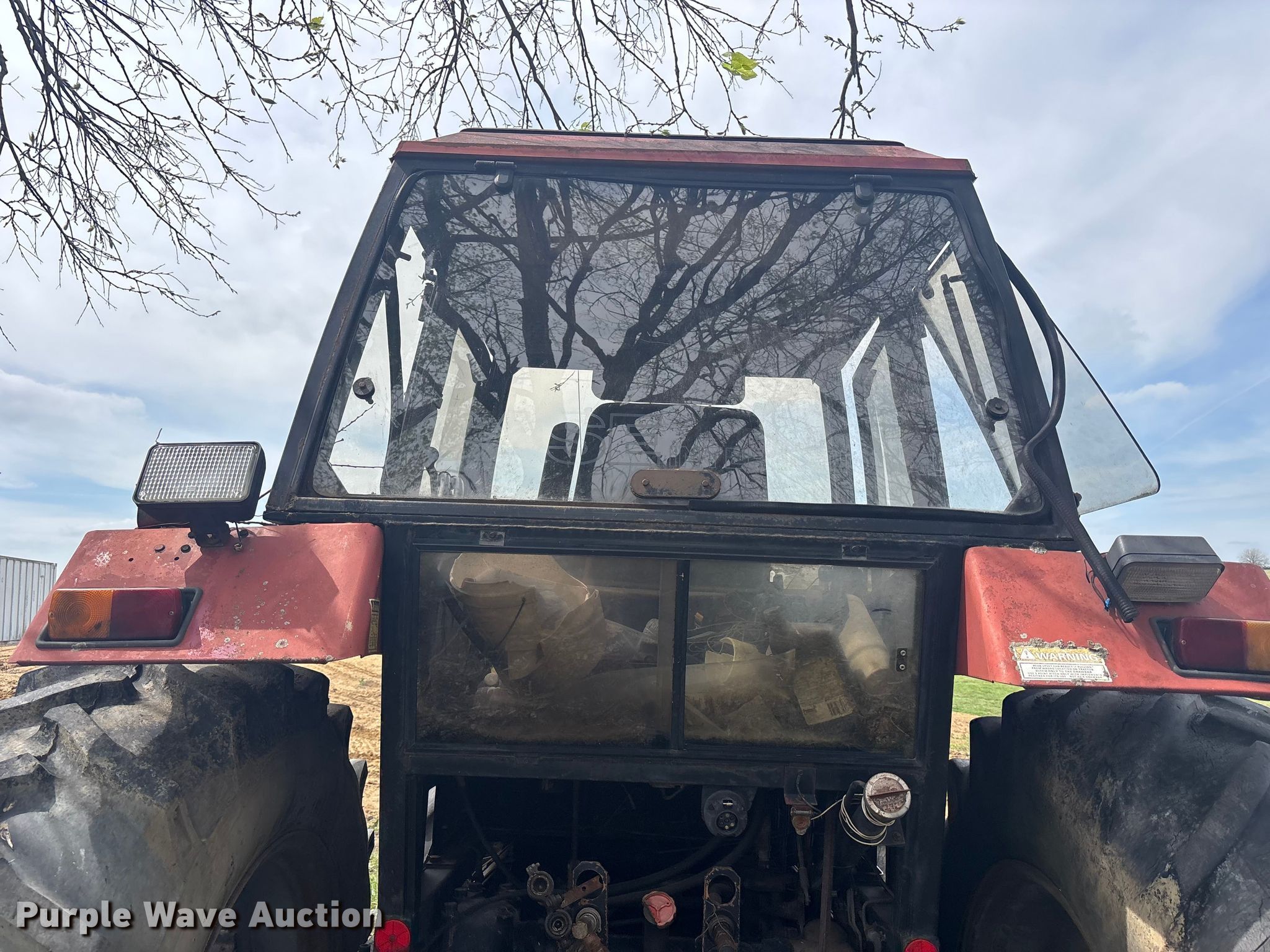 Case 1594 tractor. Engine. Cylinders: 6, Fuel type: Diesel. Transmission Manual, 12F - 3R, Differential lock. Operators station AC, Heat. Features PTO: 540, Seven pin outlet, Hydraulic remote sets Rear: 3, Loader Case 74L, Bale spear, Controls: Joystick, Bucket Width: 71".. Tires Front: 13.6-24, Rear: 18.4-34. Notes Glass cracked, Unknown operating condition. Hamilton, MO 64644