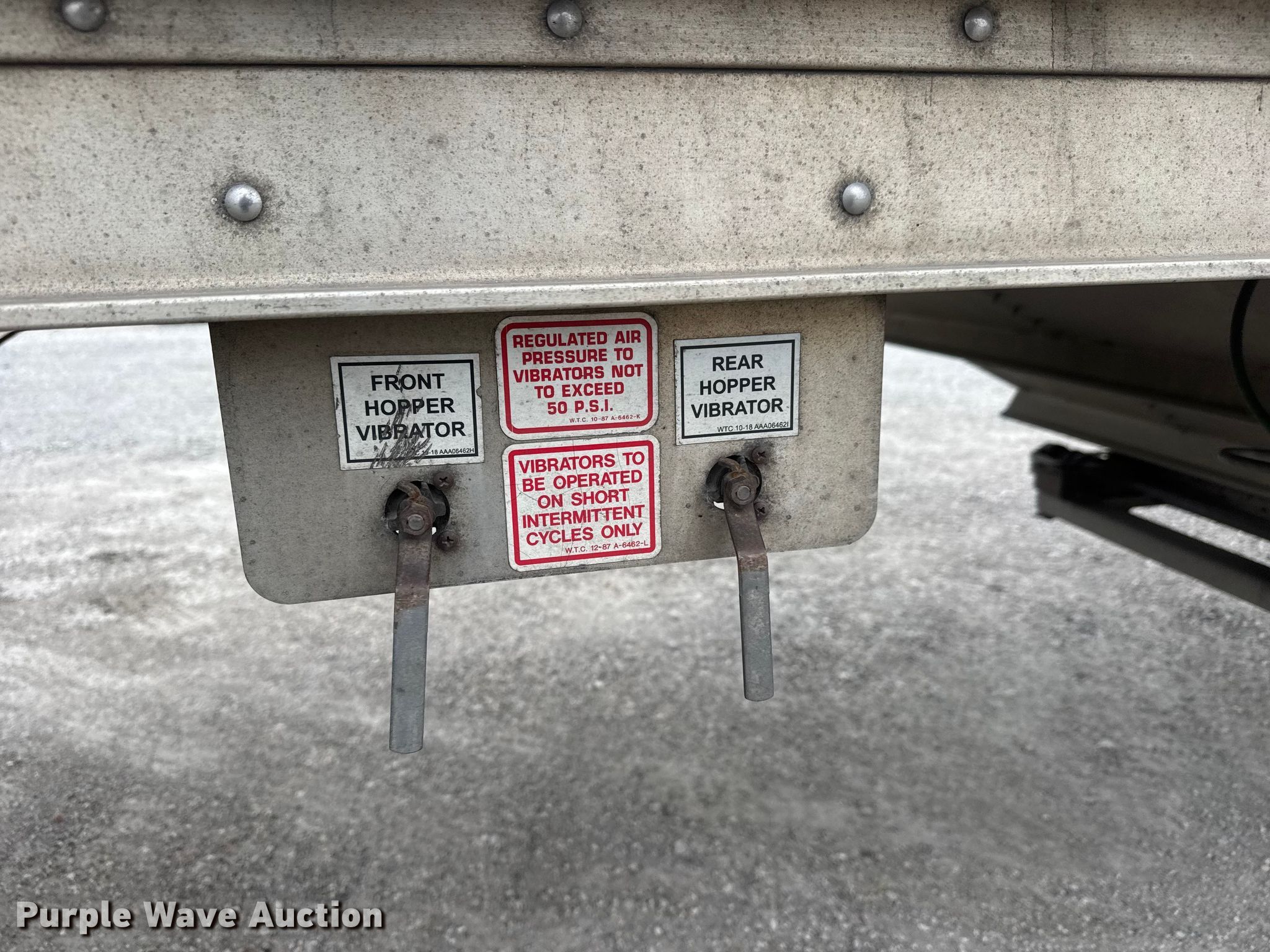 2020 Wilson DWH-651 grain trailer. VIN: 1W14402A2L7719361. Dimensions Overall Length: 40', Width: 96", Side height: 6'. Features Body type: Aluminum, Hoppers: Double Trap gates: Manual, Roll tarp, Vibratory hoppers. Chassis Landing gear: Dual, Suspension: Air, Brakes: Air, Axles: Tandem, GVWR: 65,000 lbs. Tires Aluminum wheels, Size: 445/50R22.5. Kansas title. Title distribution may be delayed up to 14 days from verification of funds. Augusta, KS 67010