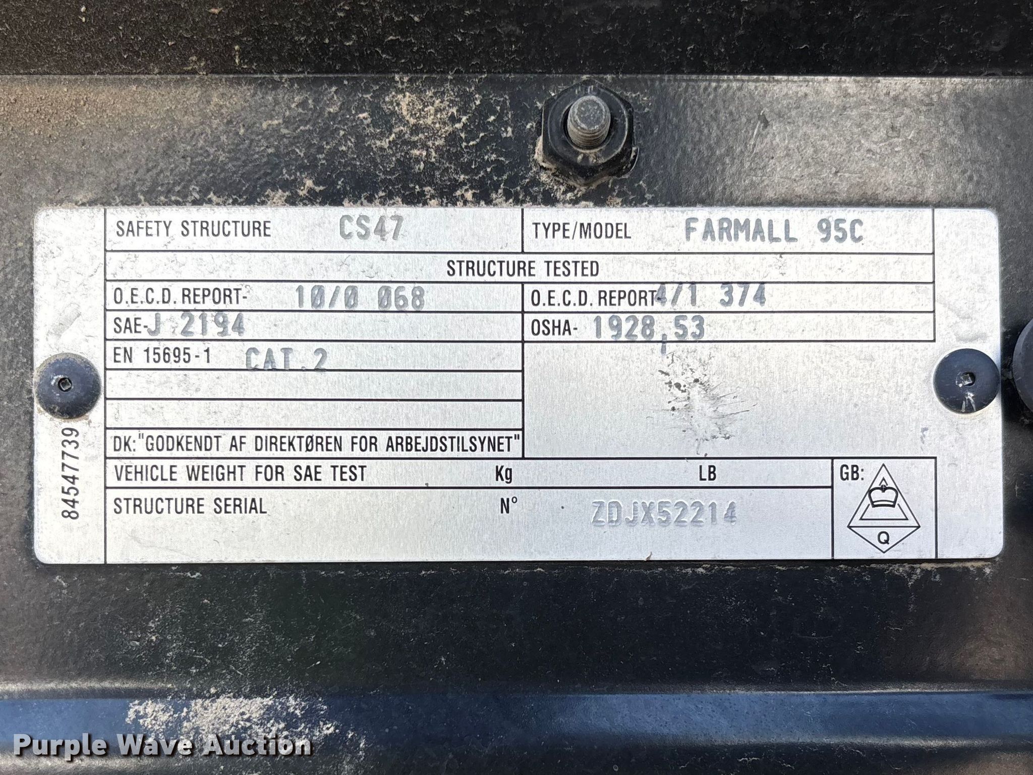 Purple Wave is selling a used Tractor in Missouri. This item is a 2013 Case IH Farmall 95C MFWD tractor with the following: Hours: 586 on meter, Serial: ZDJX52214, Unit #: 48784406