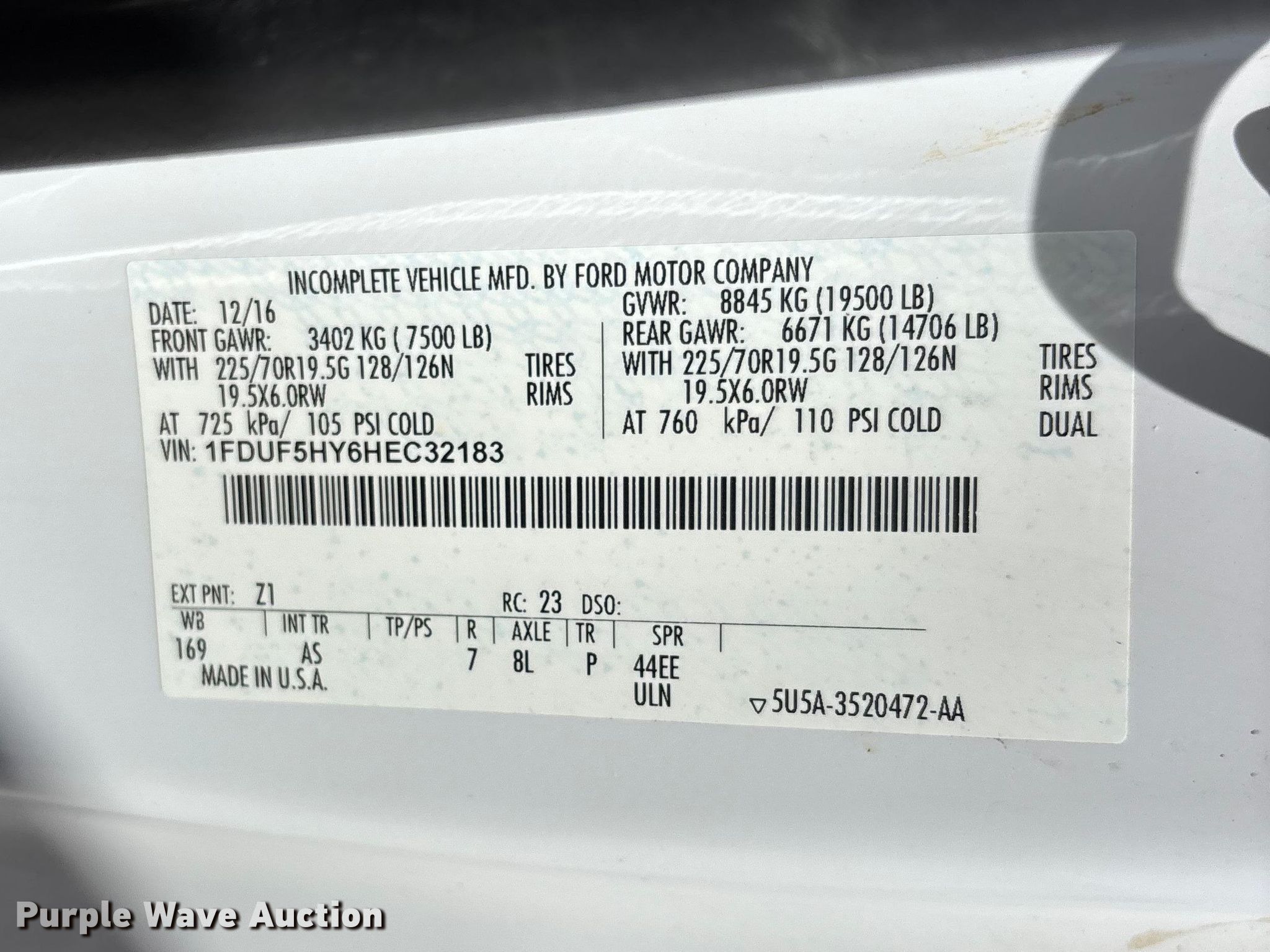 - VIN: 1FDUF5HY6HEC32183