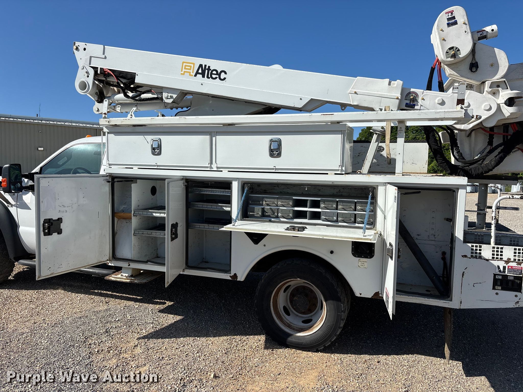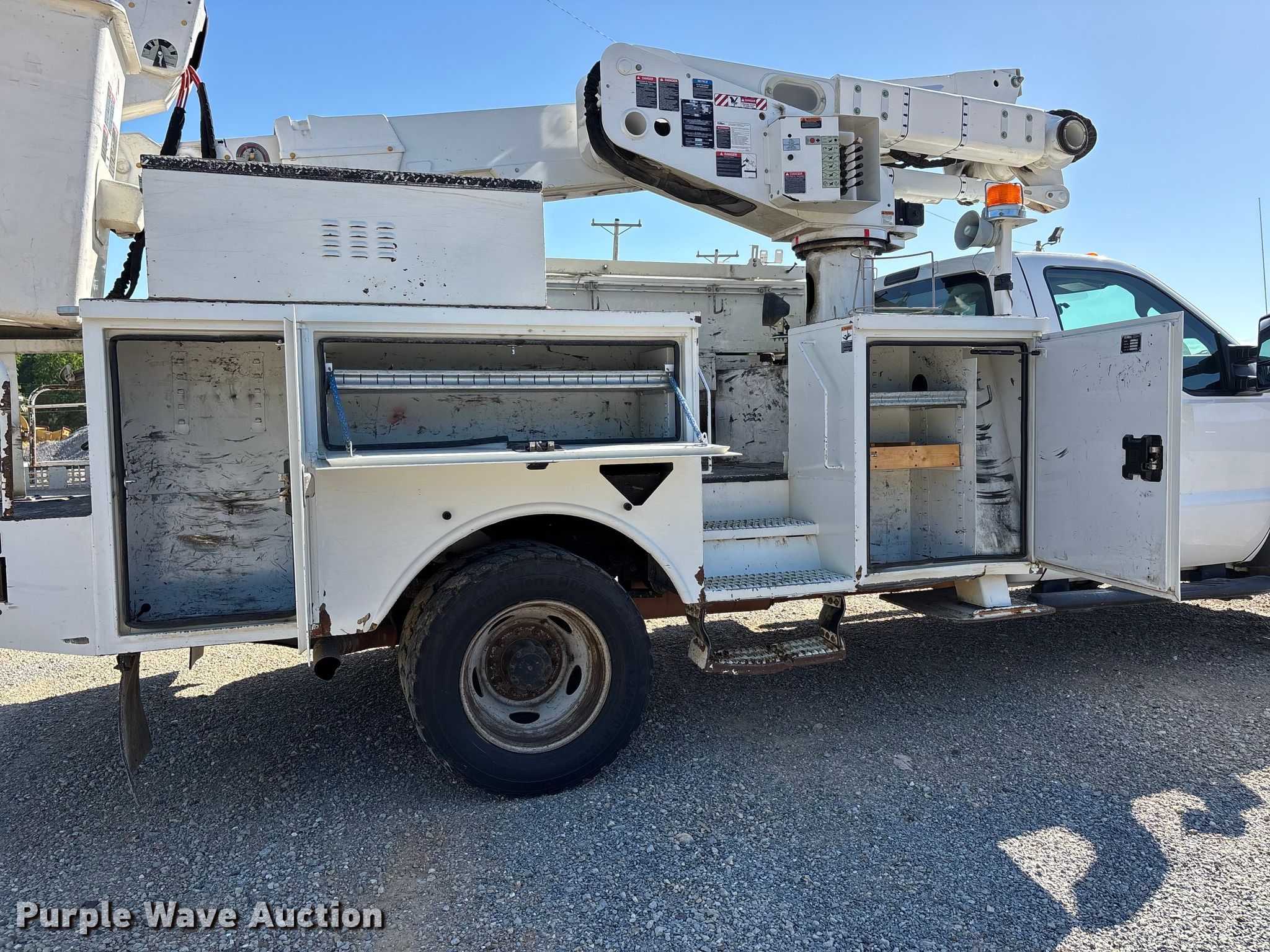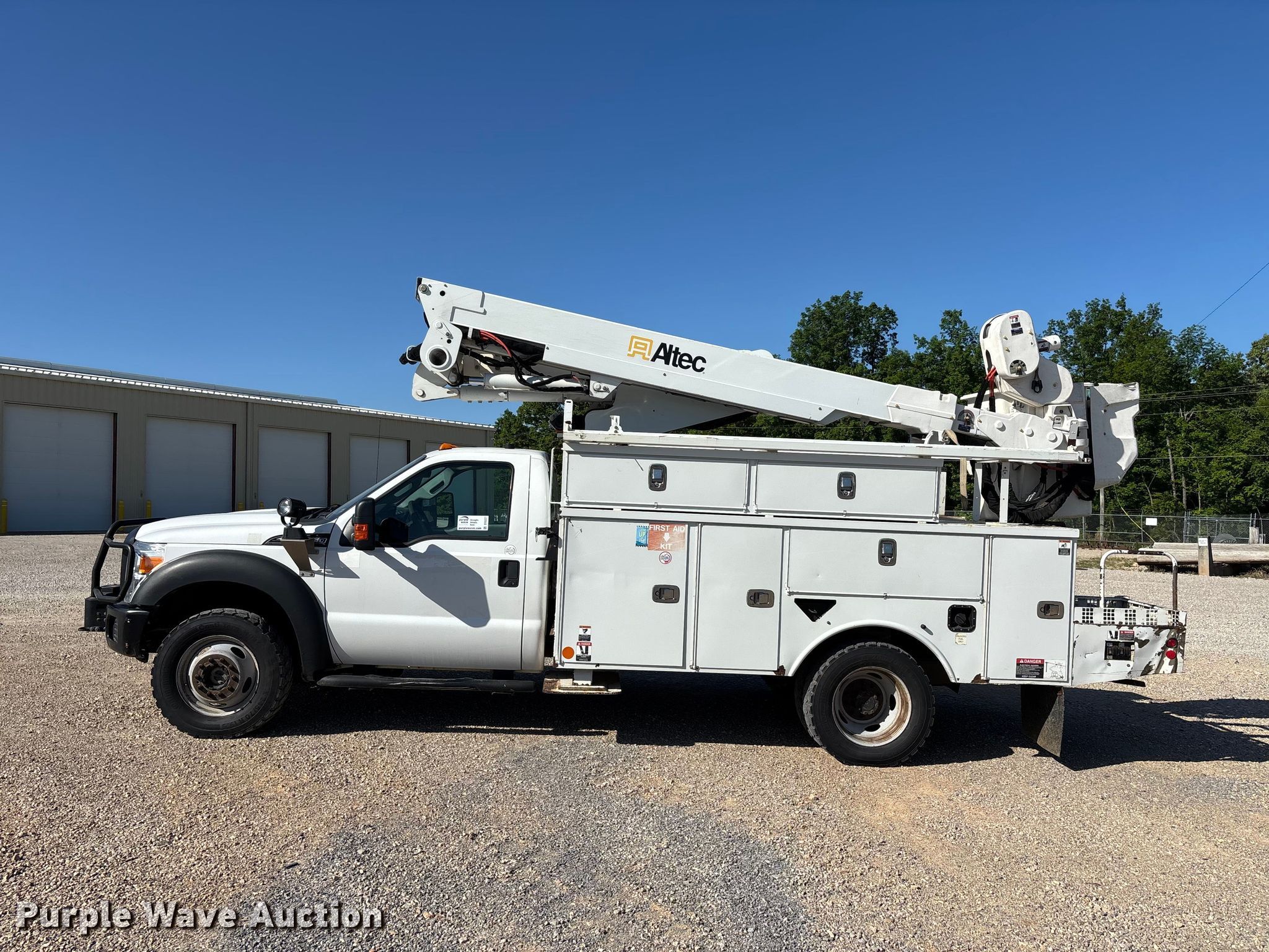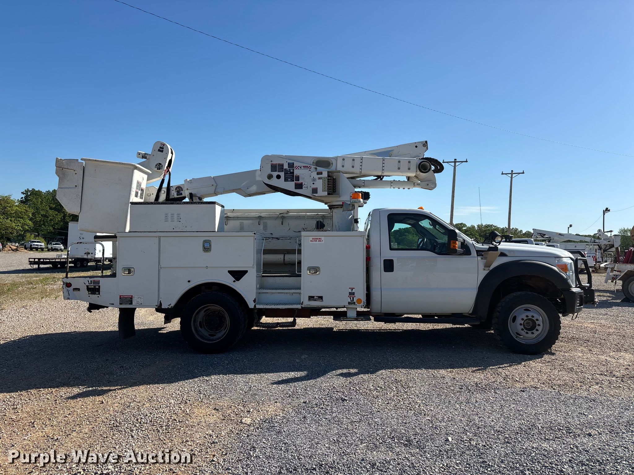 2015 Ford F550 bucket truck. Miles: 187,894 on odometer, Hours: 2,202 on meter, VIN: 1FDUF5HY8FEA23363, Unit #: 46. Engine For, Displacement: 6.8L, Cylinders: 10, Fuel type: Gas. Transmission Automatic. Chassis Four wheel drive, Axles: Single, Suspension: Spring, Brakes: Hydraulic, PTO, GVWR: 19,500 lbs. Interior AC, Heat, Heated mirrors, Power windows, Power locks, Cruise control, Auxiliary controls, Brake controller. Features Bed Utility bed, Altec, Length: 11', Width: 7' 10", Boom Altec AT40 M, Boom length: 40', Maximum lift capacity: 400 lbs, Maximum lift height: 40', Boom type: Articulating, Insulated, Telescopic, Man basket, Boom controls Lower, Basket.. Tires Size: 245/70R19.5. Notes Dash warning indicator: Check engine, ABS, Airbag, Windshield chipped or cracked, Possible mass airflow sensor issue. Missouri title. Title distribution may be delayed up to 14 days from verification of funds. Ozark Border Electric Cooperative. Poplar Bluff, MO 63901